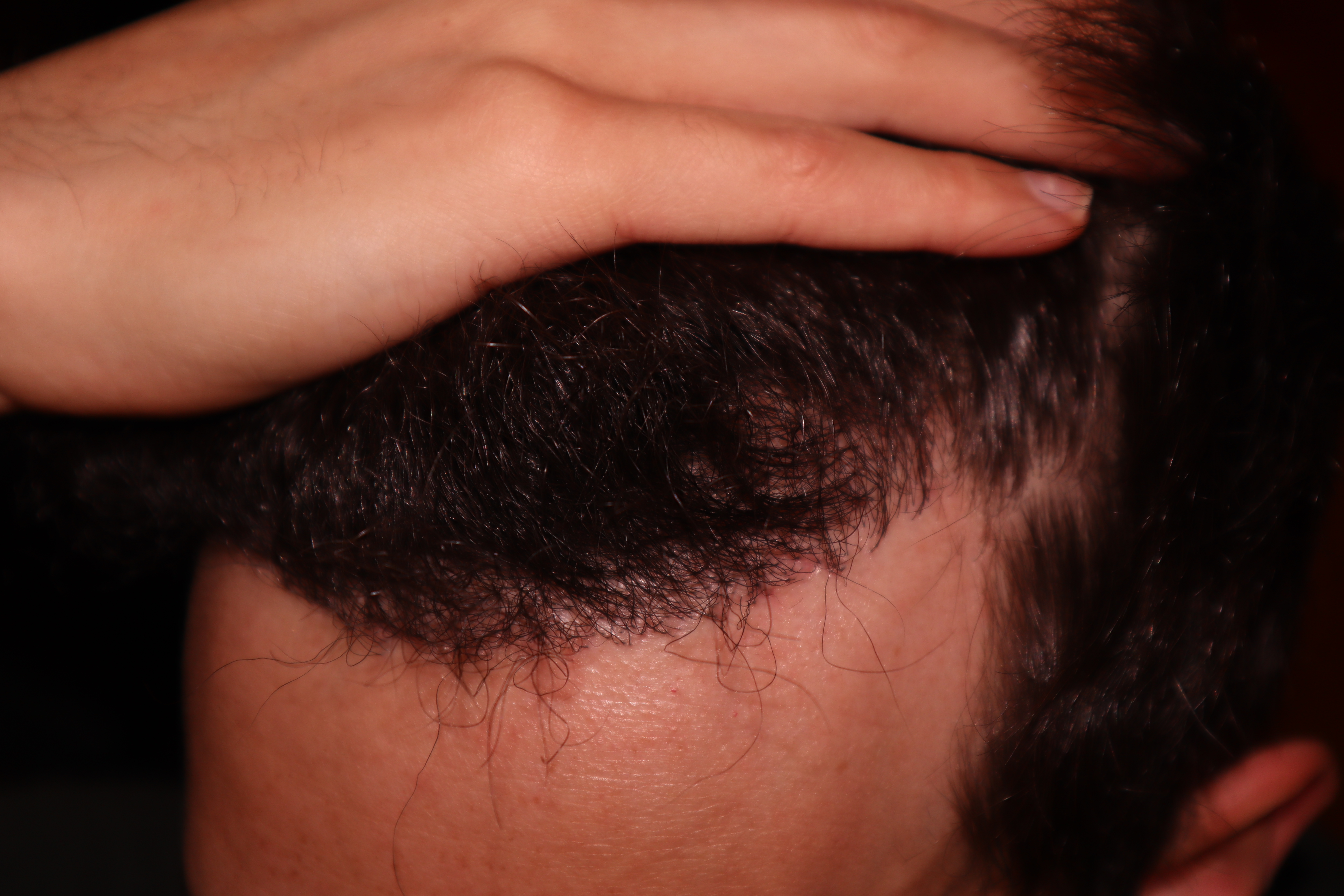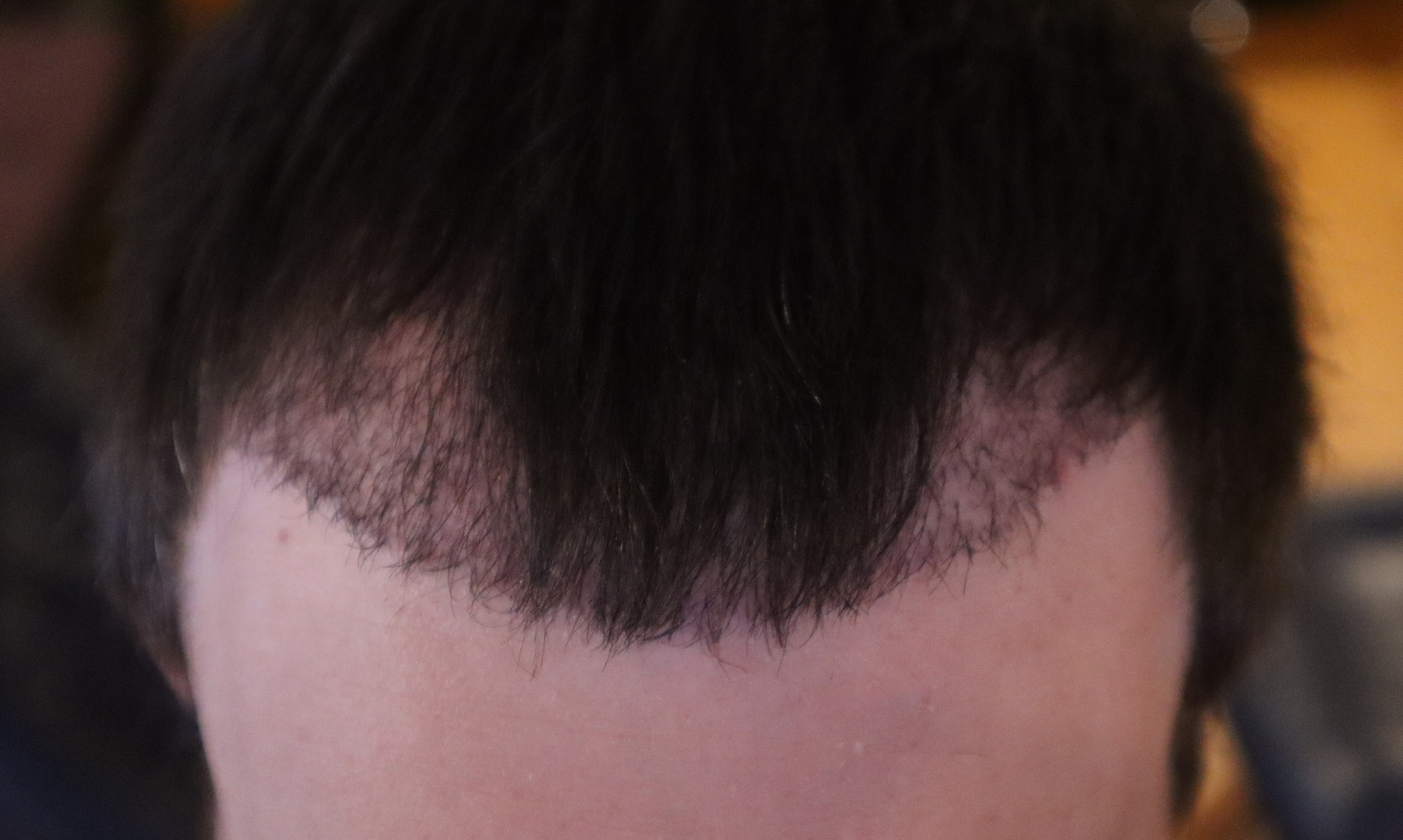 3) Vor der OP: Dr. Serkan Aygin hat die Haarlinie gezeichnet. Als er sie schon gezeichnet hatte ist mir eingefallen, dass ich ein Foto von früher, als ich noch viele Haare hatte, dabei habe. Als ich ihm das zeigte hat er eine neue Linie gezeichnet und gemeint, dass ist wie am Foto. Natürlich kann ich das jetzt noch nicht ganz beurteilen ob die Haare wirklich wieder so sein werden, finde aber trotzdem toll dass er darauf eingegangen ist. Wie ich schon zuvor gelesen hatte geht das sehr schnell, also man soll sich nicht erwarten dass man mit dem Doktor ein ausführliches Gespräch führt. Für mich war das OK. Ich konnte entscheiden zwischen der FUE- und der DHI-Methode, ich habe mich für die etwas teurere DHI-Methode entschieden. 3400 Grafts wurden verpflanzt.