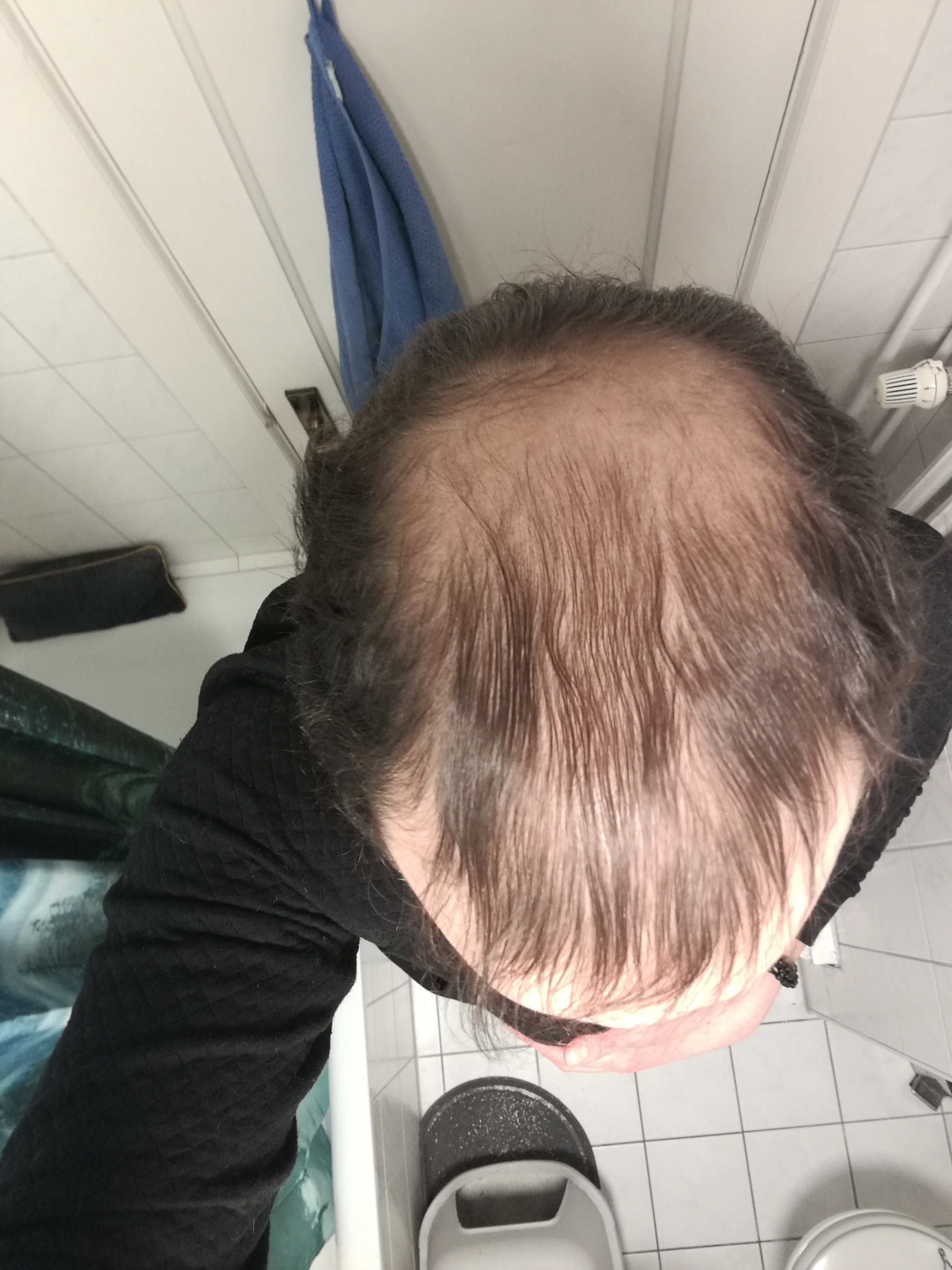 * Ausfallverlauf (schnell/langsam?): Ich würde sagen recht schnell. Hat vor 10 Jahren langsam angefangen, ich bin direkt mit Minox rein für n gutes Jahr, nach absetzen hatte ich dann ein massives Shedding vor ca. 5 Jahren und seitdem ist doch einiges runtergekommen. Ich würde also sagen so ziemlich das meiste ist in den letzten 7-8 Jahren runtergekommen.