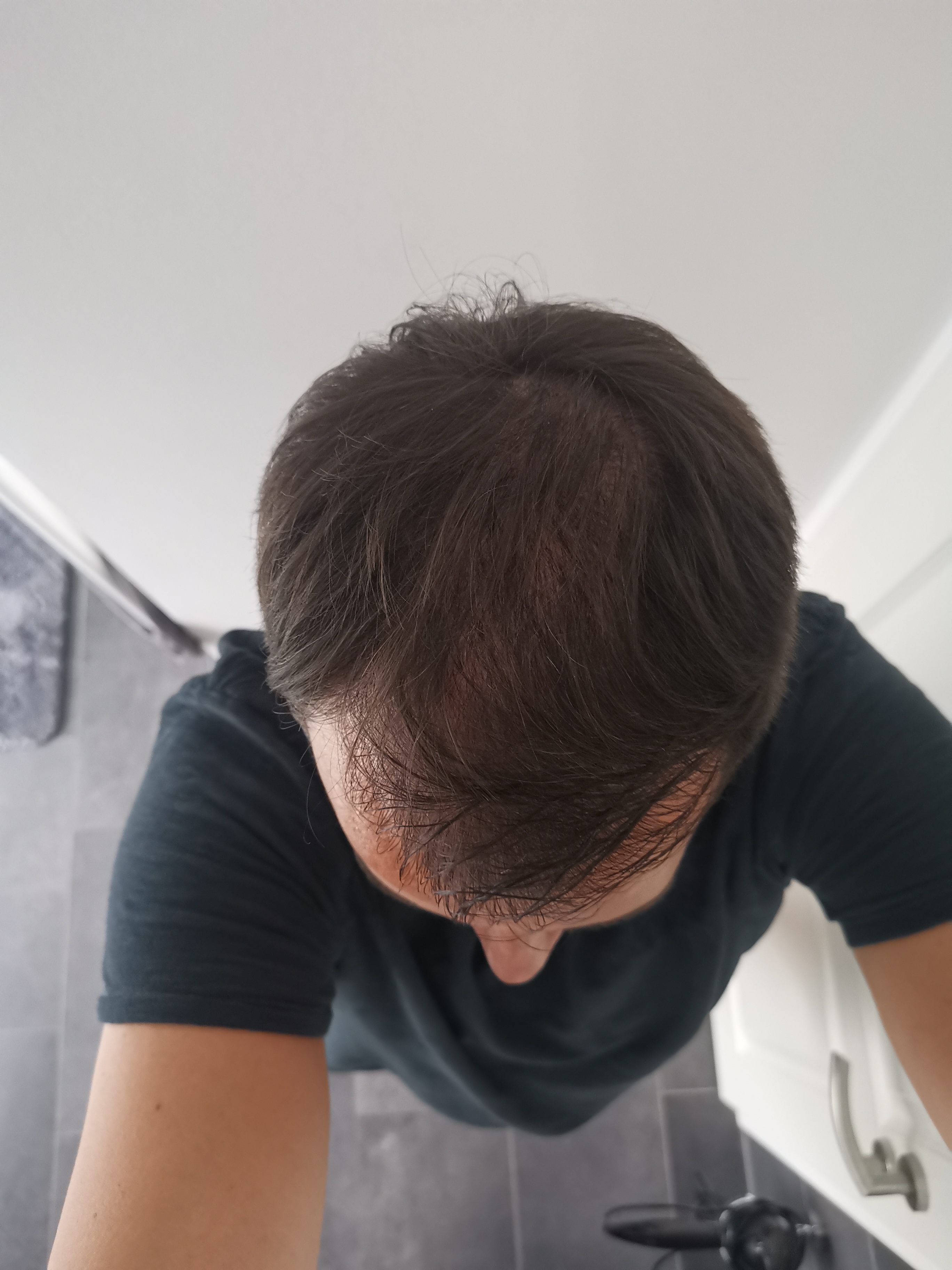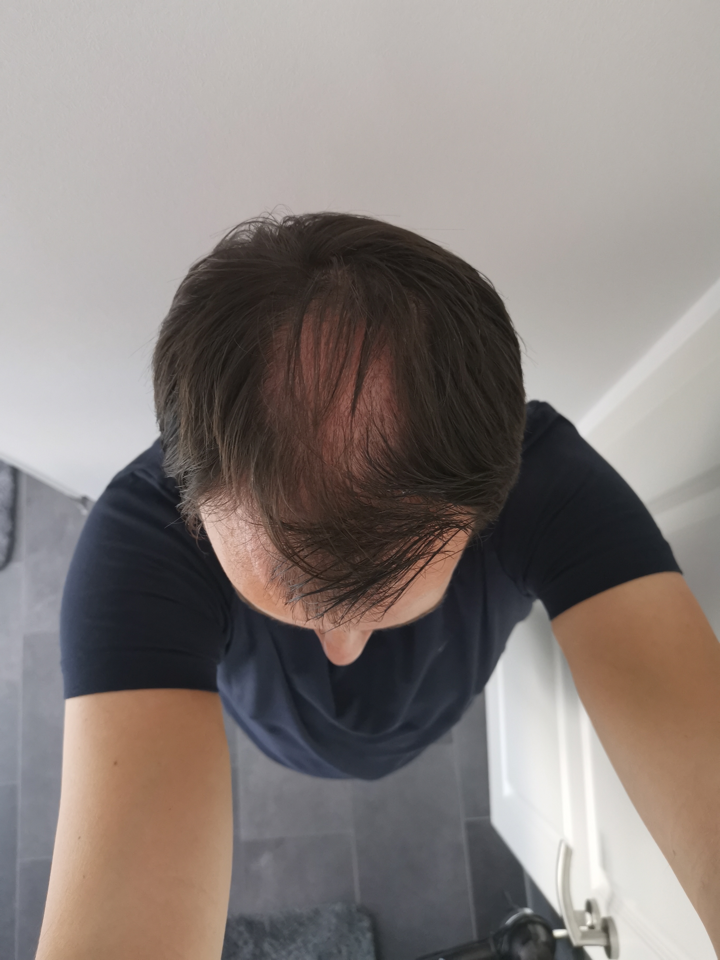 Der Haarstatus meines Vaters hat mir "glücklicherweise" schon früh aufgezeigt, wo die Reise hingehen wird. Geheimratsecken recht tief und auf dem mittleren Oberkopf wird das Haar sehr licht. Anfangs nahm ich mal kurz Finasterid, was bei mir aber starke Nebenwirkungen hatte, später habe ich mich dann vorerst mit dem HA abgefunden und Streuhaar genutzt.