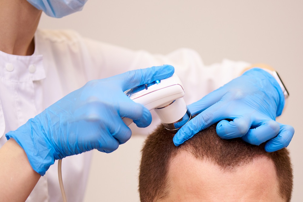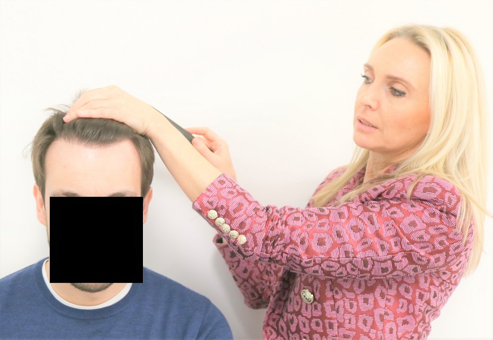 Dies ist ein Beispiel für ein typisches Startverfahren, bevor die eigentliche Haarbehandlung in unserer Klinik beginnt.