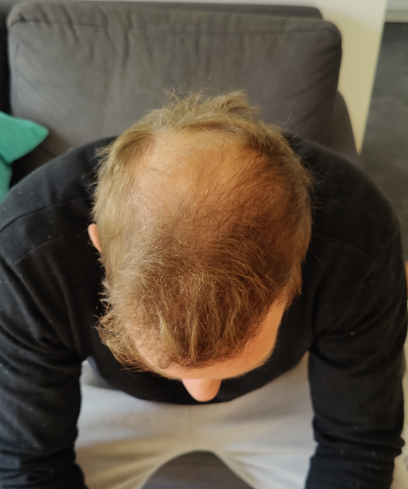 Sonst gibt es nicht wirklich viel zu sagen, die Struktur der eingepflanzten Haare ist ein wenig anders als zuvor, ich nehme an, weil sie vom Hinterkopf kommen. Aber am Kopf fühlt sich alles so an wie vor der OP. No complaints whatsoever Wink