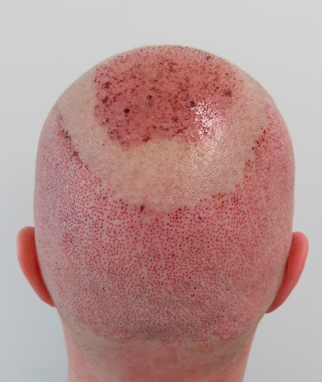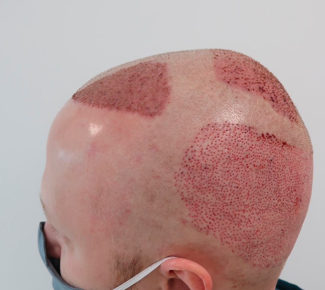 Ich hatte 1200-1300 Transplantate für jede kahle Stelle und etwa 1800 Transplantate für die Krone.