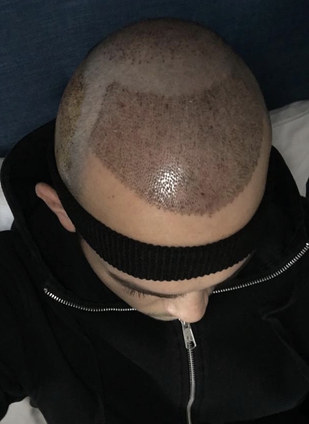 Nachdem der Eingriff erfolgreich durchgeführt wurde, wurden erneut Fotos zur Protokollierung gemacht. Abschließend bekam ich noch eine warme Mahlzeit und eine kurze Einweisung hinsichtlich der Medikamenteneinnahme und des weiteren Ablaufs. Die kommende Nacht konnte ich überraschend gut schlafen. Am nächsten Morgen wurde noch mein Verband entnommen und die Laserbehandlung zur Verbesserung des Heilungsprozesses durchgeführt. Die kommenden Tage waren die Schwellungen und Rötungen durch den Eingriff noch deutlich zu sehen. Alles in allem fühlte ich mich jedoch nie unwohl. Inzwischen - 7 Tage später - ist die Schwellung bereits vollständig verschwunden. Auch meine Kopfhaut sieht schon bedeutend besser aus und die ersten Krusten fallen nach und nach ab.