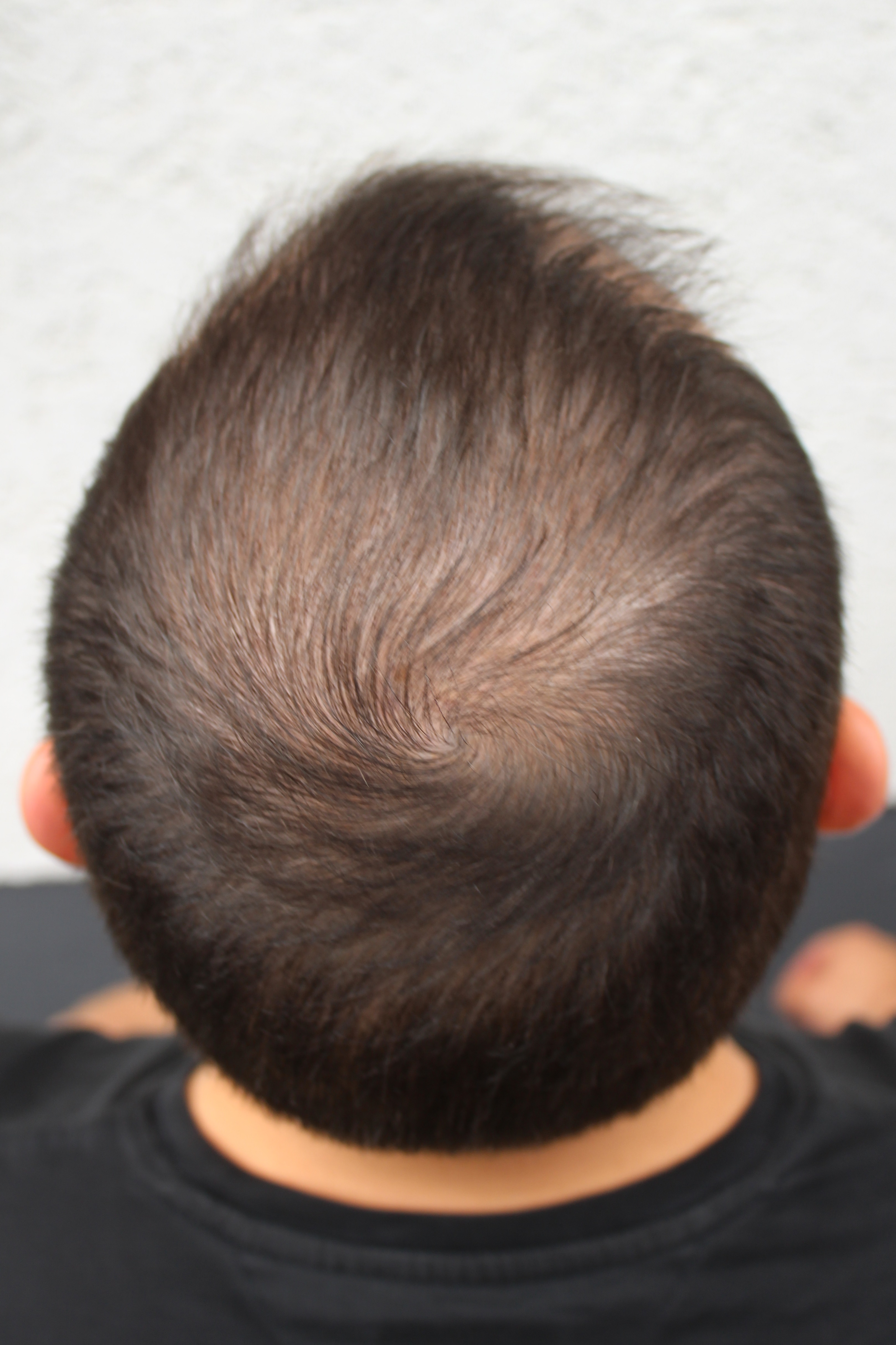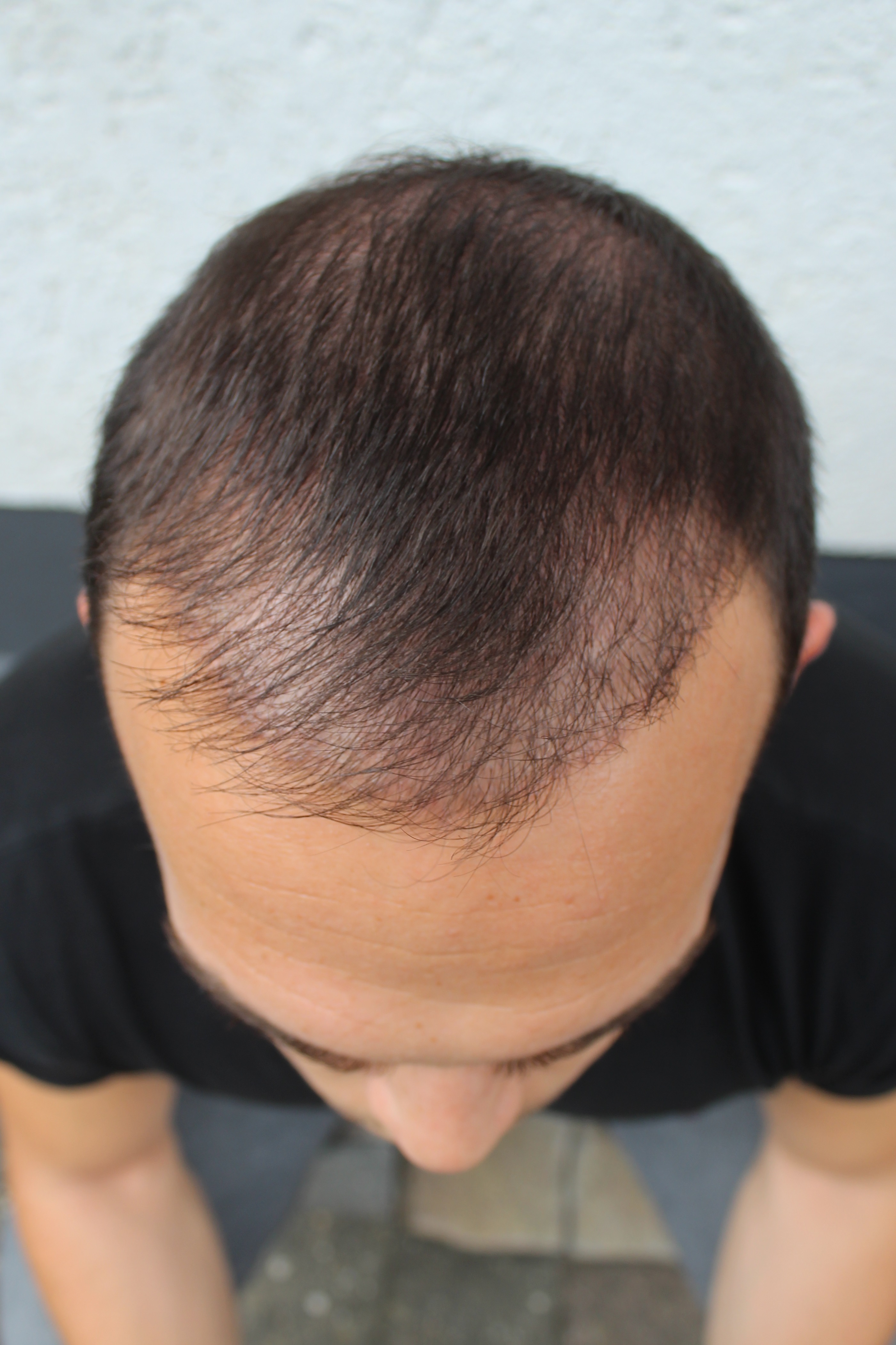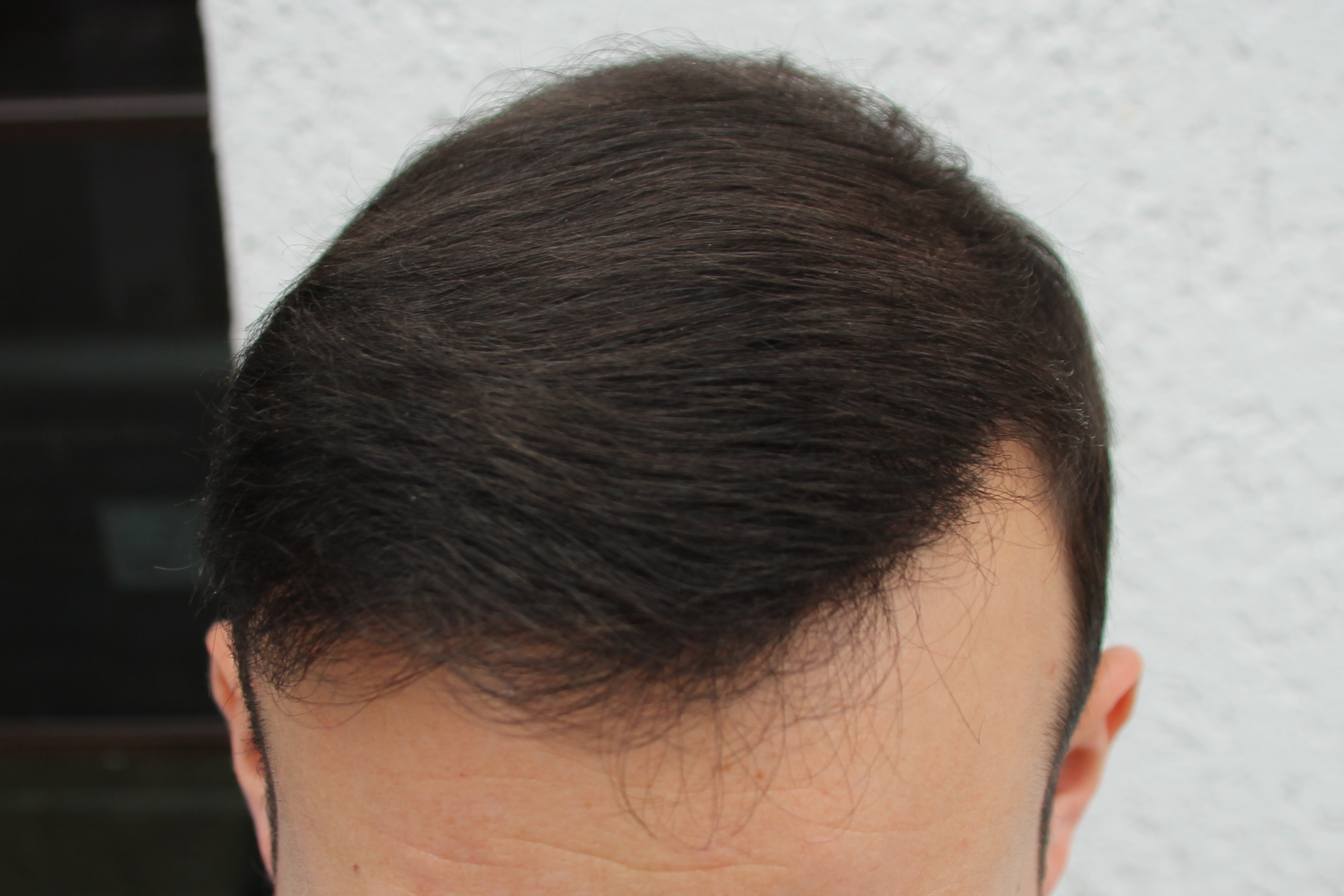 seit meines letzten Beitrags habe ich mit Blick in den Spiegel bewusst keinerlei Veränderung mehr wahrgenommen. Vergleiche ich jedoch die jetzigen Bilder mit denen von vor zwei Wochen, habe ich das Gefühl, dass sich die Haare auch im Tonsurbereich nun etwas mehr verdichten.