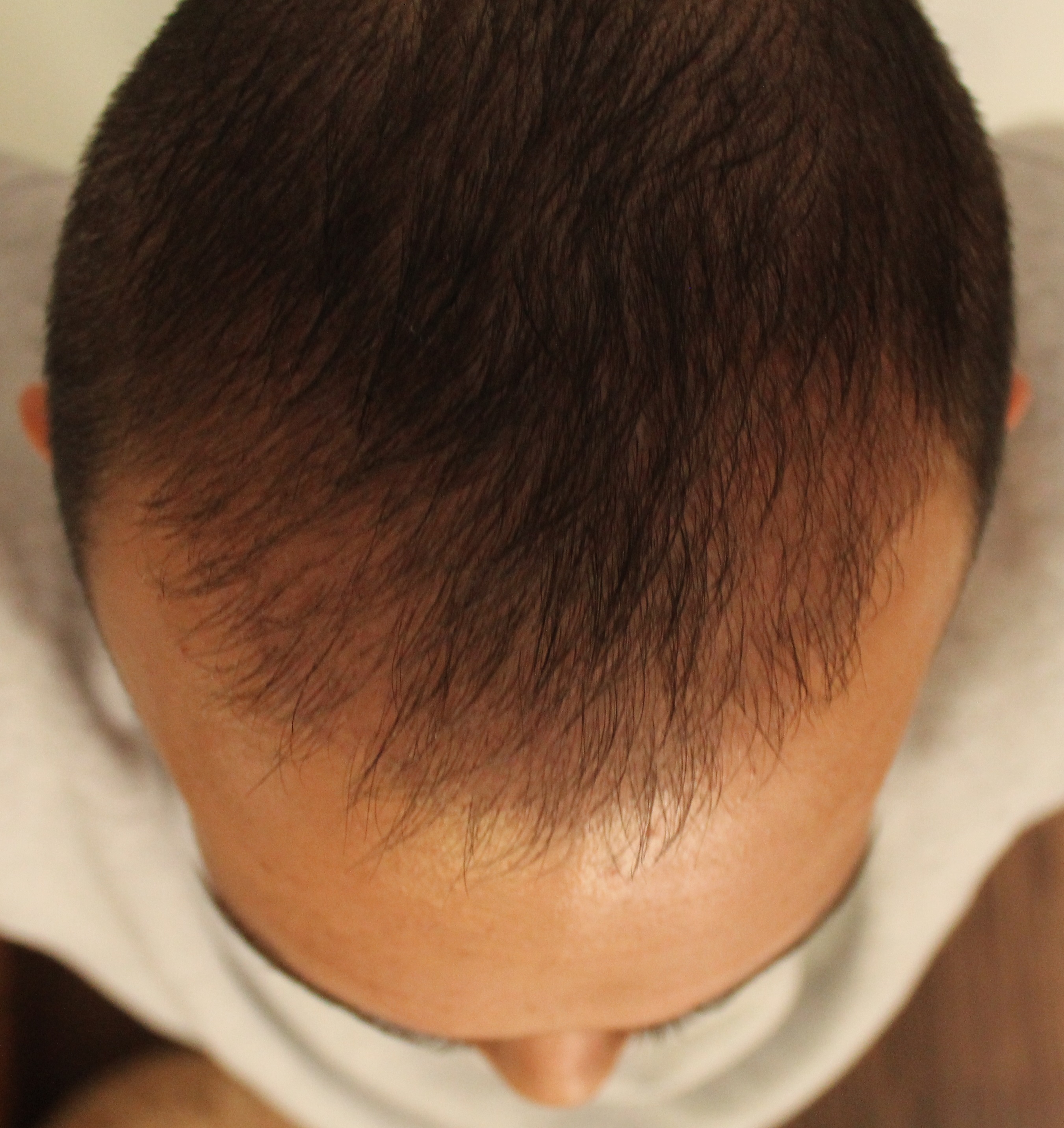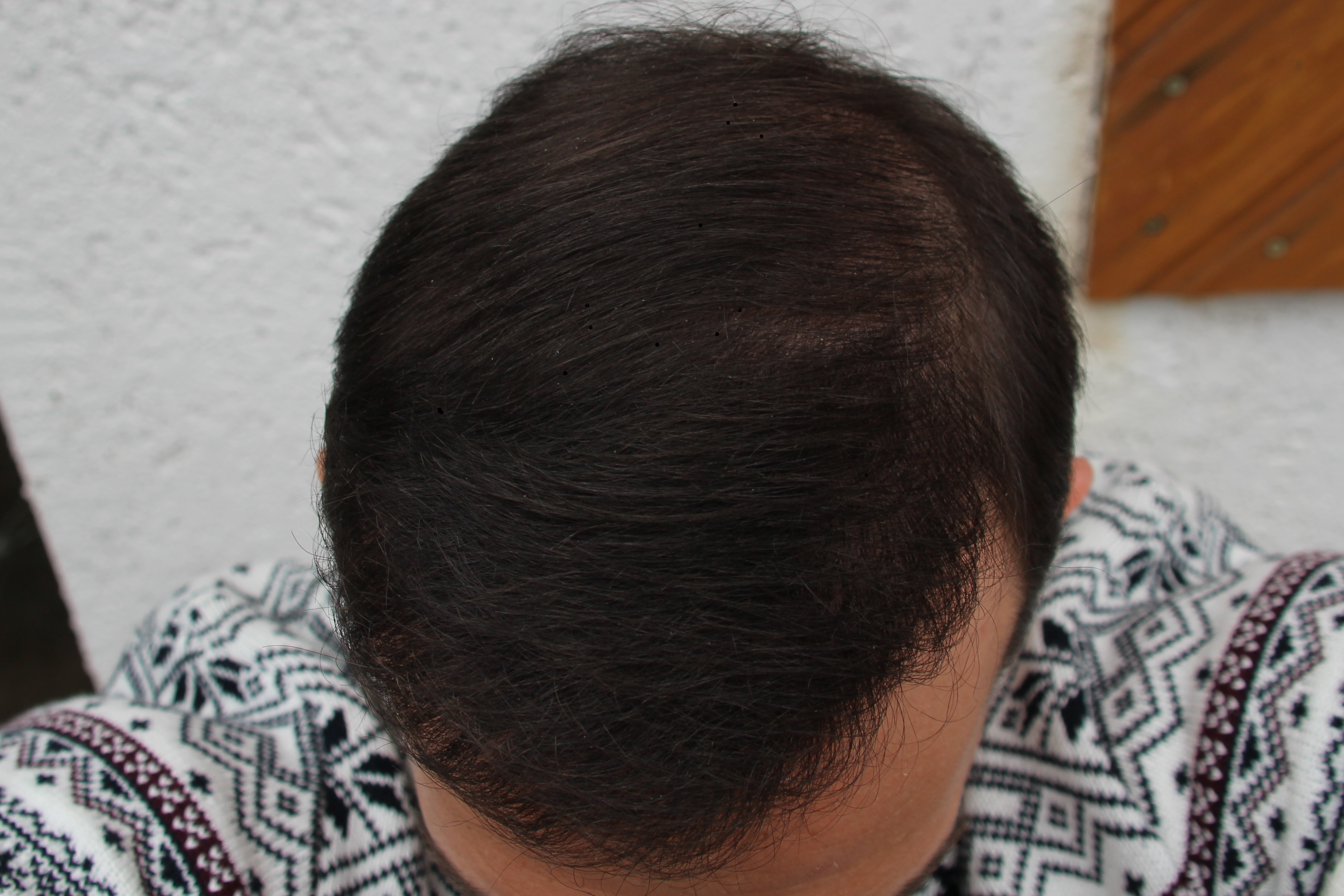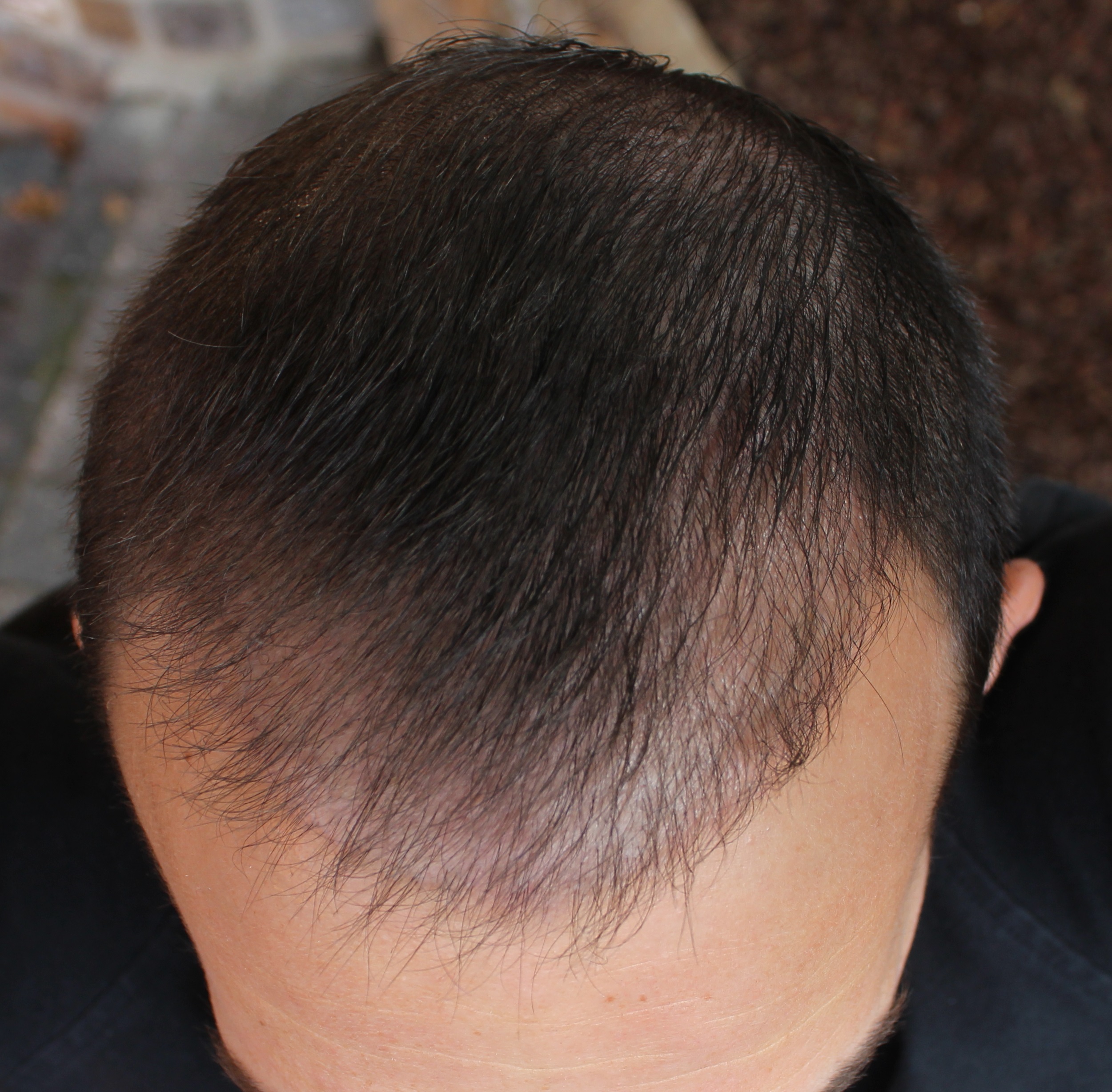 seit meines letzten Beitrags habe ich mit Blick in den Spiegel bewusst keinerlei Veränderung mehr wahrgenommen. Vergleiche ich jedoch die jetzigen Bilder mit denen von vor zwei Wochen, habe ich das Gefühl, dass sich die Haare auch im Tonsurbereich nun etwas mehr verdichten.