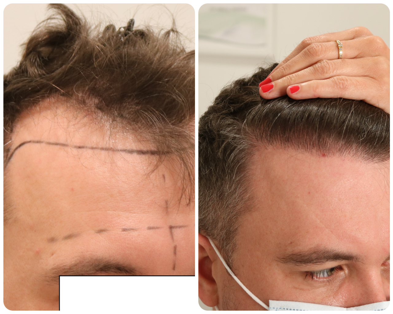Haarstabilisierung : Begann mit Finasterid/Minoxidil topische Lösung, von der Klinik direkt nach der Behandlung zur Verfügung gestellt. Der Patient stoppte nach 3 Monaten Der Anwendung ohne angabetten Grund.
