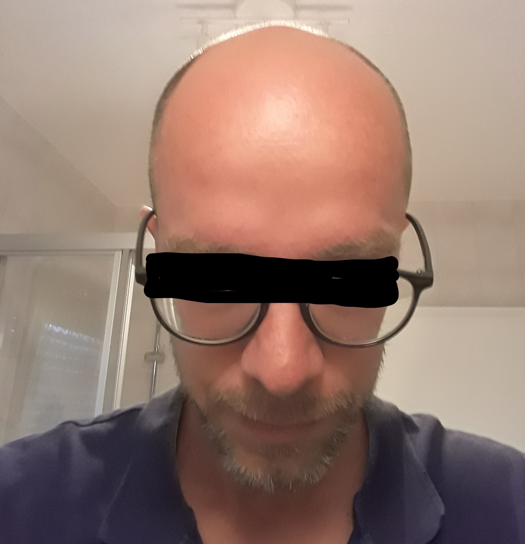 Um gleich eines vorwegzunehmen. Ich plane nach der OP keine Frisurenexperimente wie Robert Harting oder Christoph Metzfelder. Da bin ich mir sicher, dass da mit meinem aktuellen Status sowieso nicht möglich wäre. Tendenziell würde ich die Kurzhaarfrisur weiter behalten und fühle mich auch nicht unwohl damit. Was mich aber wirklich sehr stört, ist die fehlende Haarlinie, die hohe Stirn und die „Platte“ im Mittelbereich. Dort hätte ich gern eine Verdichtung bzw. überhaupt etwas Haarstruktur. Die Tonsur würde ich dagegen erst einmal nicht behandeln (das fanden meine bisherigen Partnerinnen meist sogar ganz sexy 😊).