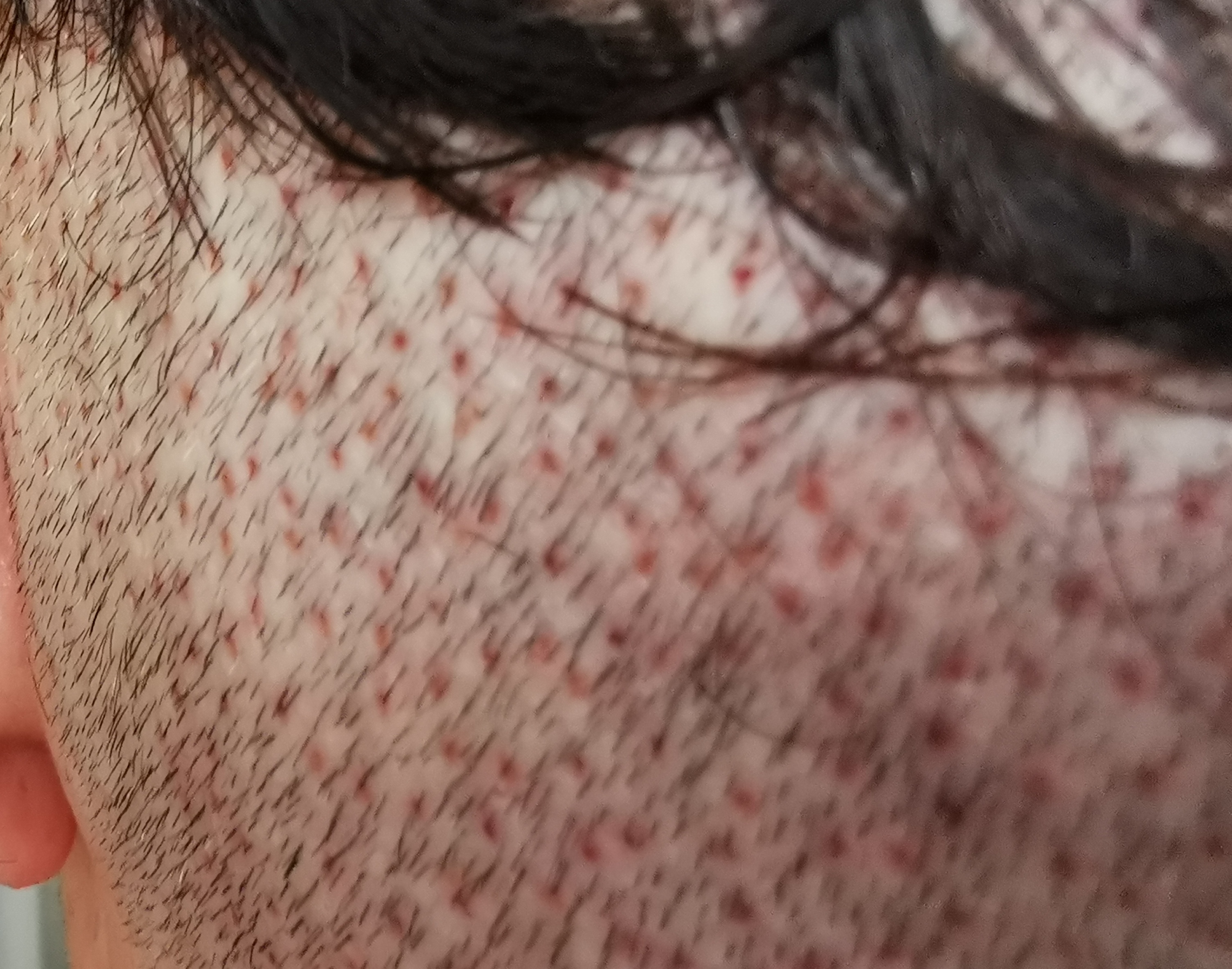 Generell habe ich in den fast 8 Wochen keinerlei Schmerzen, kein Jucken, keine Wärmeentwicklung, keine Taubheit, auch keine Pickel gehabt. Also innerhalb der 8 Wochen vielleicht 2 Pickel im Donor und im Empfängerbereich ein einziger Pickel, der auch sofort weggegangen ist (ohne irgendeine Komplikation oder Blutung).