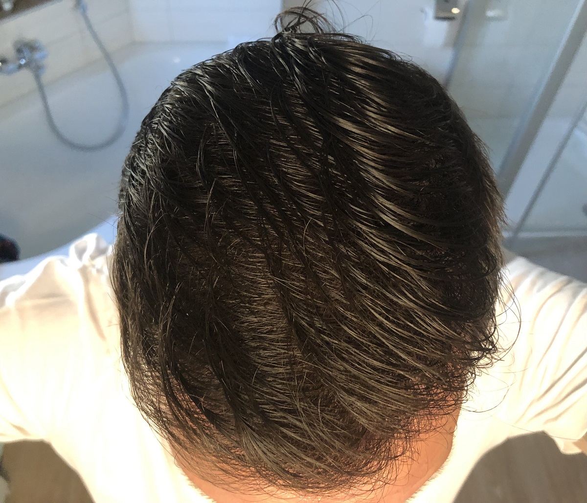 Die Rötung war nach wie vor da was ja auch ein gutes Zeichen ist, dass der Kopf gut durchblutet wird und die eingepflanzten Haare die noch dran geblieben sind wurden immer länger.