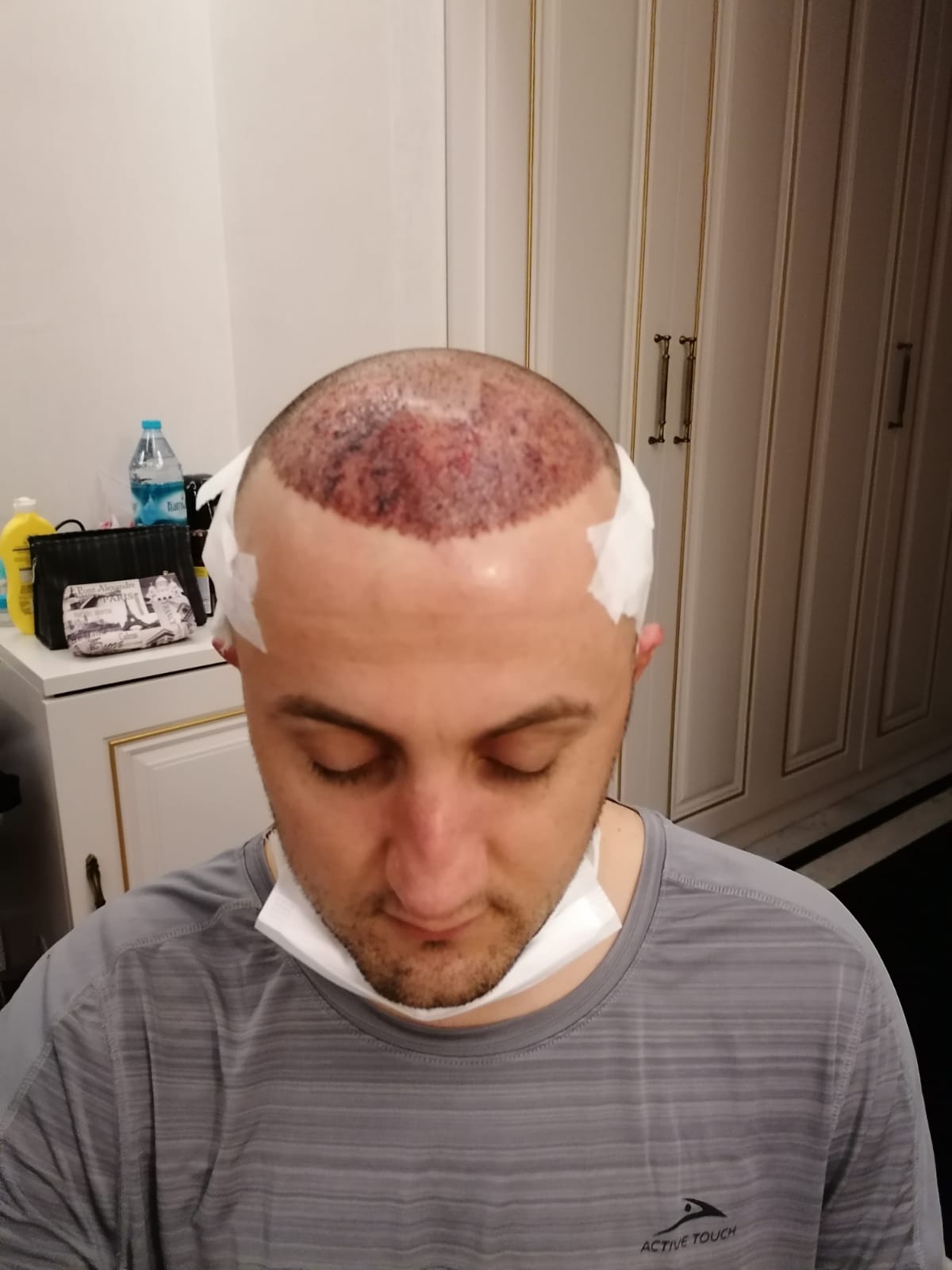 Am nächsten Tag wurde ich in die Klinik gefahren und Dr Aygin hat mir die Haarlinie gezeichnet. Die Mitarbeiterinnen habe mir alles erklärt. Die HT an sich war schon anstrengend. Aber das ist halt so. Anschließend ging es wieder ins Hotel. Am Tag nach der HT wurde ich wieder in die Klinik gebracht. Mein Kopf wurde desinfiziert und mit einem Laser behandelt. Ich hatte leichte Schmerzen, aber mir wurden Medikamente mitgegeben.