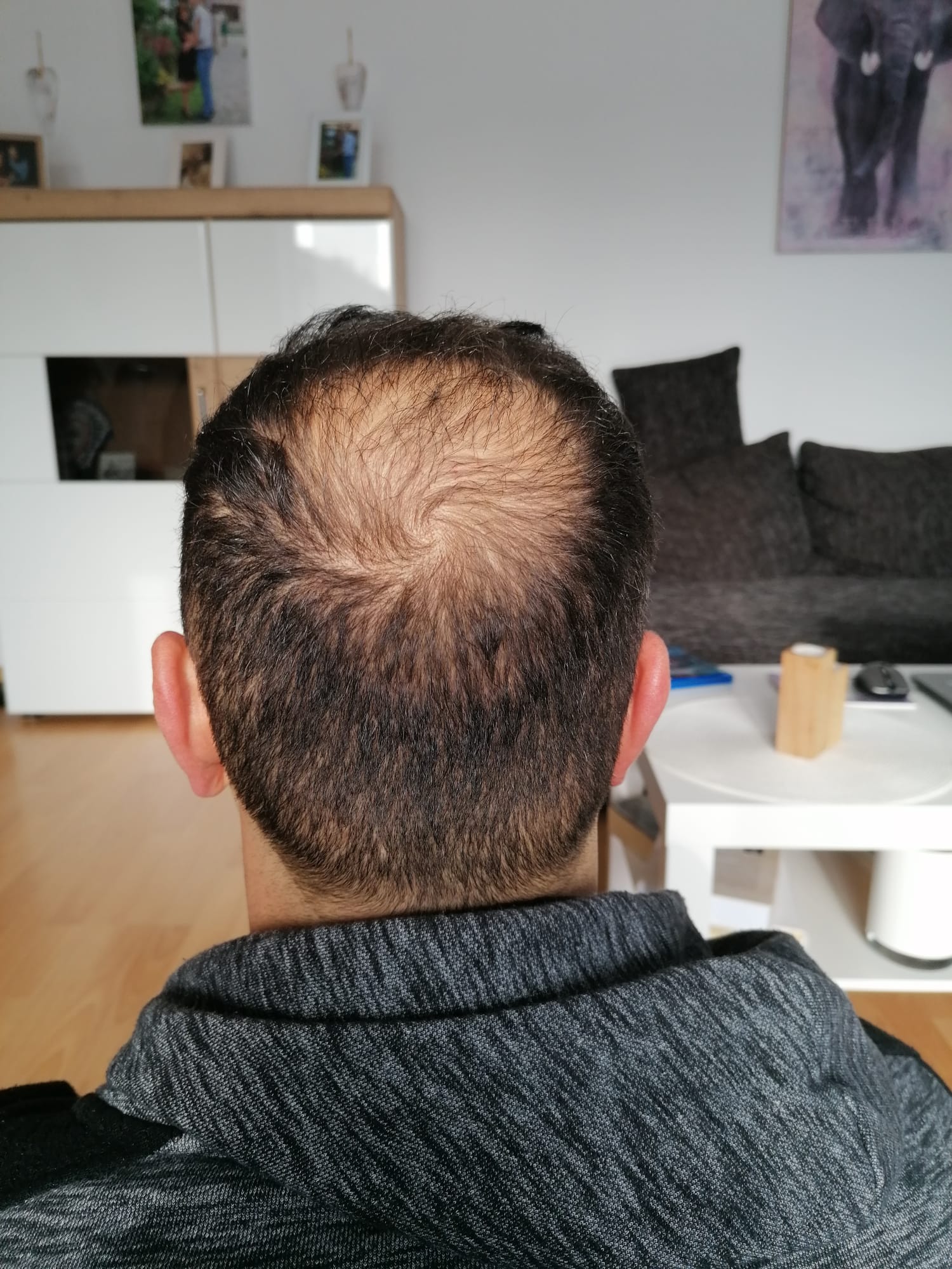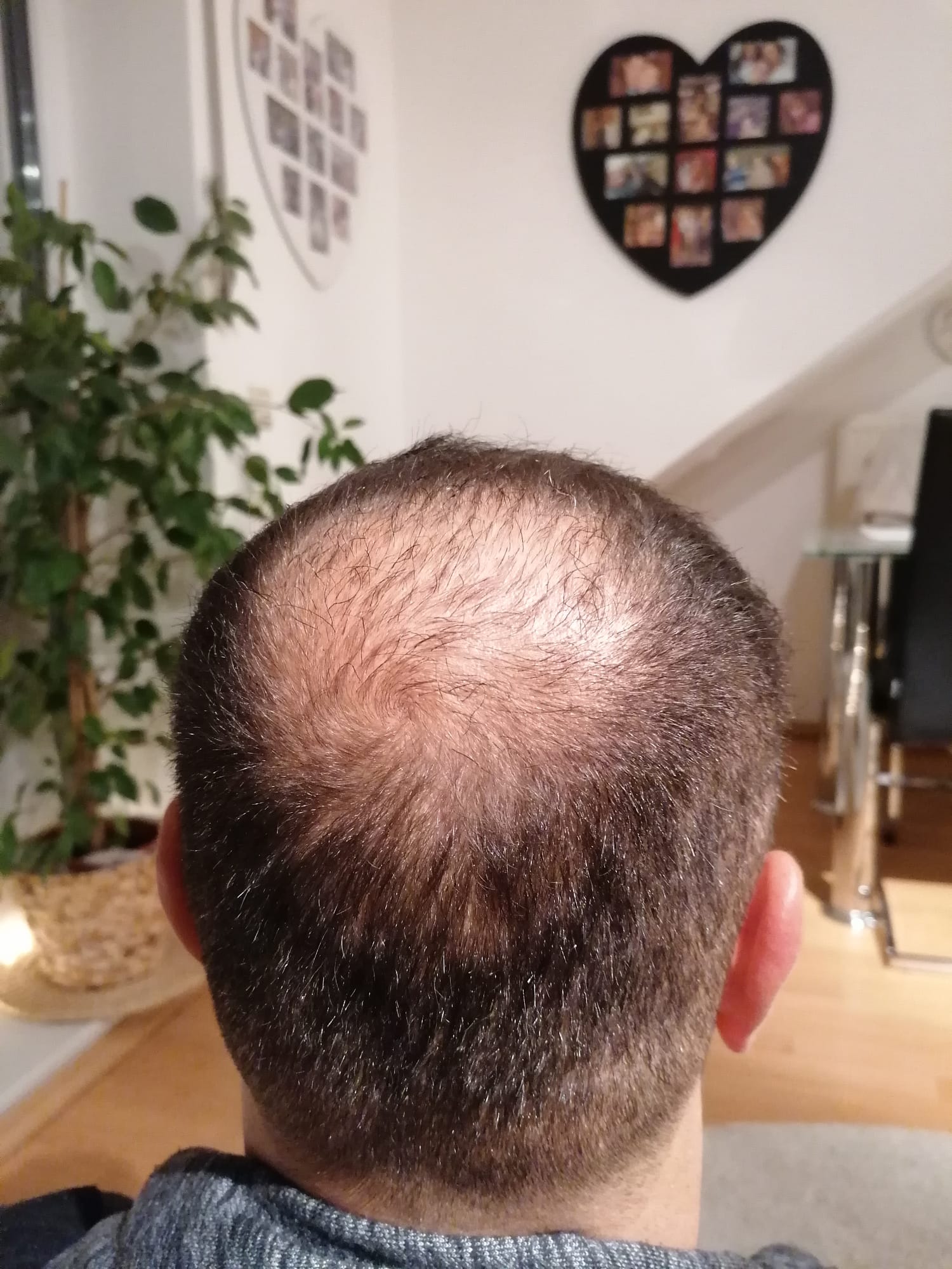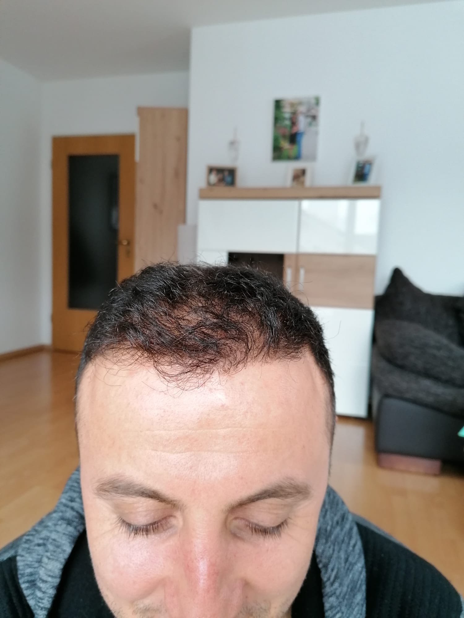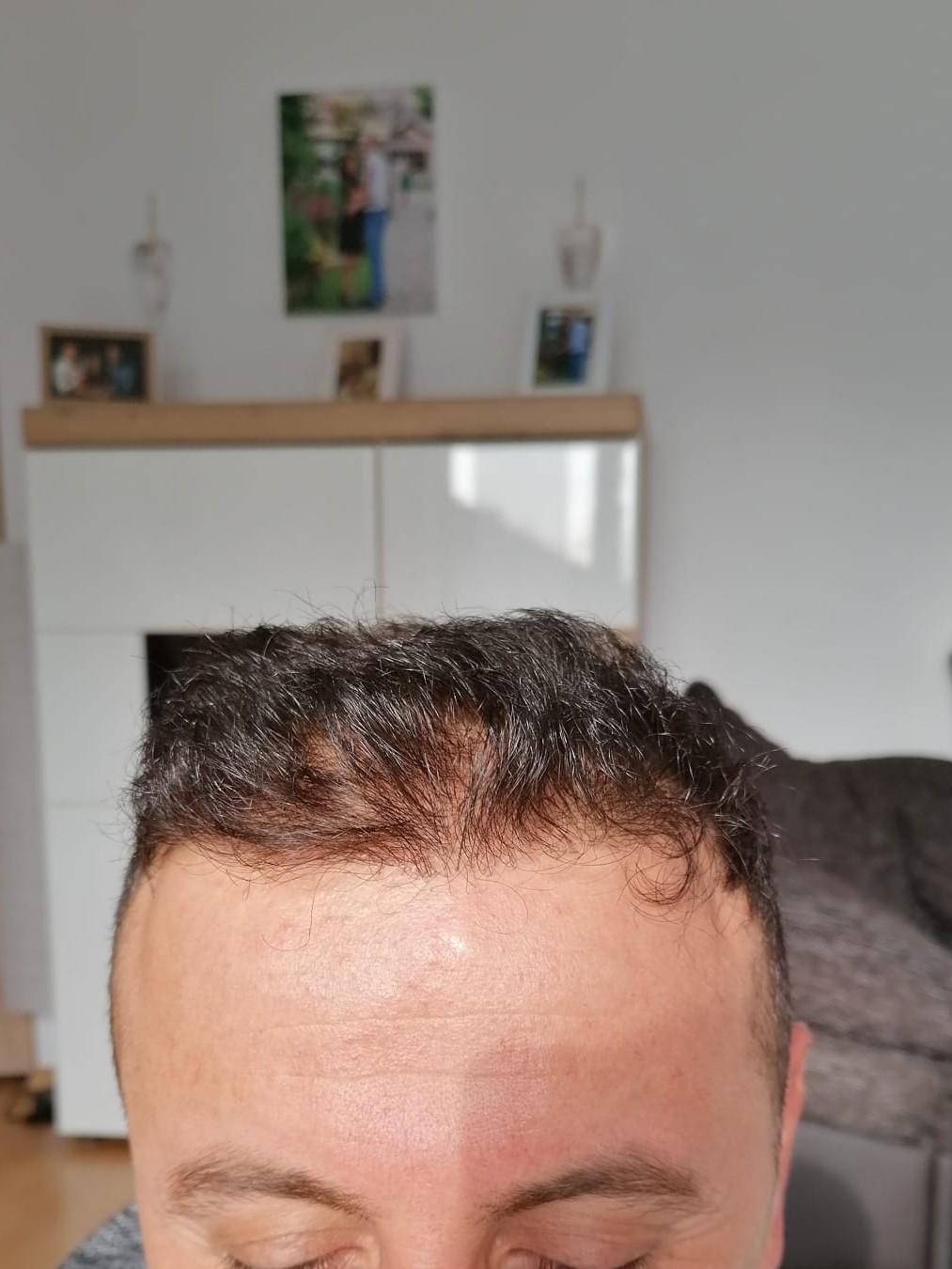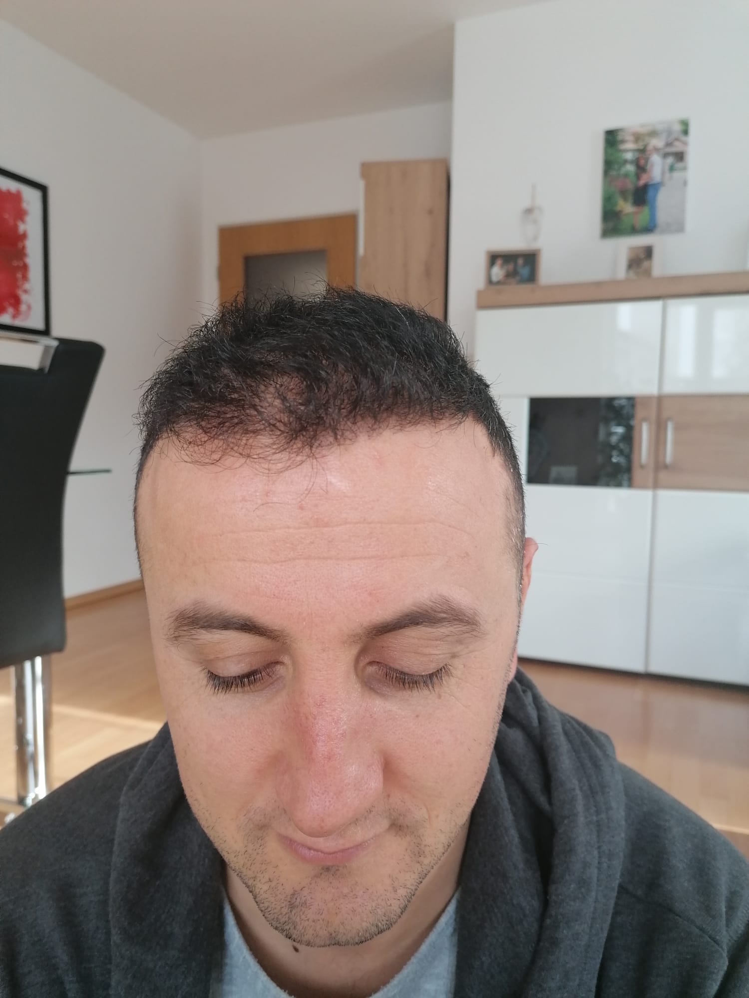 Nach einem Jahr kann ich mit absoluter Gewissheit sagen, dass dies einer der besten Entscheidungen war. Ich zeige Euch auch noch einmal die Fotos vor der HT. Wie ihr sehen könnt, sind die Haare am Vorderkopf sehr gut gewachsen. Besonders auf Fotos merken meine Frau und ich immer wieder, wie anders das Gesicht mit Haaren aussieht. Wir sind sehr zufrieden mit dem Vorderkopf.