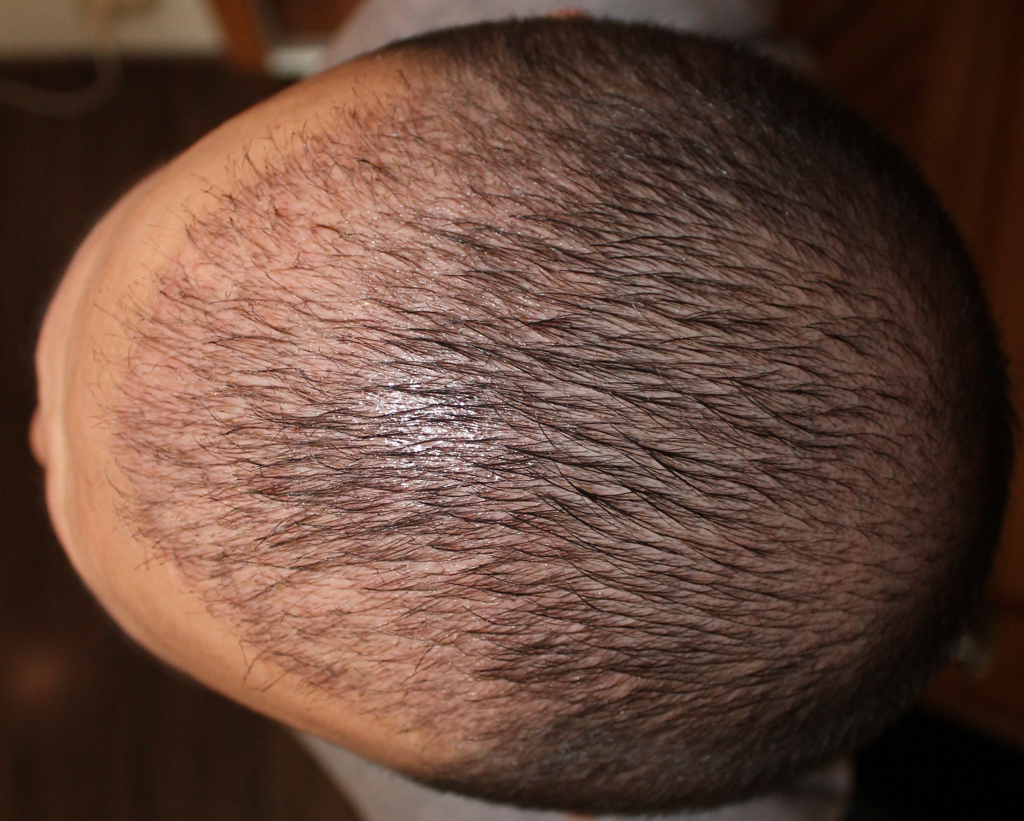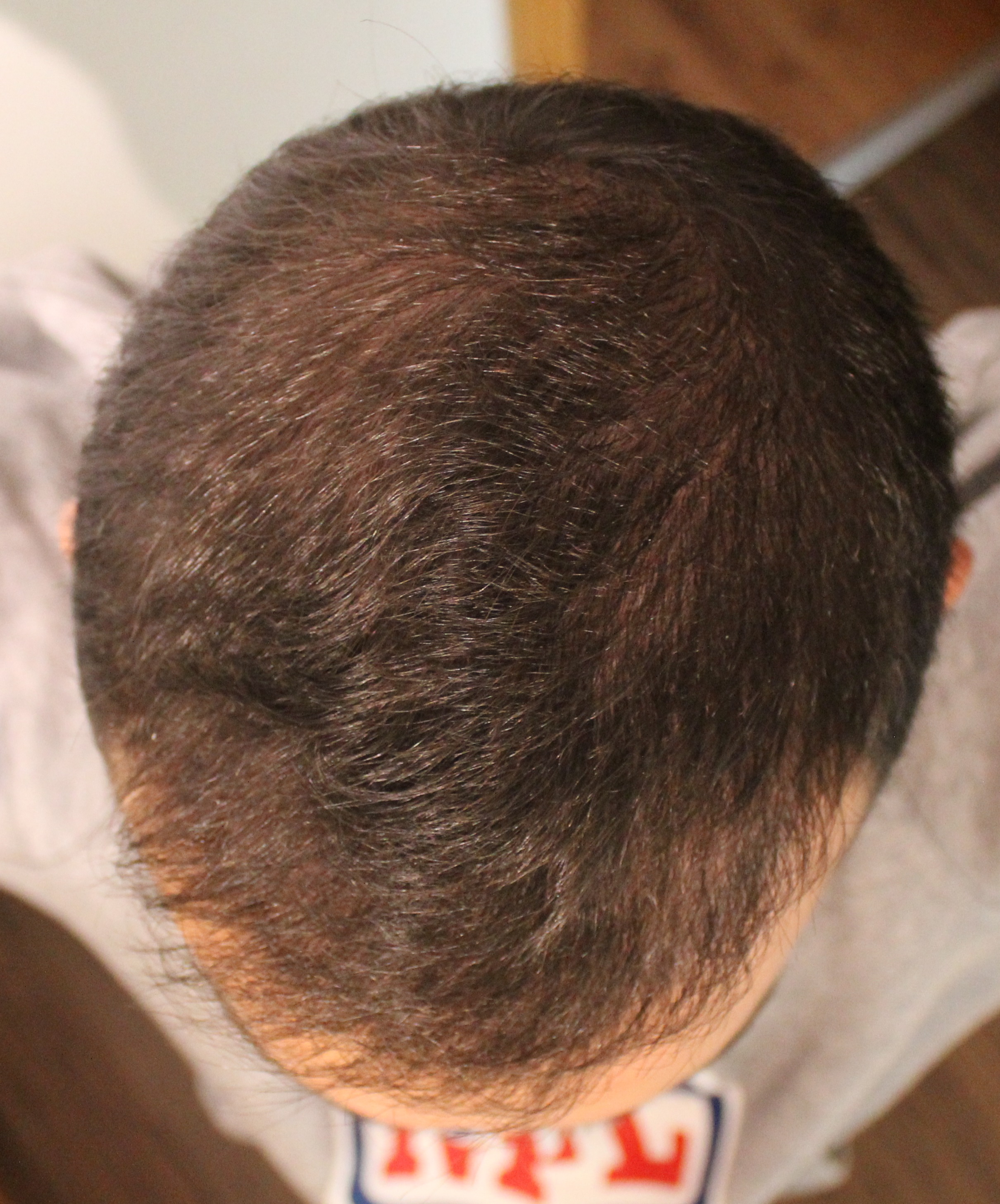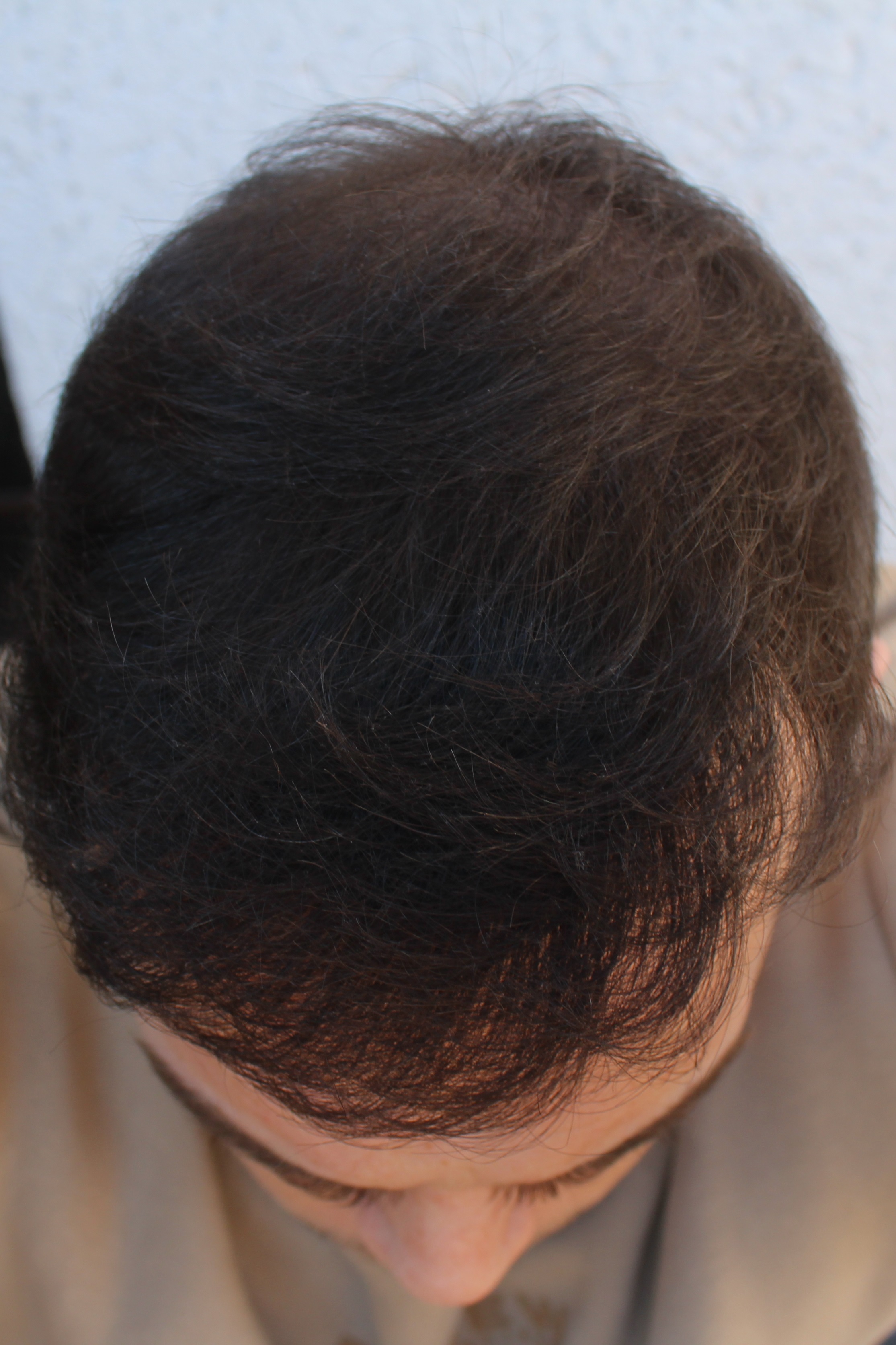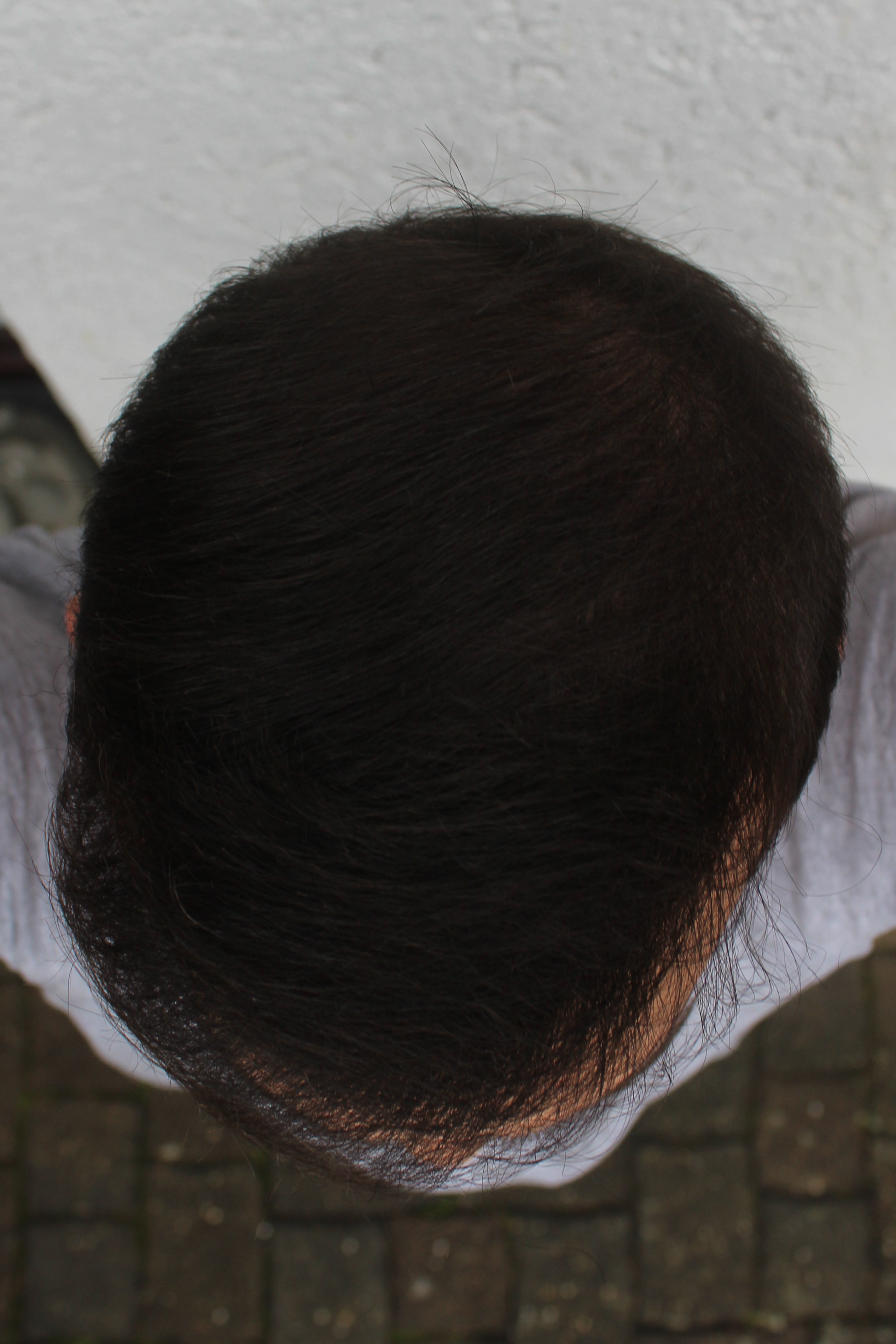 seit meines letzten Beitrags habe ich mit Blick in den Spiegel bewusst keinerlei Veränderung mehr wahrgenommen. Vergleiche ich jedoch die jetzigen Bilder mit denen von vor zwei Wochen, habe ich das Gefühl, dass sich die Haare auch im Tonsurbereich nun etwas mehr verdichten.