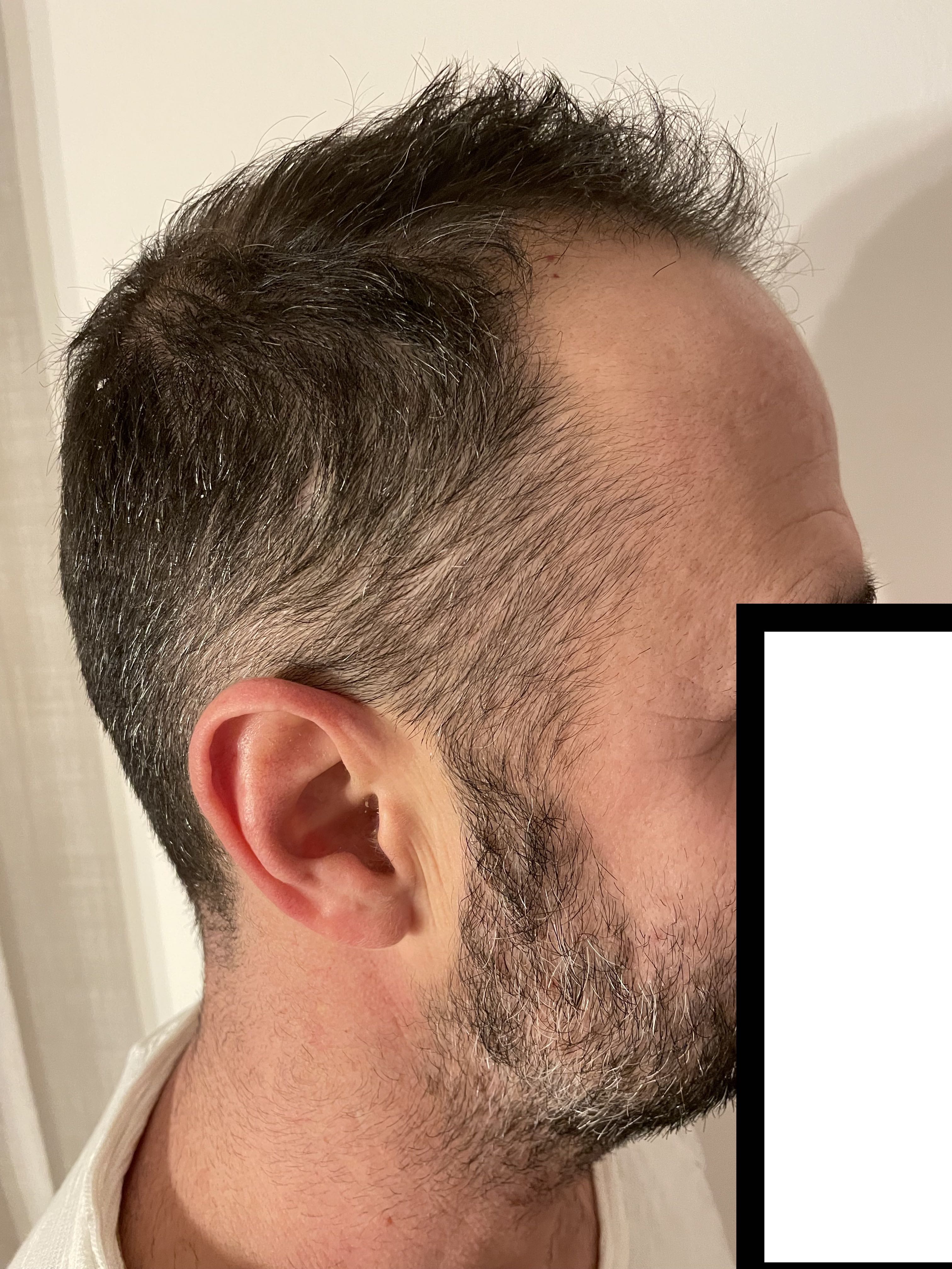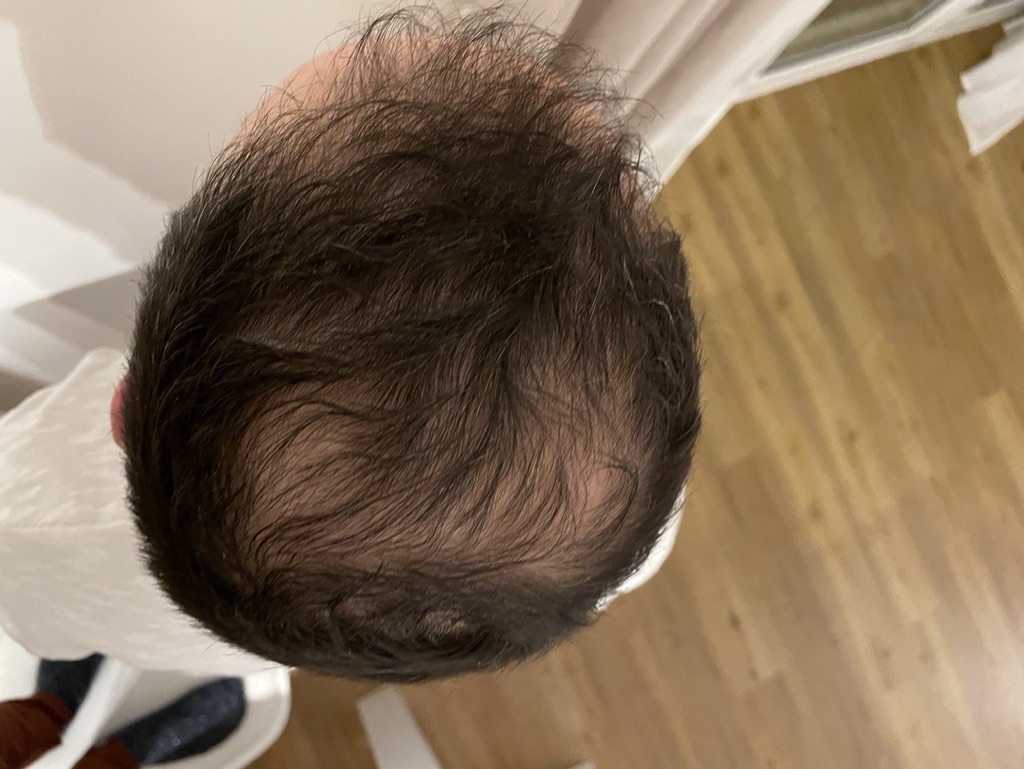 * Aktueller Haarstatus nach der Hamilton-Norwood-Skala: NW3 Vertex (meine Einschätzung)