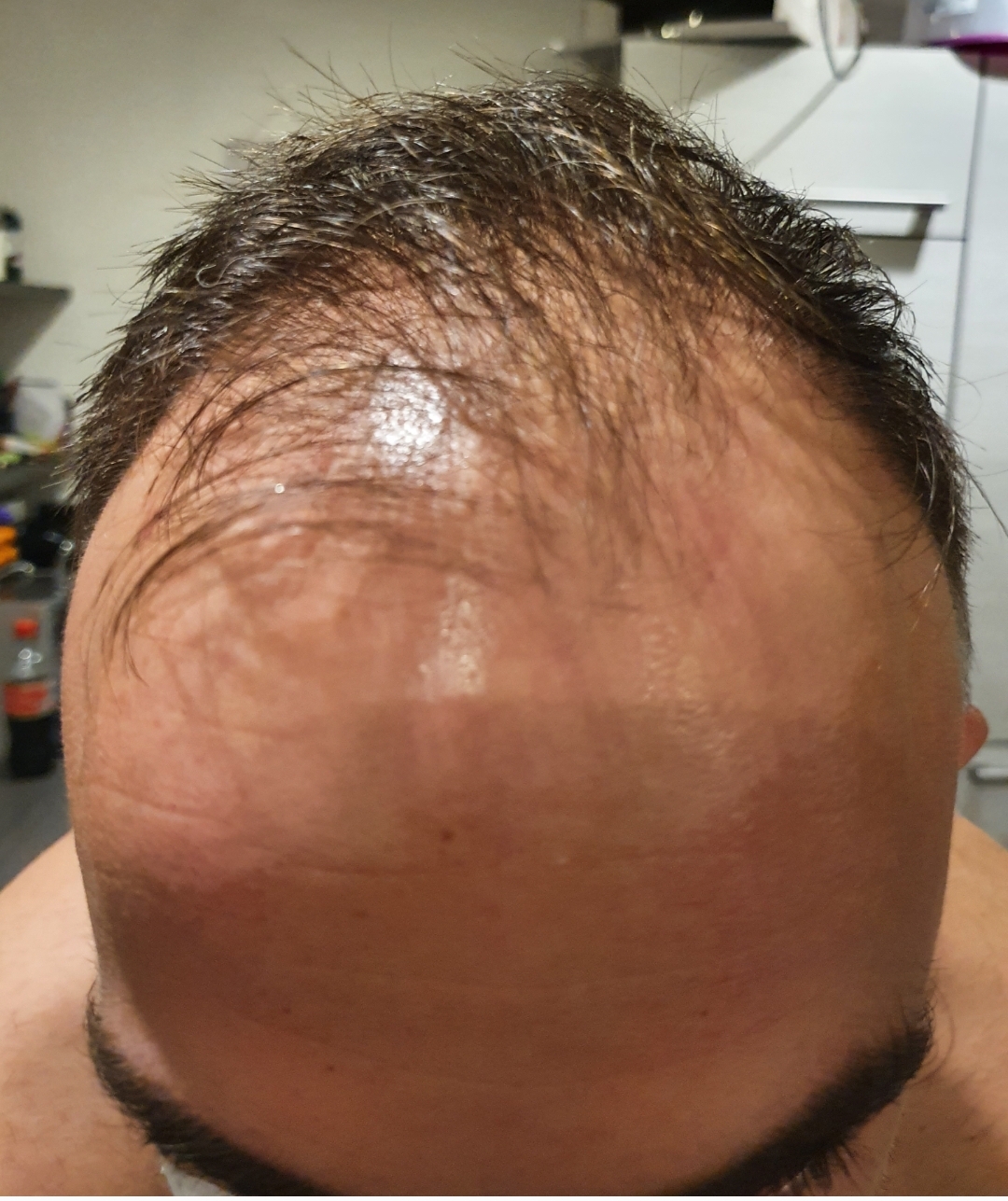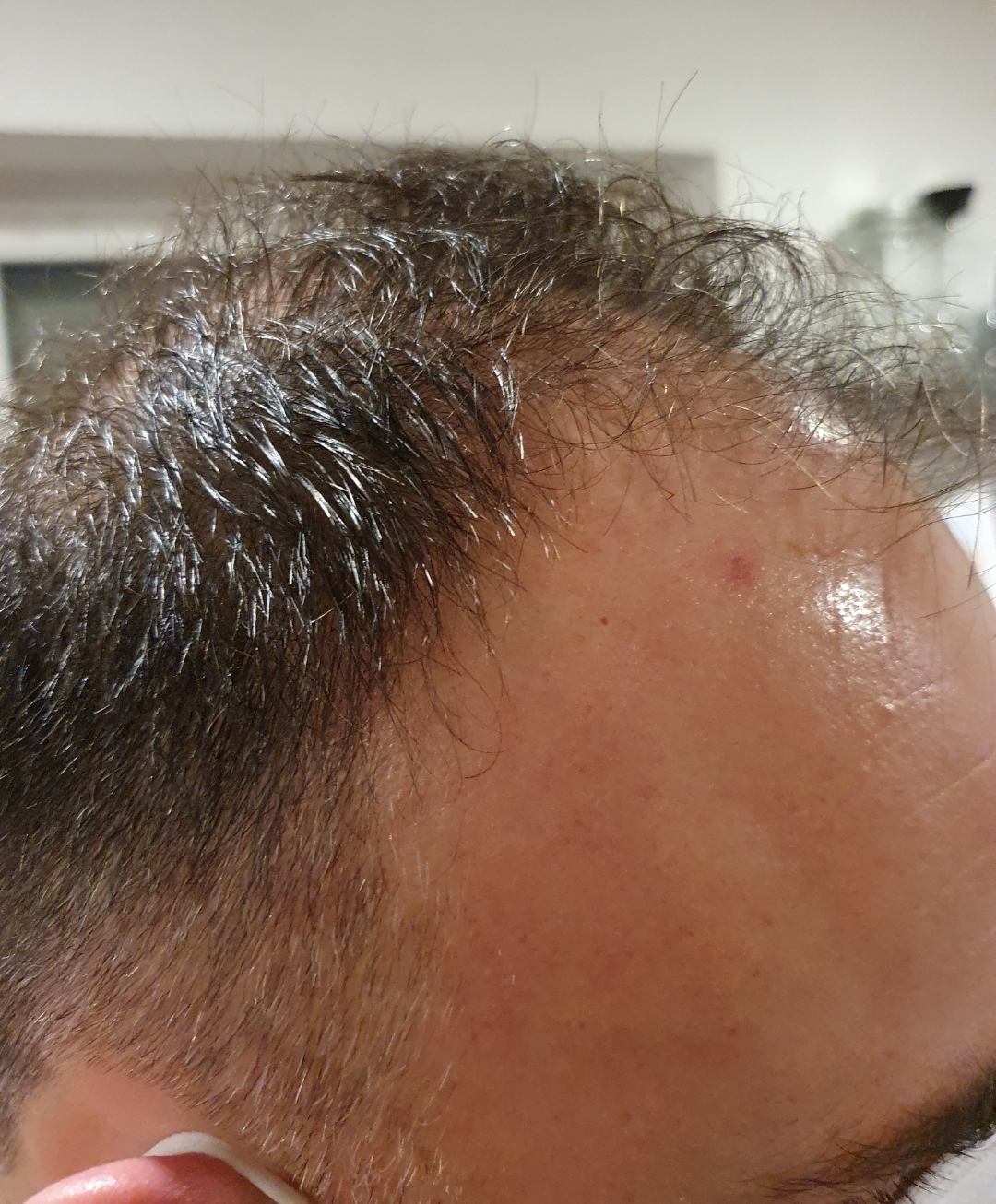 Generell bin ich mir bewusst darüber, dass ich kein perfekt dichtes Haar mehr bekommen werde. Schlussendlich aber eine optisch leicht geschlossene Platte plus konservative Haarlinie vorne.