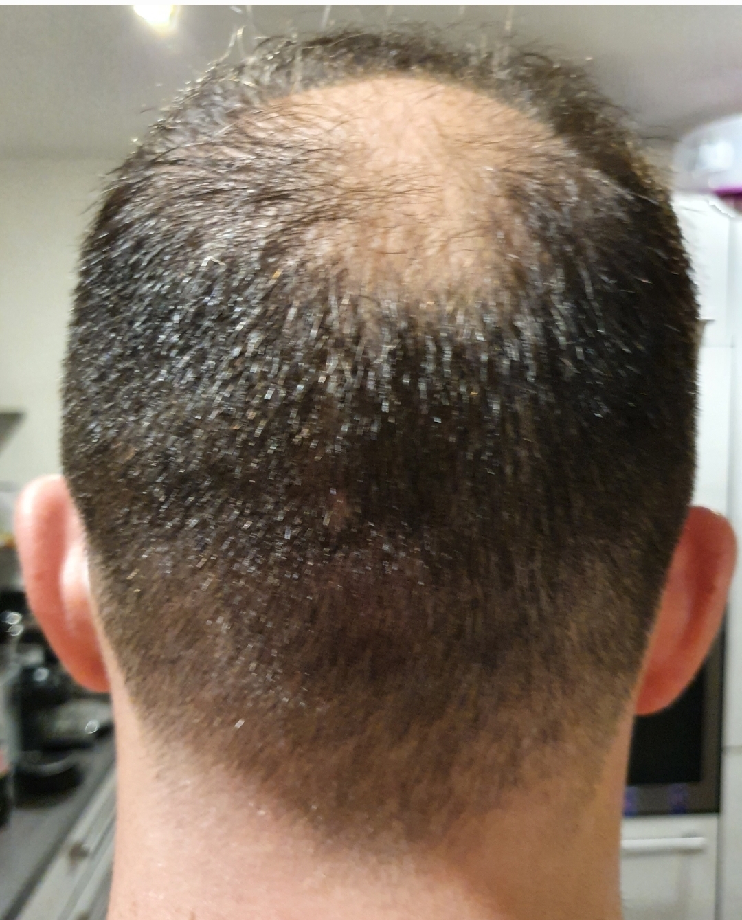 Kein leichter Fall, aber ich finde dein Donor sieht ganz ordentlich aus und die Erwartungshaltung ist realistisch. Für eine vollständige Abdeckung sind sicherlich 5.000 Grafts nötig. Für den hinteren Bereich könnte man auch einen Teil Bartsgrafts verwenden, das würde deinen Donor schonen.