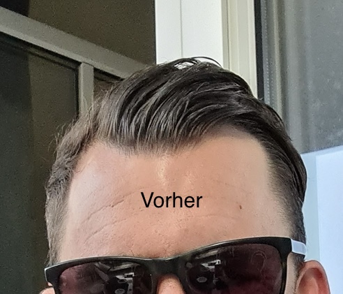 Da ich im Vorderen Haaransatzbereich schon sehr dichtes Haar hatte, zeichnet sich an den Transplantierten Stellen an den Geheimratsecken ein Unterschied der Dichte ab. Mir ist durchaus bewusst das man mit einer Haartransplantation nicht die selbe Haardichte, wie ich sie im vorderen Bereich habe, erreichen kann.