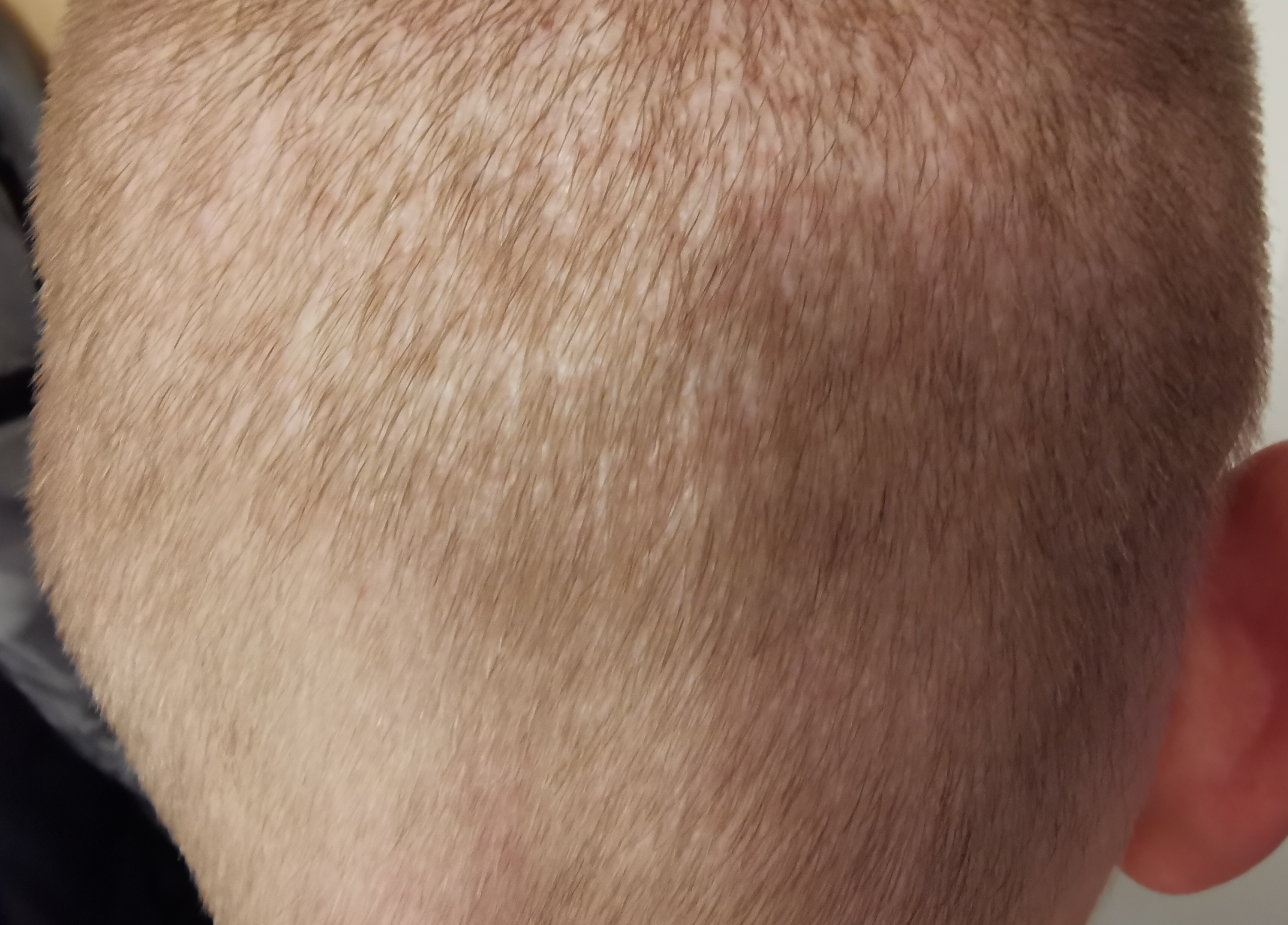 Letztendlich wurde mein Spenderbereich so in mitleidenschaft gezogen, dass bei kurzen Haaren deutliche lichte Stellen zu erkennen sind.