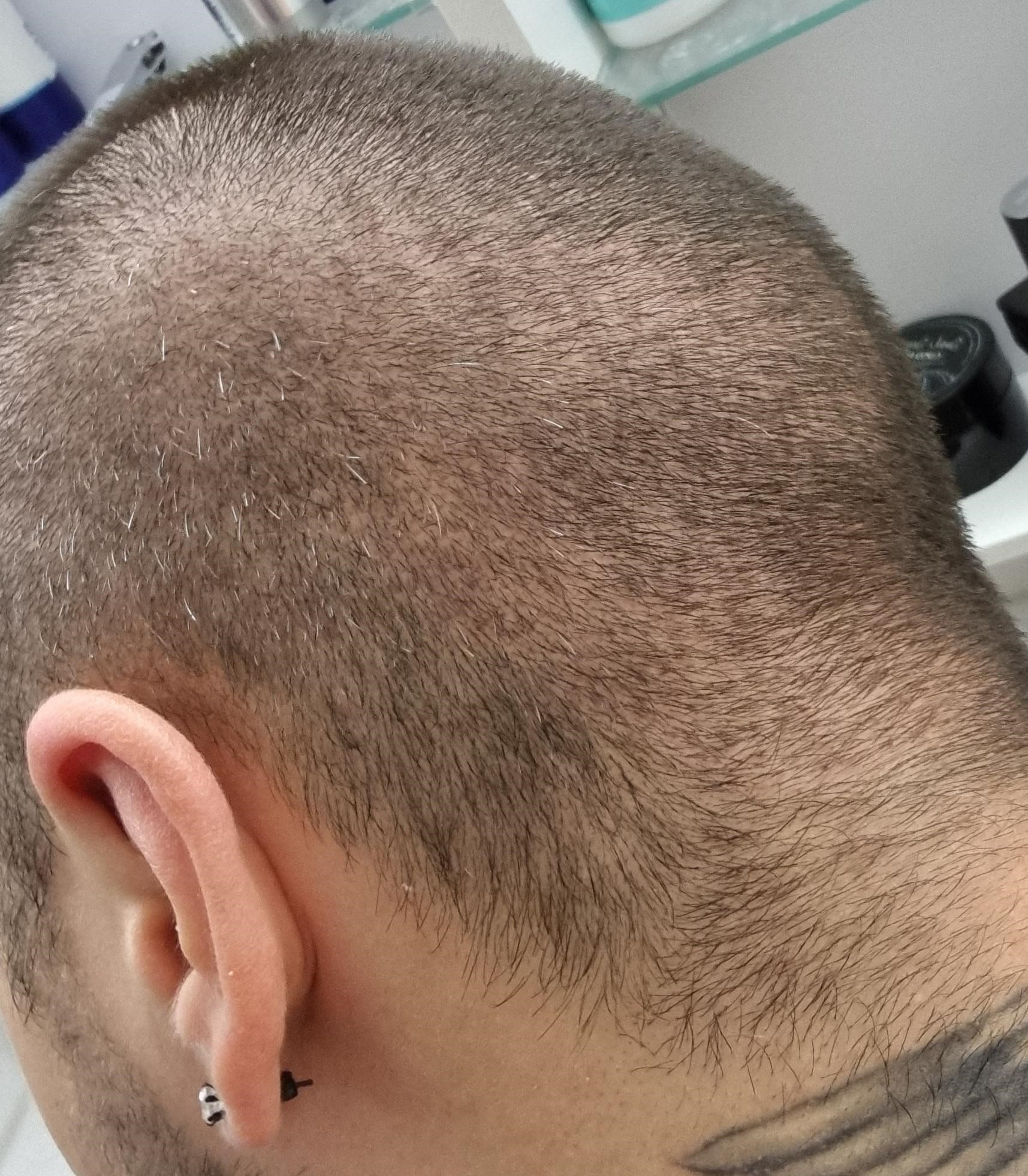 Vorne sind sehr viele haare rausgefallen wie ihr auf den bildern sehen könnt.hinten kämpfe ich momentan gege pikel die beim haarwuchsrauskommen sind sehr mühesam.ansonsten läuft alles super.