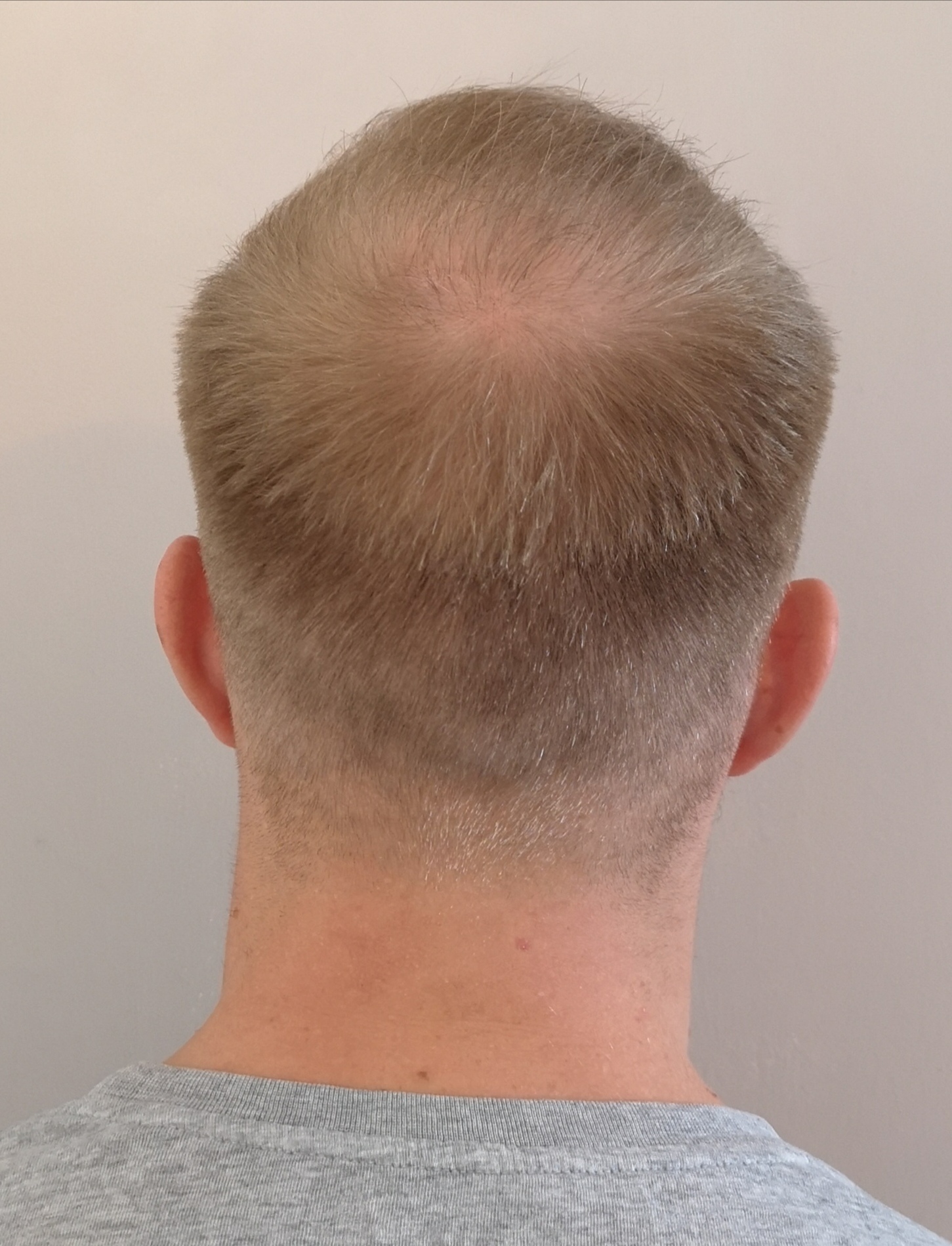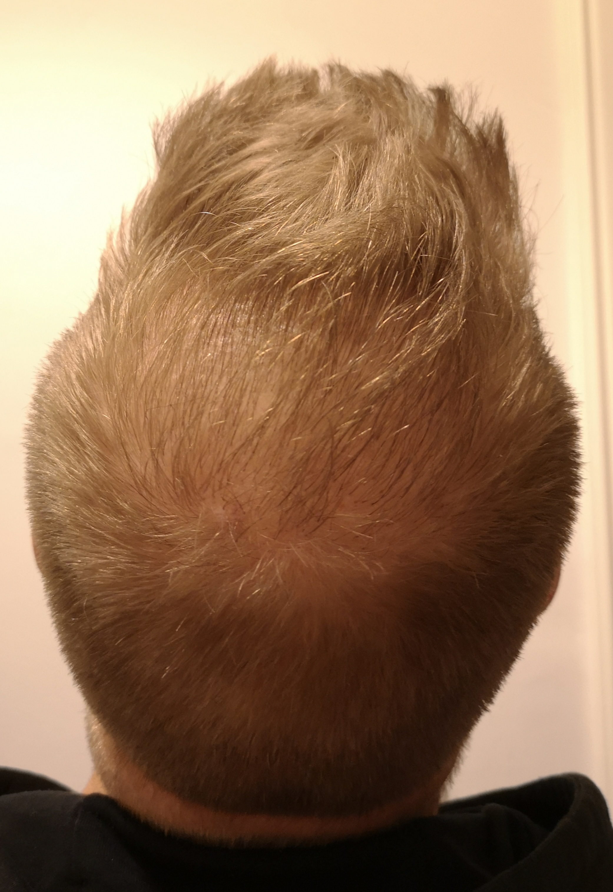 Dies wird mein letzter Post sein. Im letzten Monat sind die Haare im Tonsurbereich meiner Meinung nach noch etwas dicker geworden.