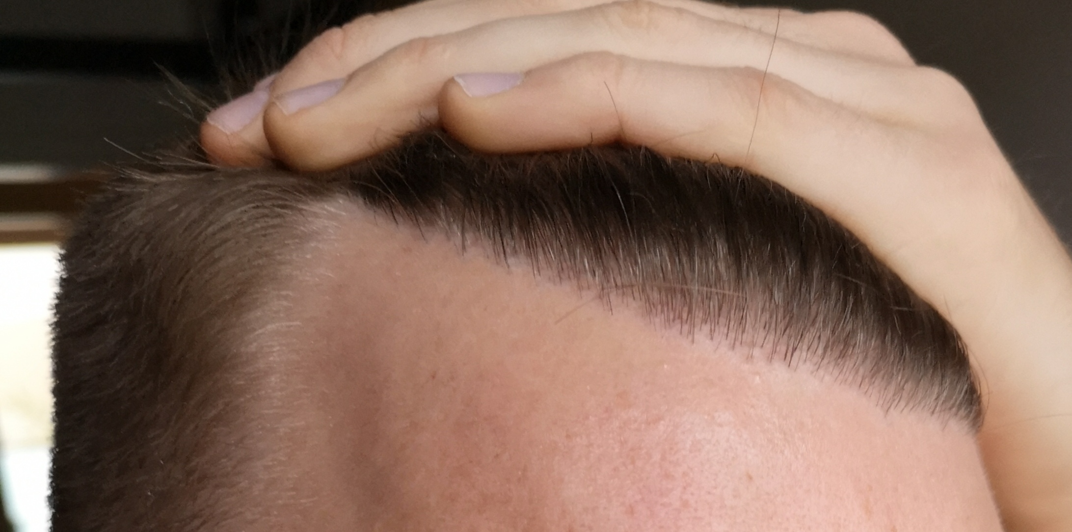 Wie bereits des öfteren erwähnt, hätten in den Geheimratsecken noch ein paar mehr Grafts gesetzt werden können, da sie sehr spitz zulaufen. Die Haarstruktur hat sich weitestgehend der des Haupthaars angepasst.