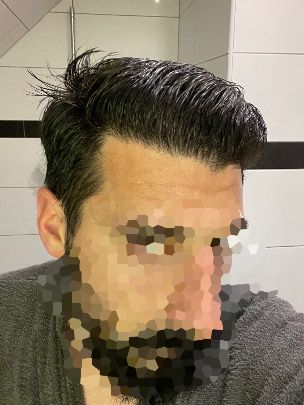 Dieser Umstand setzte sich langsam aber kontinuierlich fort. Die kommenden Jahre ließen sich aushalten. Seit Mitte 2020 bestand mein Haarstyling lediglich mit dem Kaschieren der lichten Stellen im vorderen Bereich.