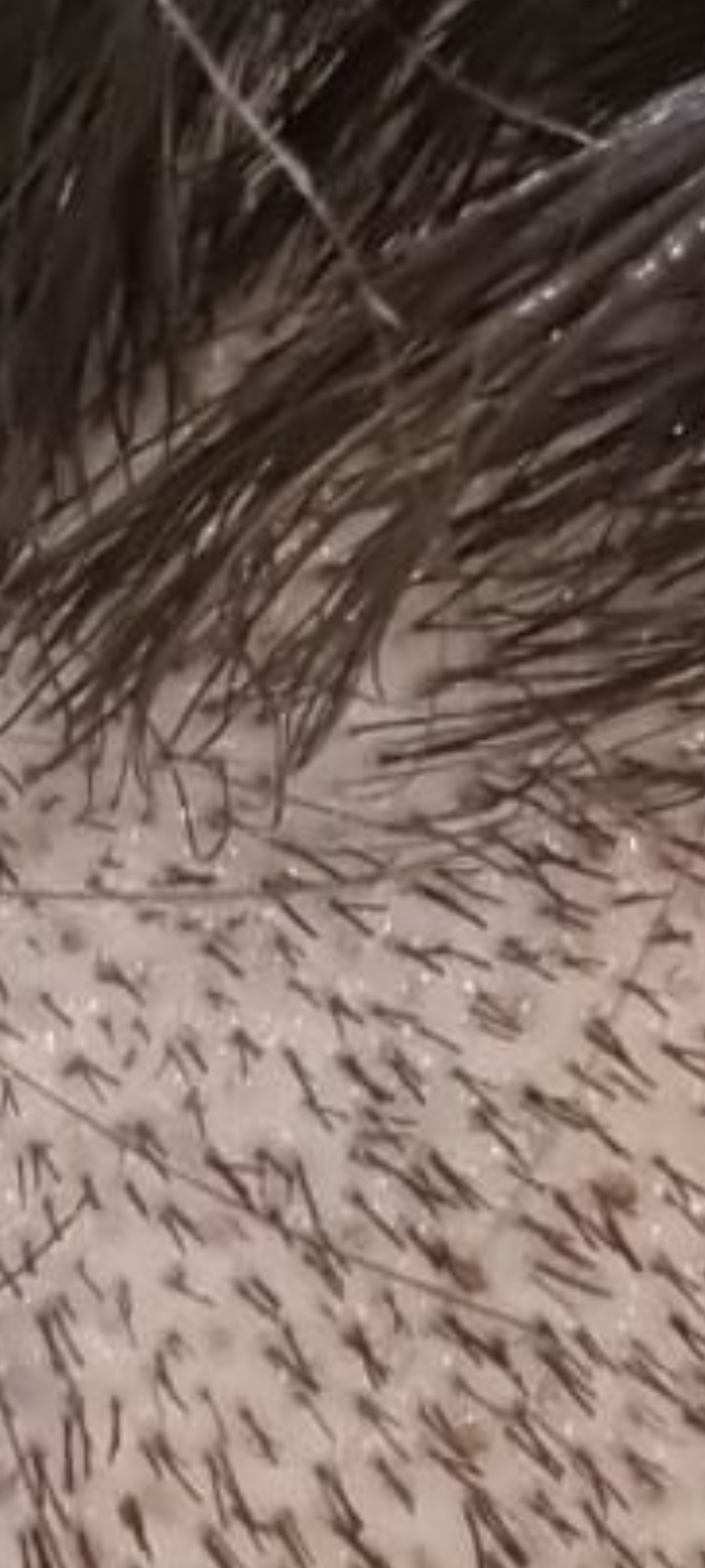 Das faszinierende war, dass oben am Hinterkopf die Rötung nach 1 bis 2 Tage schon komplett verschwunden war. Vielleicht waren die Wurzeln dort kleiner und der punch nicht so groß.