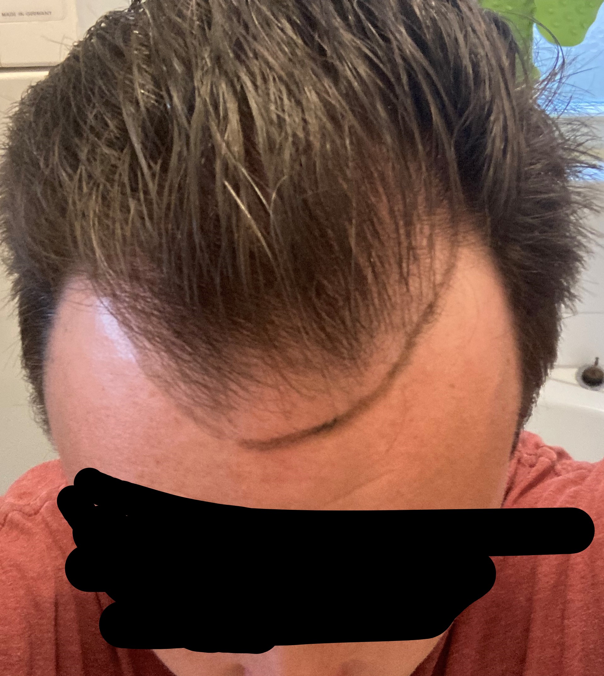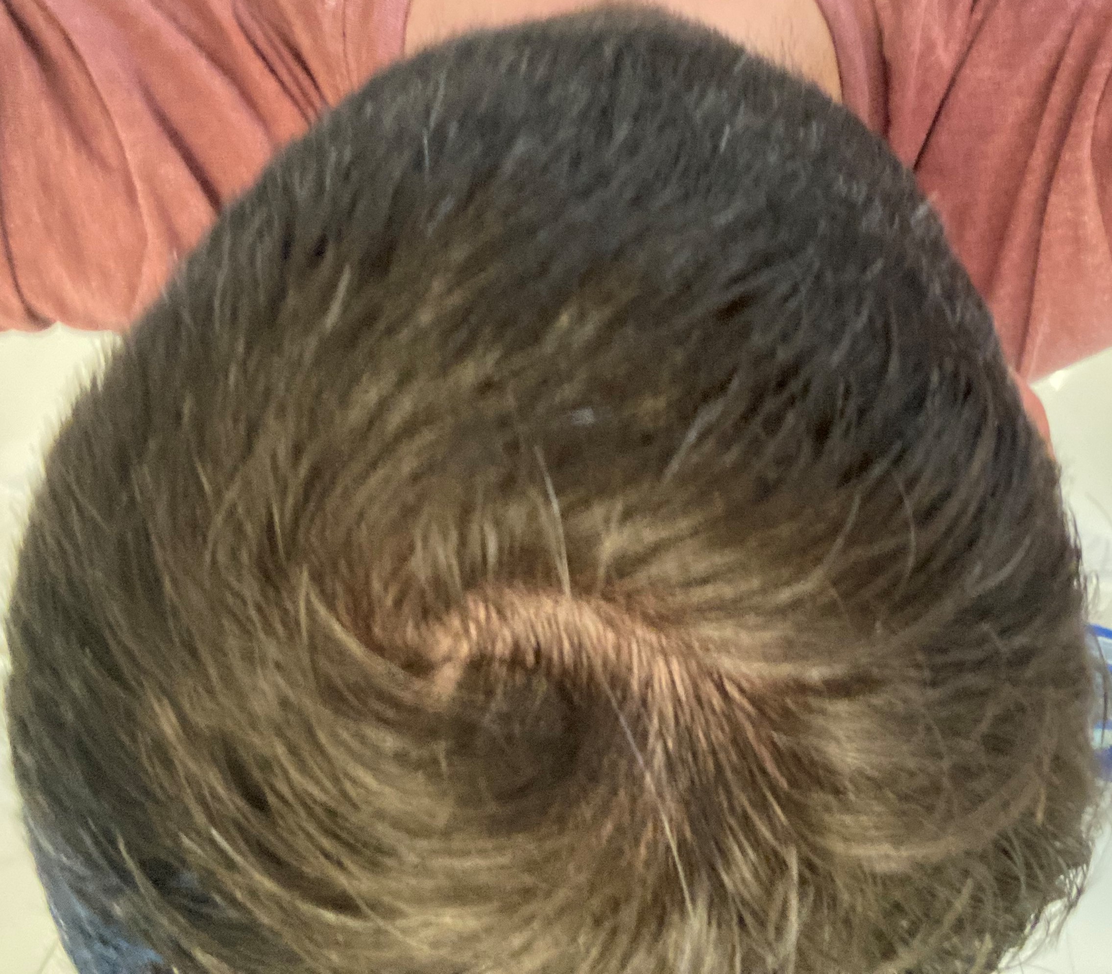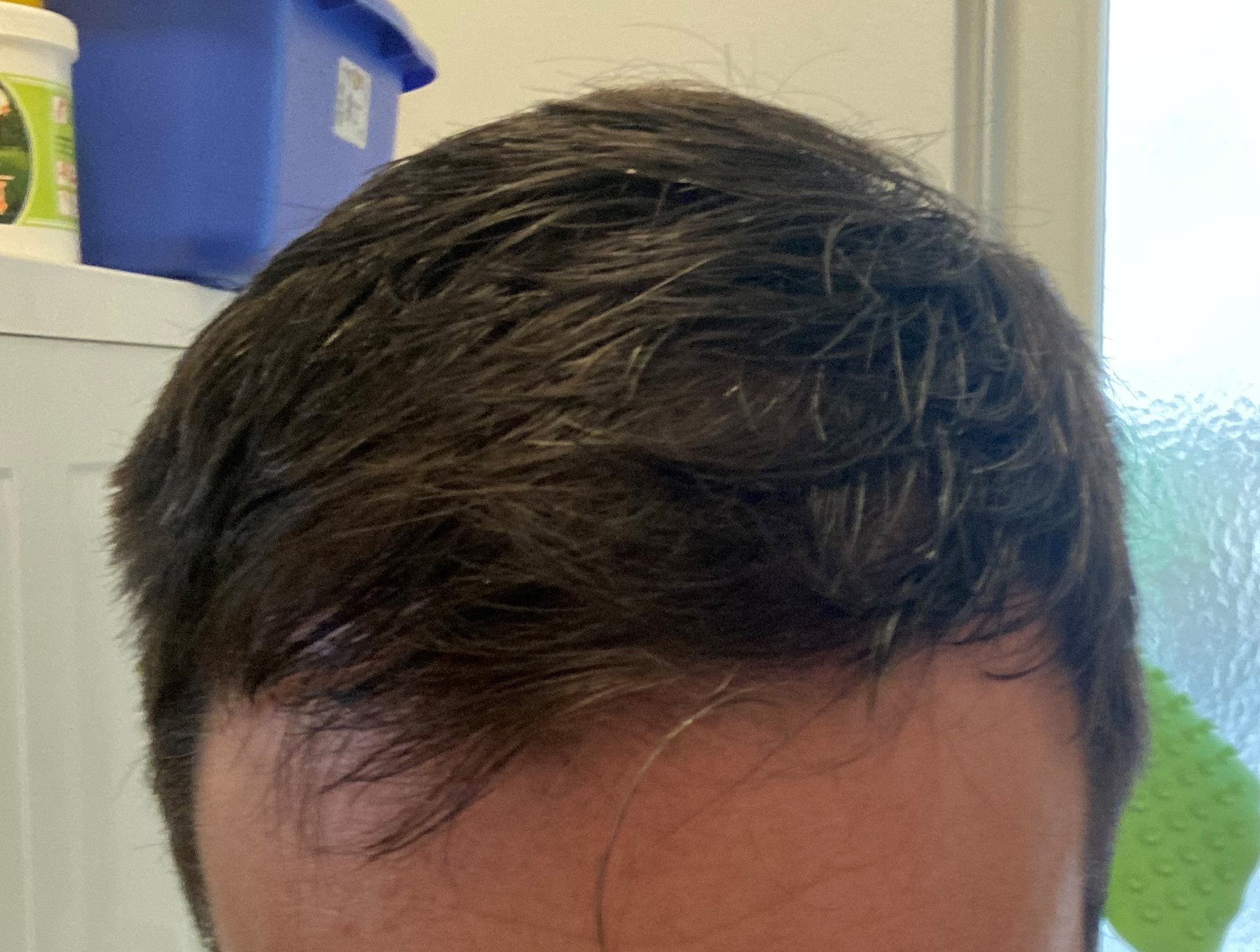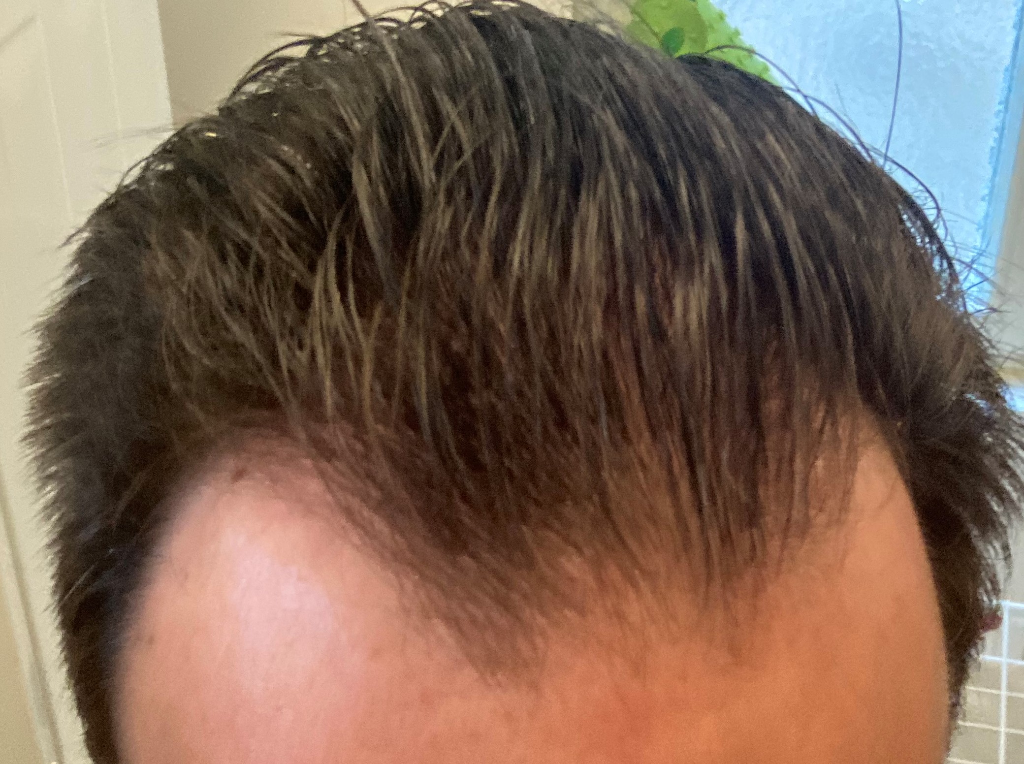 In meinem Umfeld erkennt glaube ich kaum jemand ein Haarproblem bei mir. Wie man am ersten Bild erkennen kann, kann ich die GHE gut kaschieren, es wird allerdings deutlich schwieriger seit vorne die Haarlinie eingebrochen ist in den letzten ca. 18 Monaten.