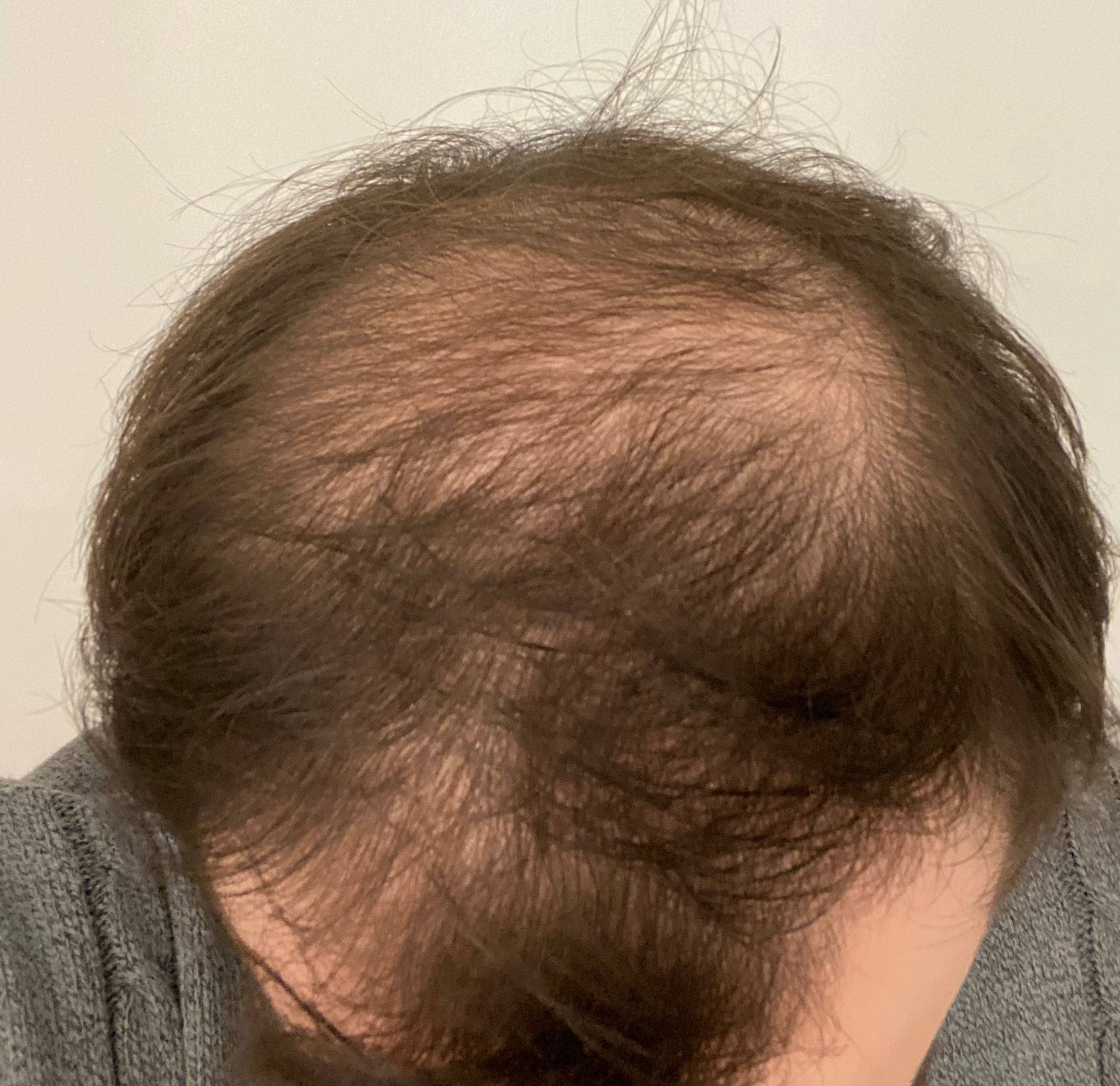Im Vergleich zum Ausgangszustand eine deutliche Verbesserung. Die Tonsur wird vermutlich nicht ganz so dicht werden, aber vorher war es dort auch schon ziemlich licht!