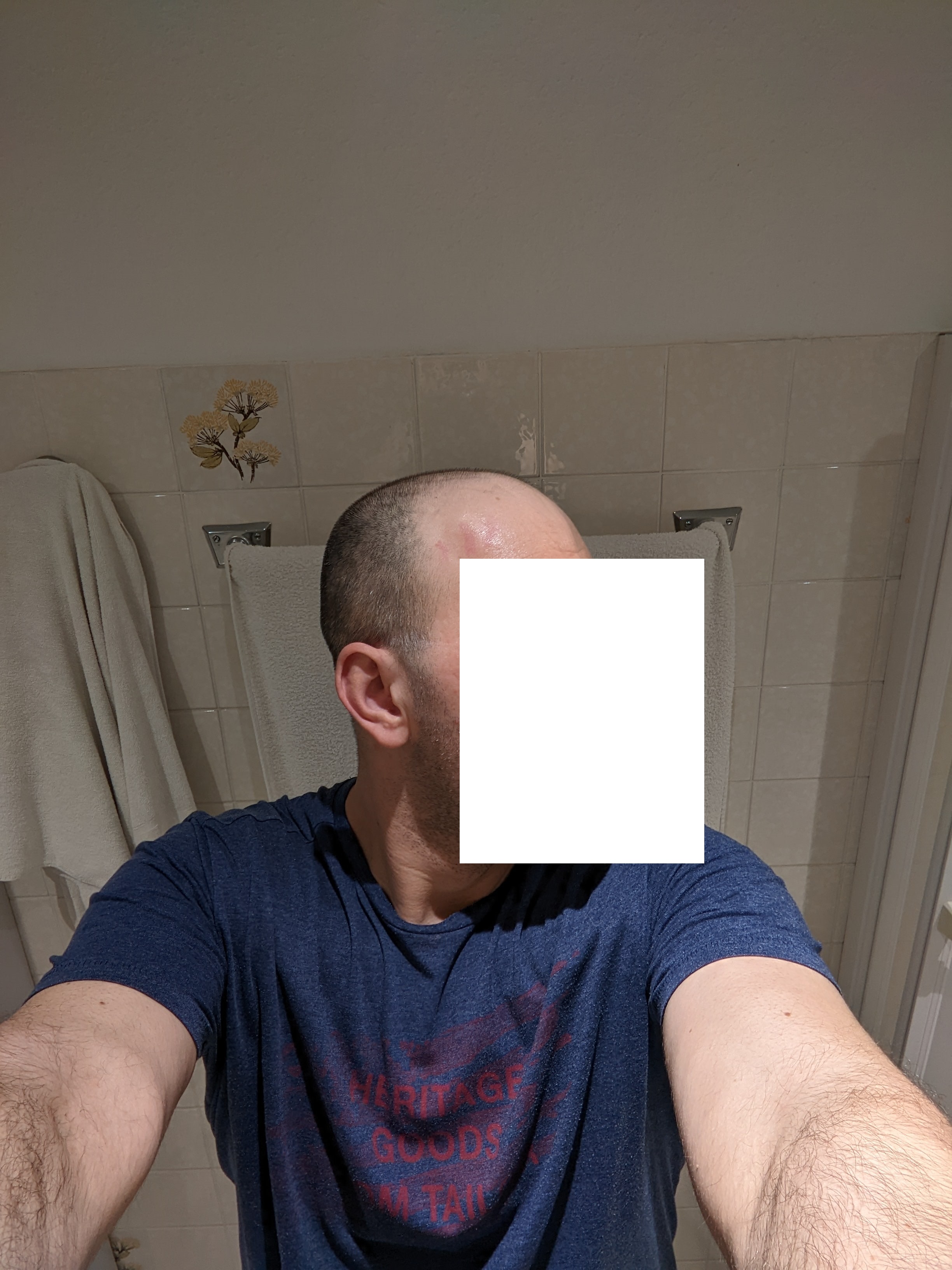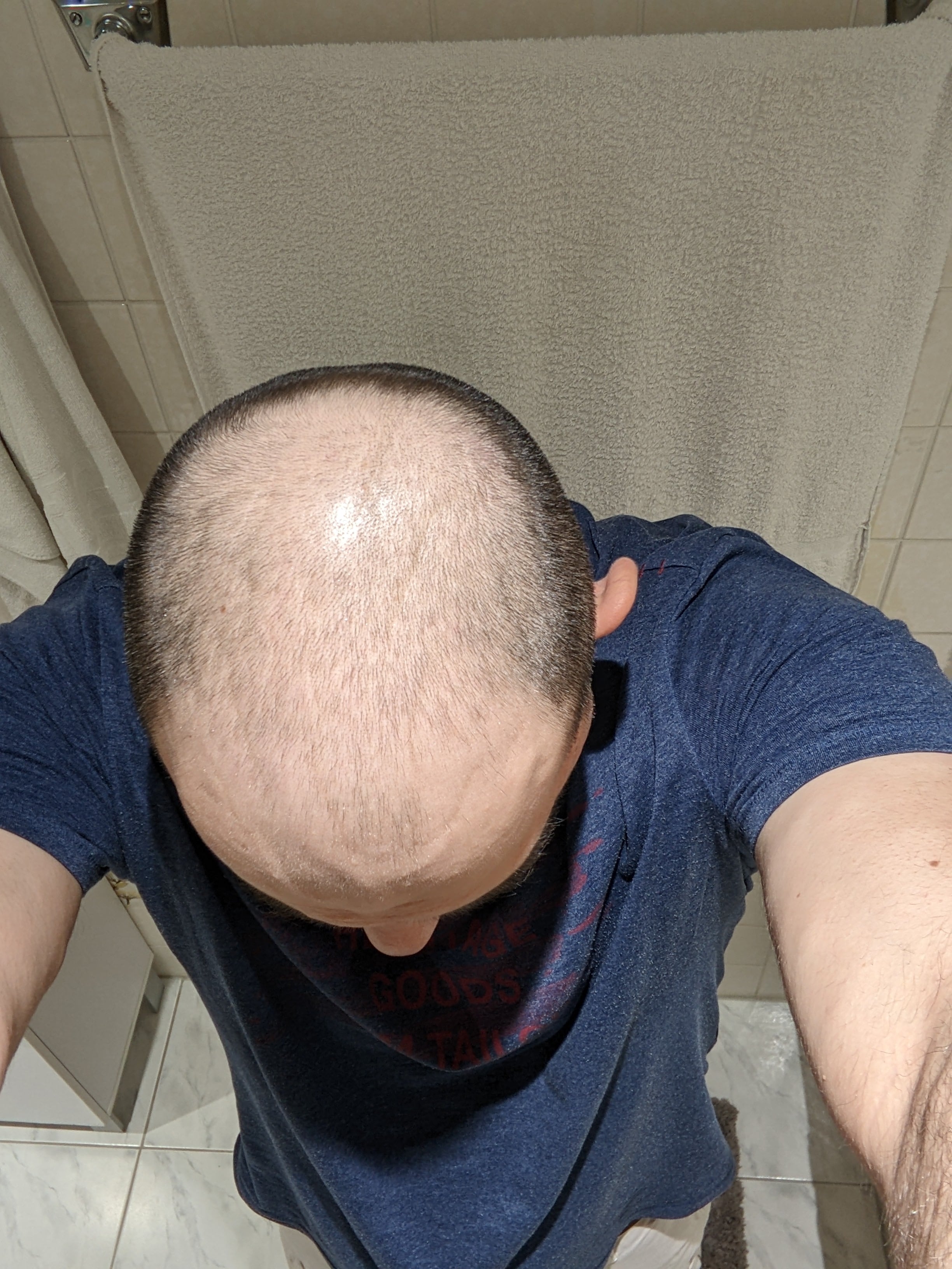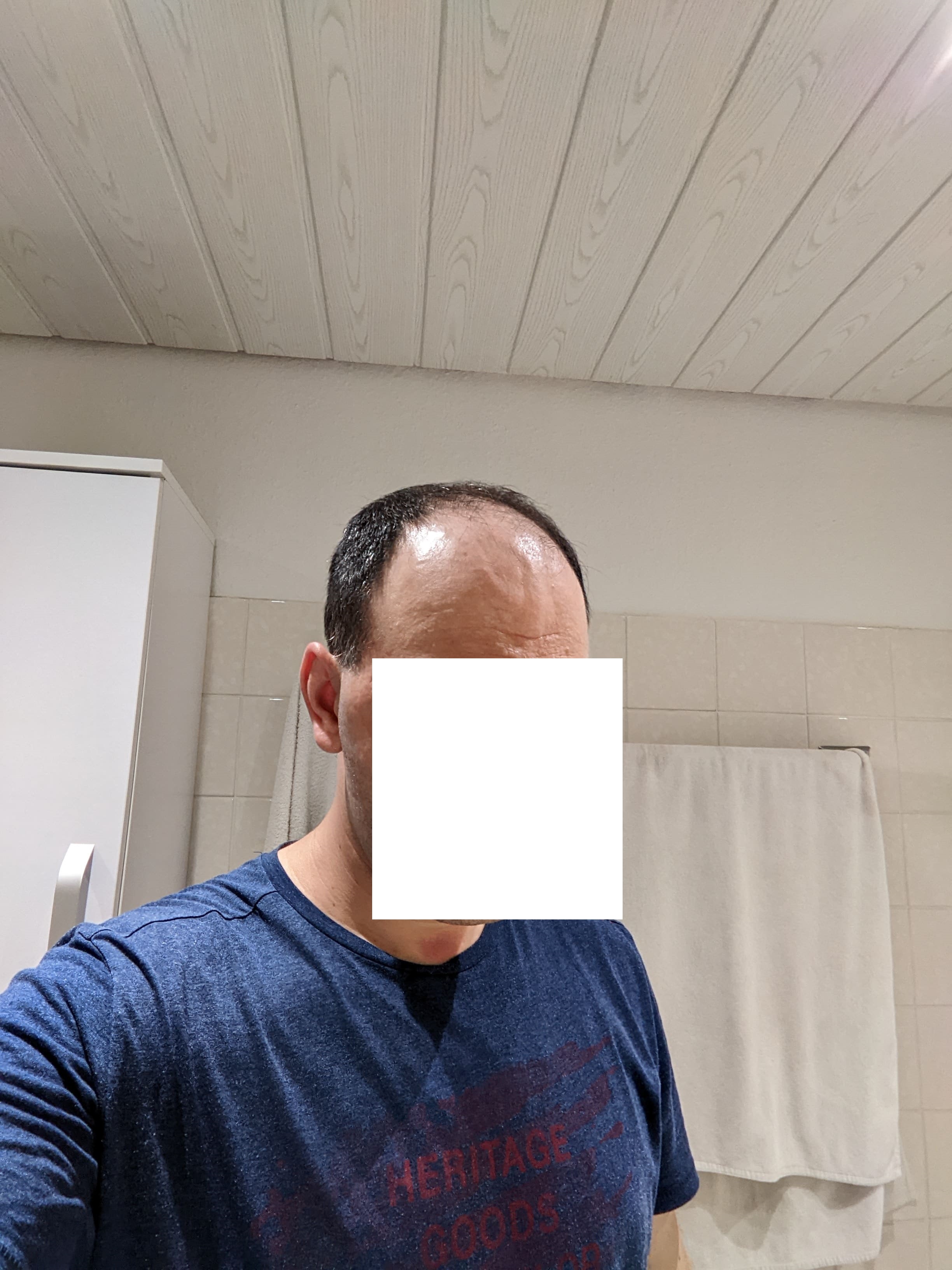 Fin habe ich vor 7 oder 8 Jahren für einige Monate genommen, habe dann aber wegen Nebenwirkungen damit aufgehört und weiterhin nur Minoxidil aufgetragen. Wie ihr sehen könnt, hat dieses nun seine Wirkung verloren.