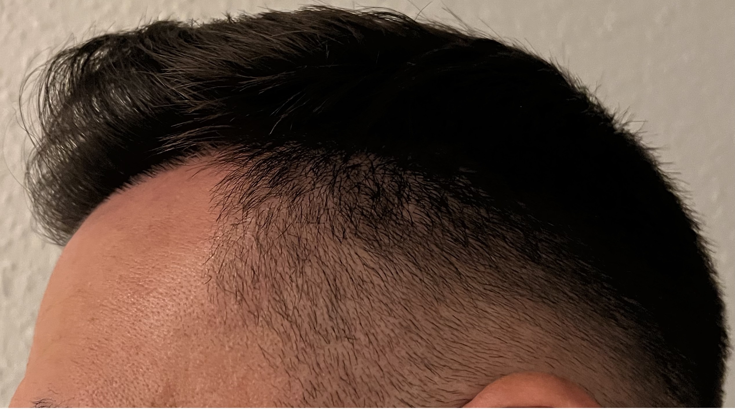 Ich füge euch nochmal vorher/nachher Fotos hinzu, damit ihr den Unterschied sehen könnt. Mir wurden am 20.10.2021 insgesamt 3600 Grafts verpflanzt. 3400 davon wurden oben verpflanzt (fue). 100 Grafts wurden jeweils an der Seite verpflanzt (dhi).