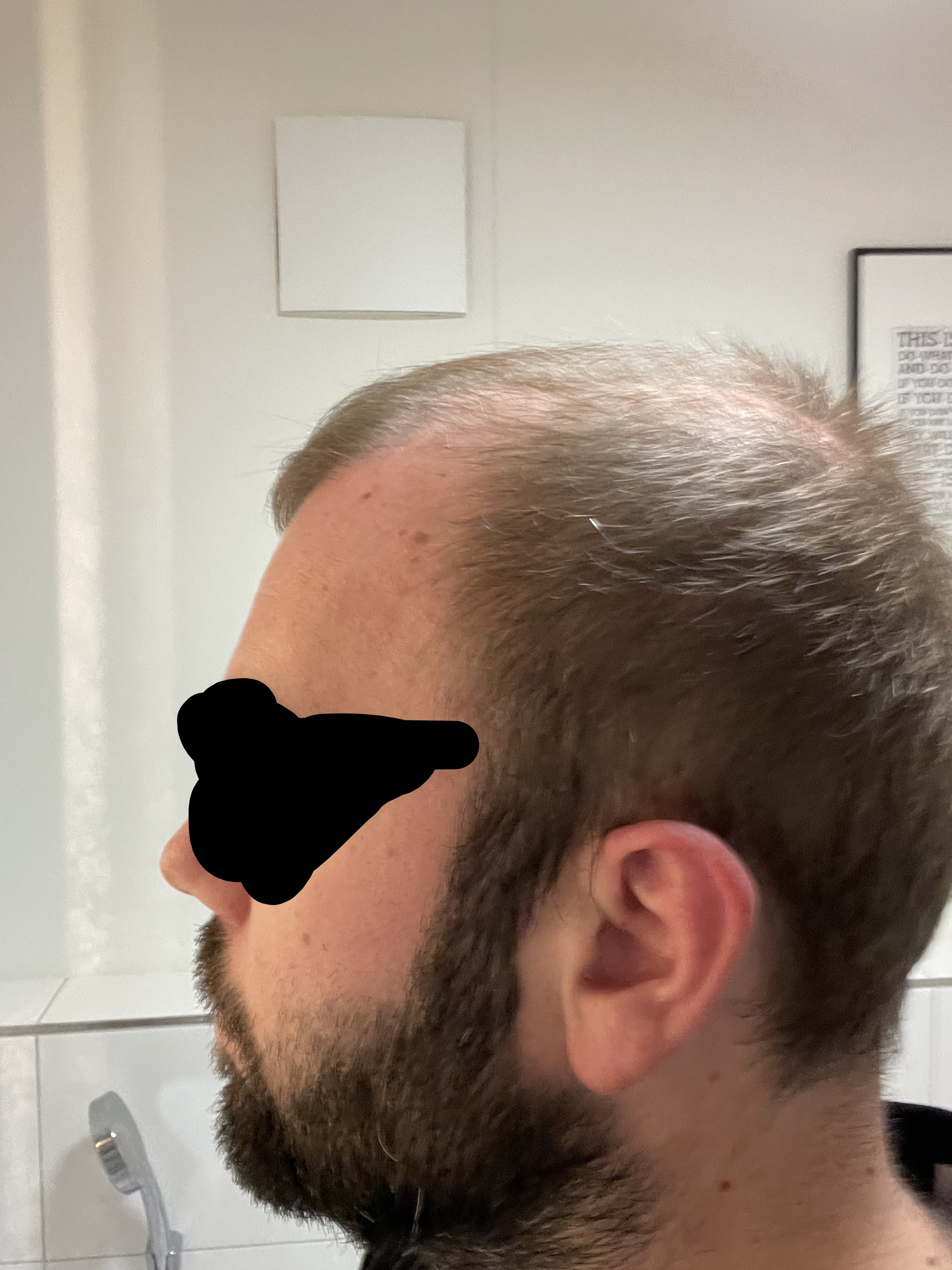 * Ausfallverlauf/Medikation: langsam, angefangen mit ca. 18-19 Jahren, dann schneller, Minox ohne Effekt, ab 21 Jahren Fin, darunter verlangsamt, aber nicht gestoppt, ca. 9 Jahre eingenommen, mit 30 wegen Nebenwirkungen und zwar langsameren, aber fortschreitendem Ausfall abgesetzt.