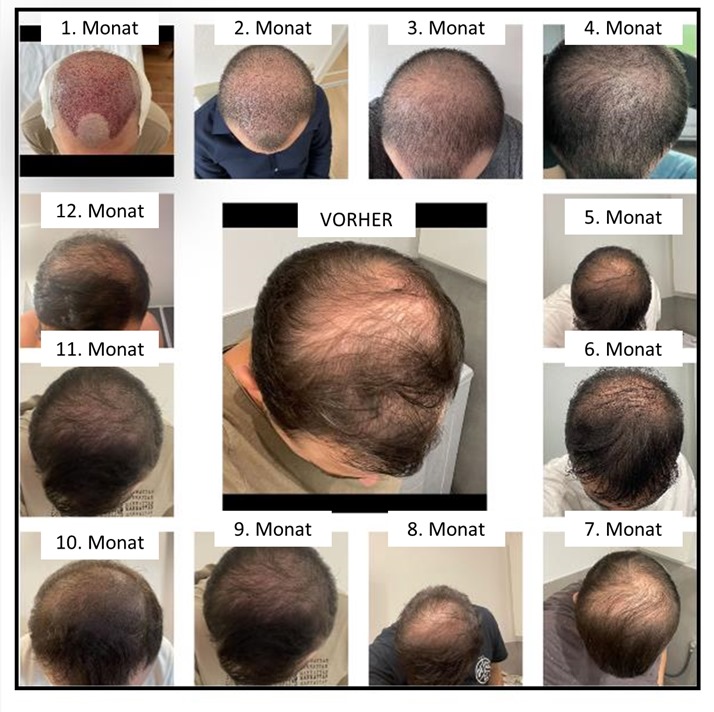 Nach ca. 8 Wochen konnte ich jedoch schon erste Haare sehen, welche gewachsen sind. Mir ist bewusst, dass das Ergebnis erst nach ca. 1 Jahr zu sehen ist, dennoch freue ich mich über die ersten gewachsenen Haare. Ich hatte bereits eine PRP-Behandlung durchführen lassen, die 2. findet am Freitag statt. Ich bin gespannt auf das Ergebnis und werde regelmäßig neue Updates hochladen.