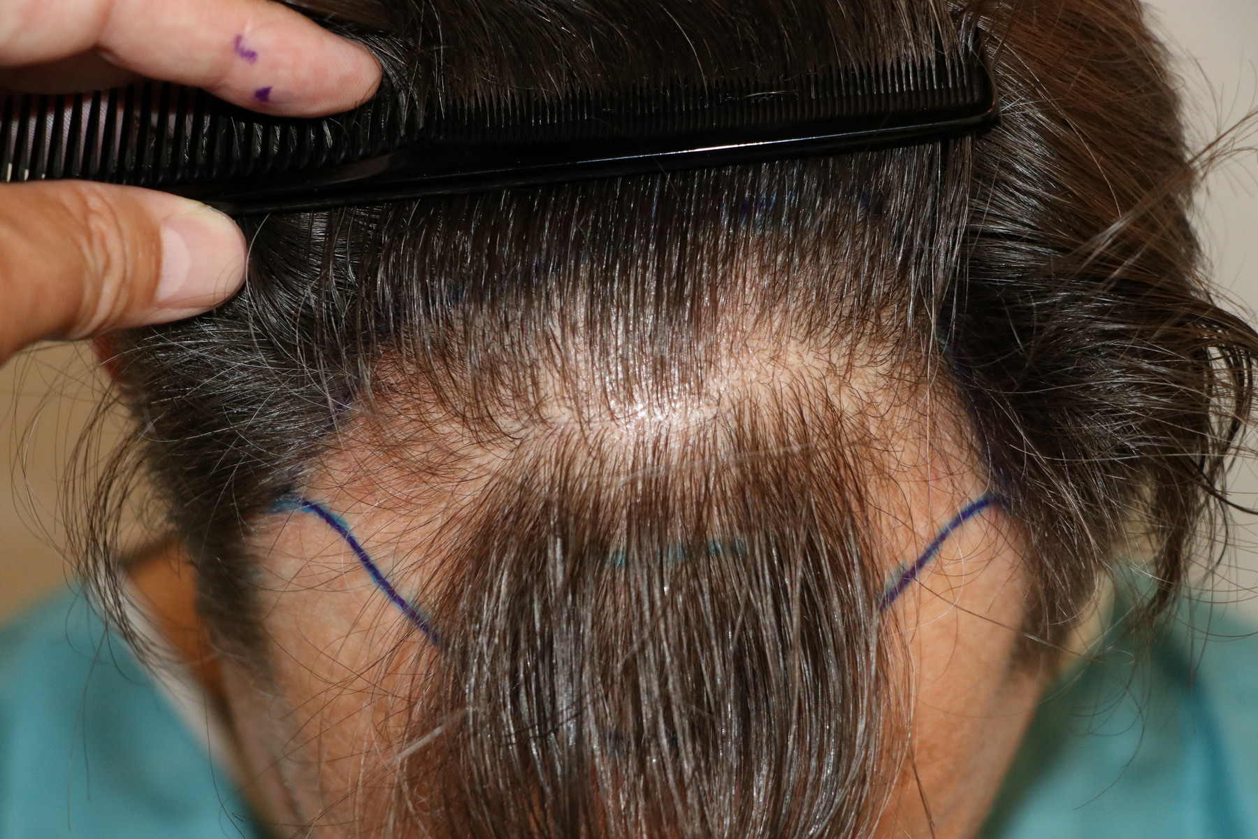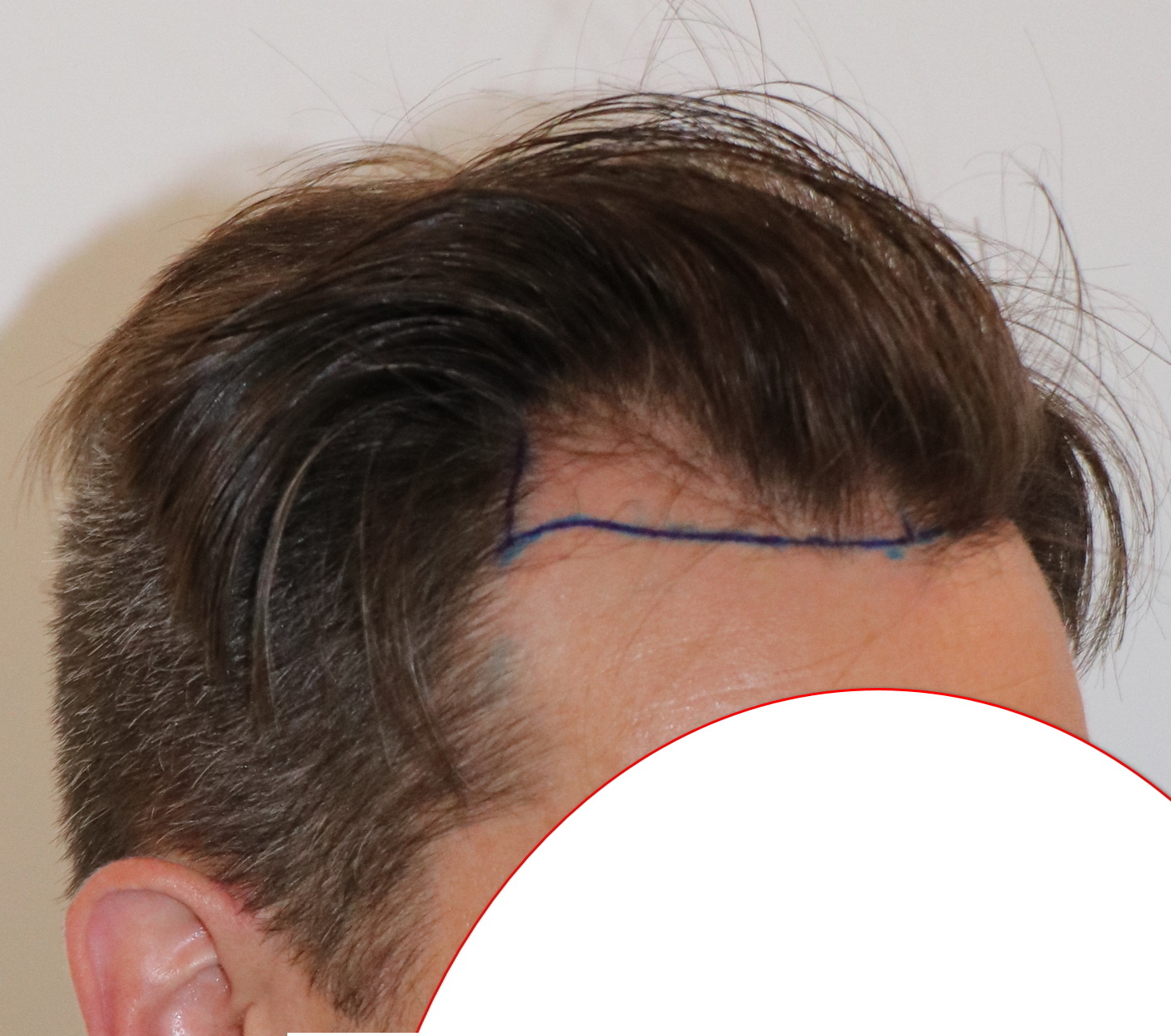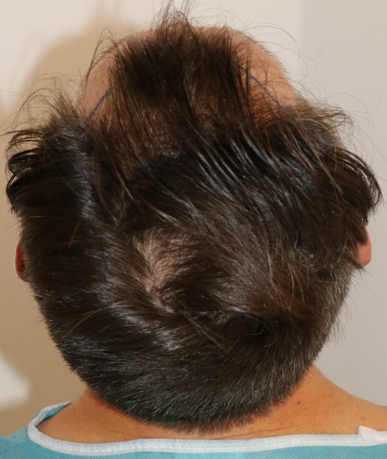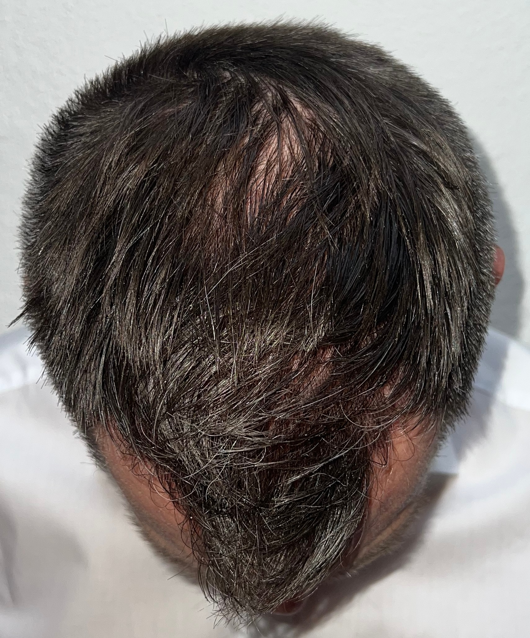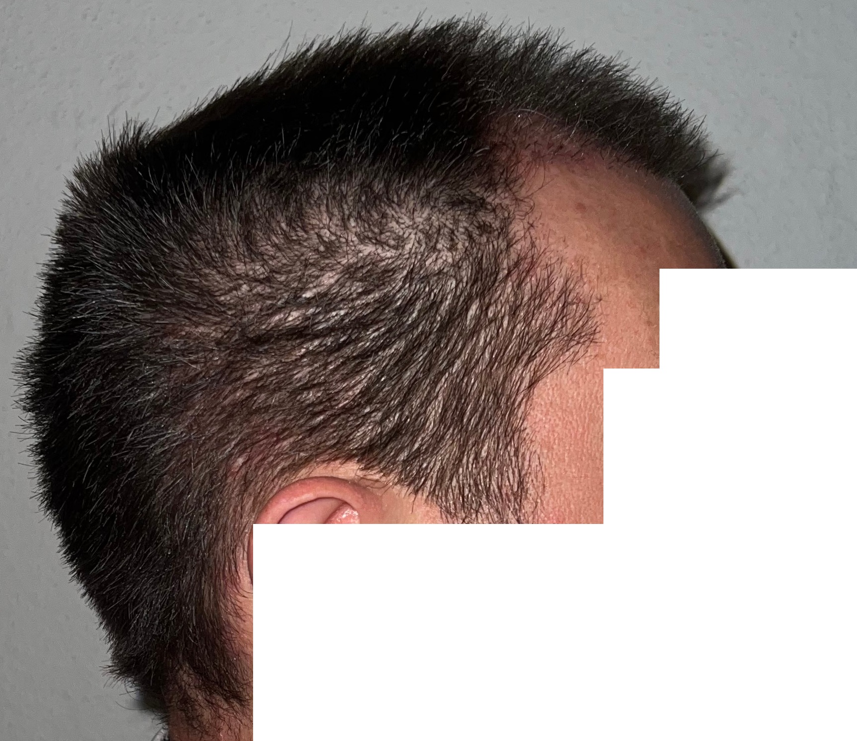 Bin männlich, 42 Jahre alt, Nichtraucher, trinke wenig Alkohol, ernähre mich gesund und nehme keine Medikamente. Habe schon immer GHE und wollte diese endlich los werden. In den letzten Jahren kam leichter bis mittlerer HA in der Hair line zone (Zone 2) und Central core (Zone 3) hinzu. Bisher mit langen, seitlichen Haaren immer kaschiert, so dass es kaum auffällt. Dennoch hat es mich genervt und die Eitelkeit gesiegt.