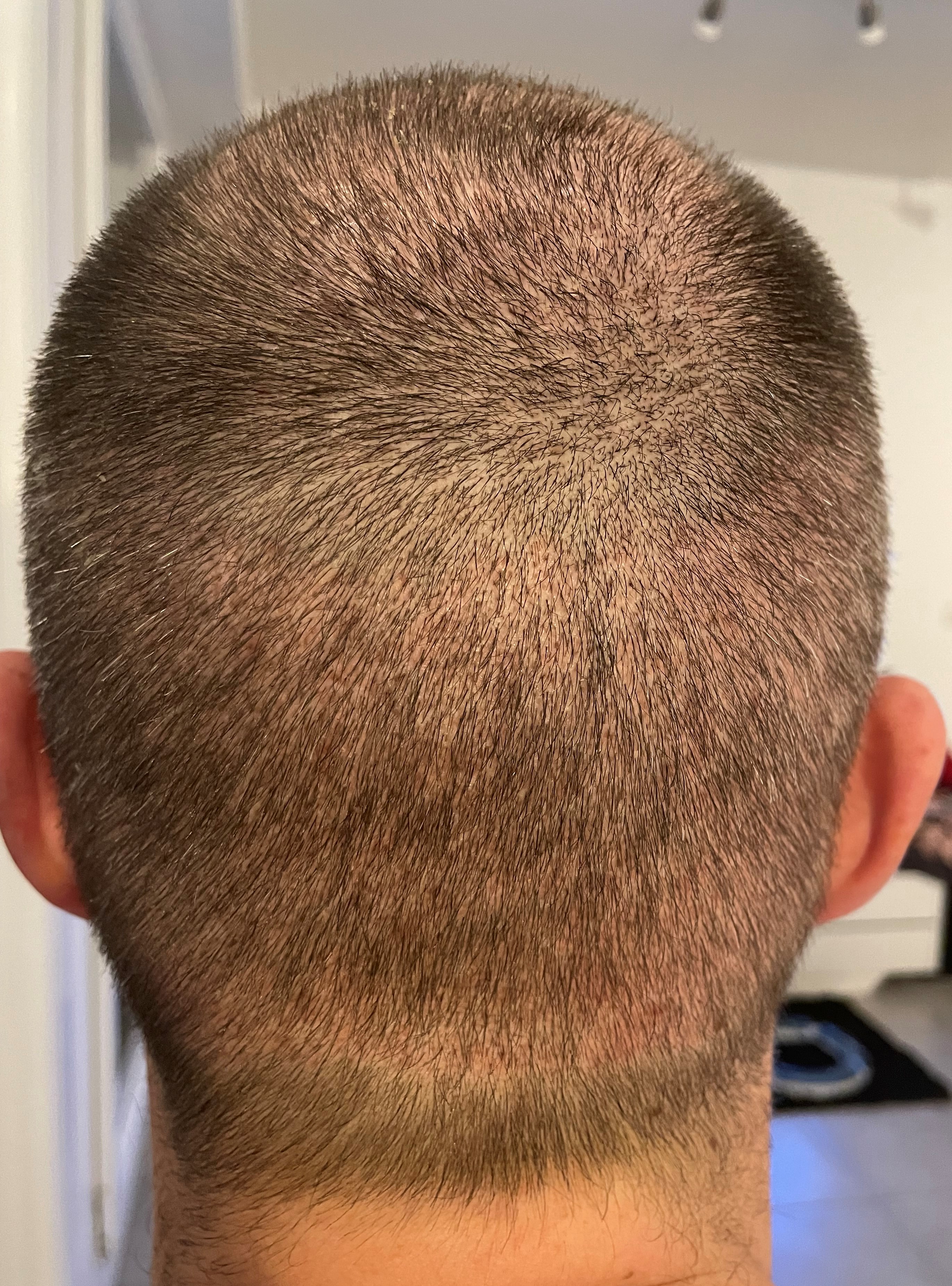 Langsam fallen die Haare wieder aus. An der Tonsur ist es schon sehr licht, Front wird auch dünner.