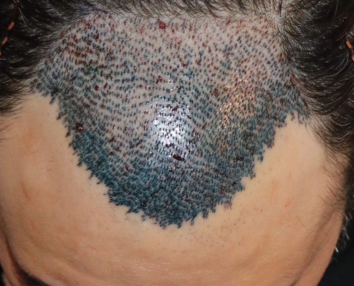 bin heute genau in der 11. postoperativen Woche. Habe heute die vorderen 2/3 der Transplantationszone auf 1 mm rasiert, sah irgendwie komisch aus, konnte auch gar nicht sehen wo nun transplantiert worden ist, also ich konnte keine Haarlinie nachvollziehen. Die ersten beide Fotos sind unmittelbar vor der Rasur, die anderen 4 entsprechend direkt danach. Man sieht auch gut, dass die sogenannte Brücke sehr gut nachgewachsen ist, wurde auch mit rasiert und behandelt, siehe auch postop Foto Tag 0, aber der Rest ist erschreckend häßlich wie erwartet und bekannt. Trotzdem bin ich jetzt fast 3 Monate postoperativ und finde es sehr schlecht, hoffe nicht zu den Patienten zu gehören die kein ansehnliches Ergebnis bekommen. An einigen Stellen ist es immer noch glatt und kahl wie ein Babypo.