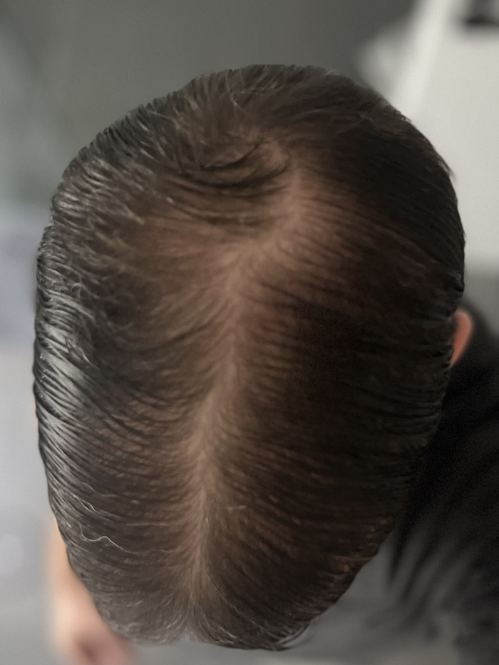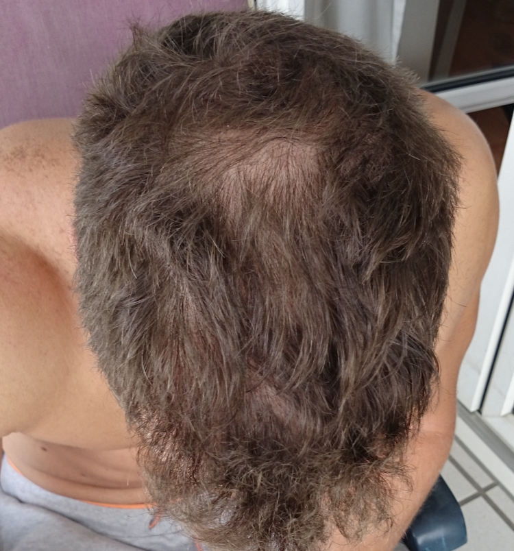 Ich bin mit meiner Haarstatus relativ zufrieden. Gerade die Haarlinie macht mir wenig sorgen. Nur bei der Tonsur stoße ich selbst mit Concealern an meine Grenzen. Noch sind in der Tonsur überall verteilt Haare, es gibt keine komplett kahle Stelle. Beigefügt ein Bild.