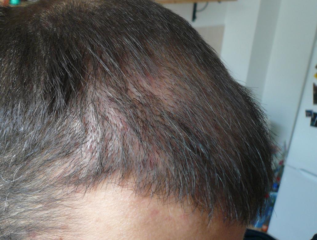 Wie man sehen kann, fangen die Haare langsam an, zu wachsen. Es ist zwar viel zu fruh, um das gesamte Ergebnis zu bewerten, jedoch sieht es zur Zeit sehr gut aus!