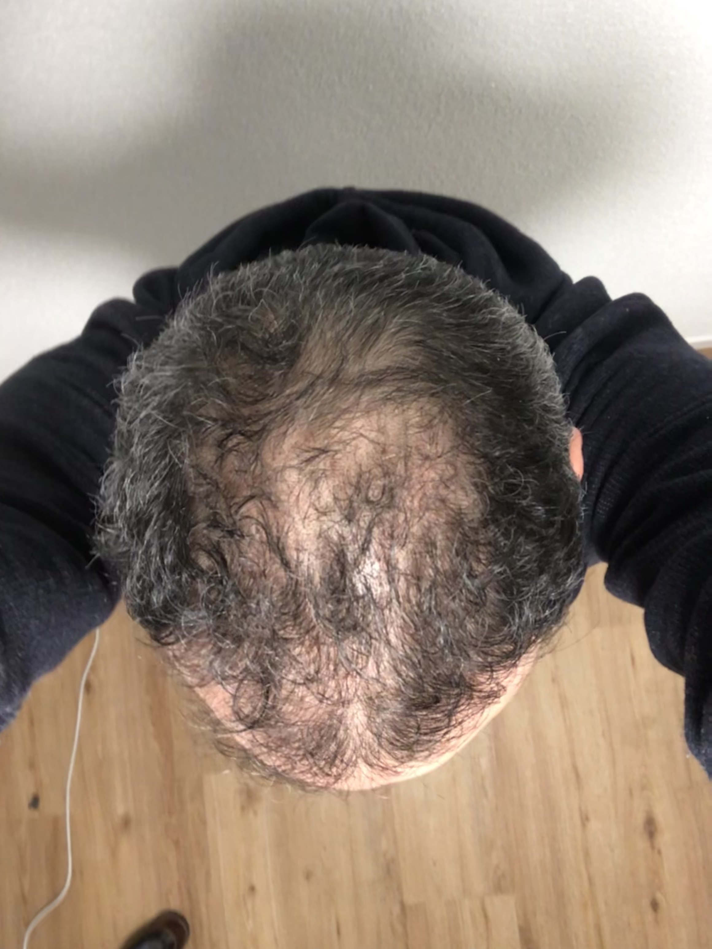 Ebenfalls hast du noch Resthaar auf dem Oberkopf, welches man ggf. mit Medikamenten stabilisieren könnte.