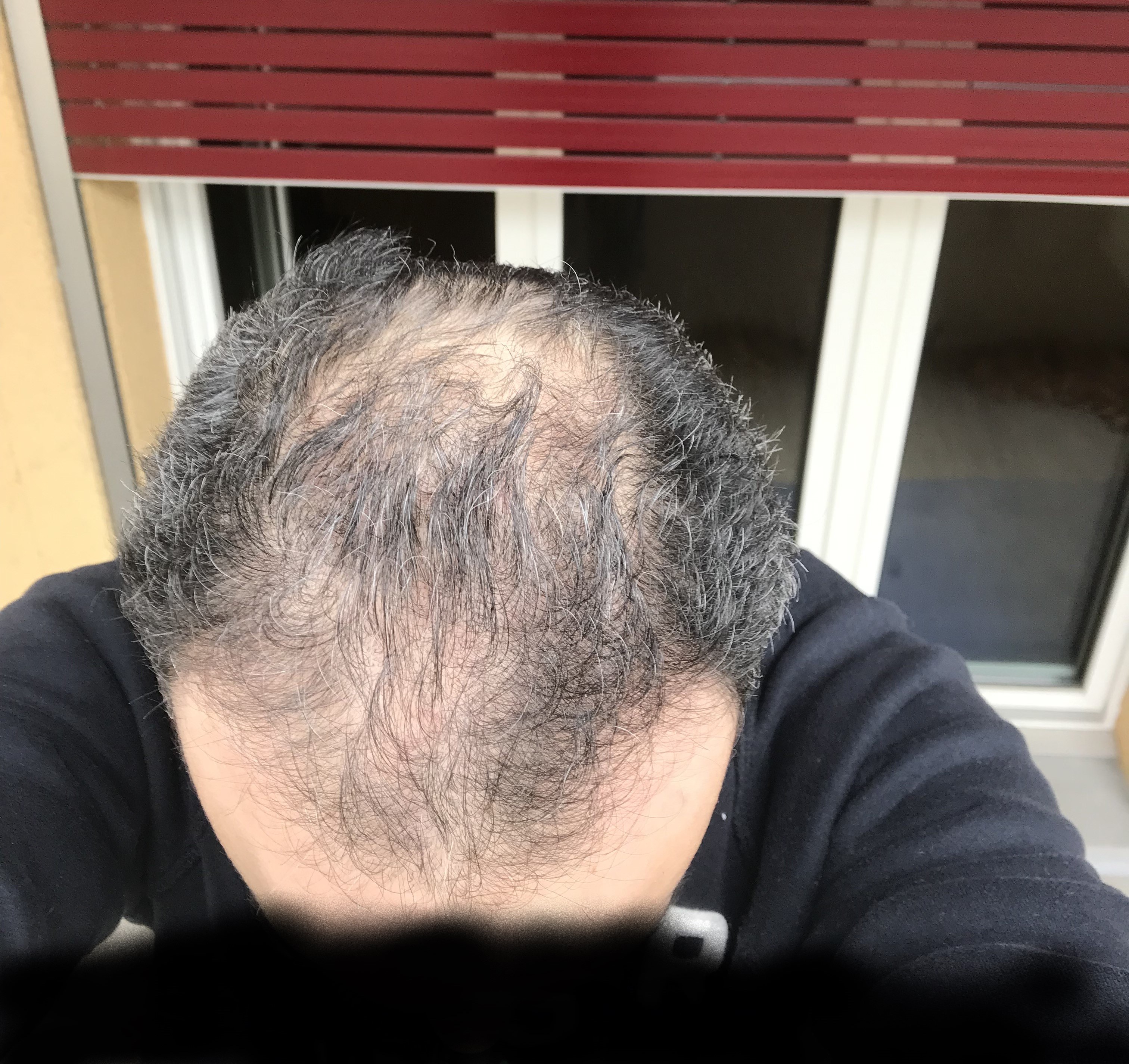 War Mal bei einem Hautarzt und er meinte, er würde mir empfehlen nur vorne nachzubessern und hinten das Ganze so sein lassen. War da ein wenig skeptisch. Wobei wohl die Gefahr besteht, dass es da weiter progressiert.