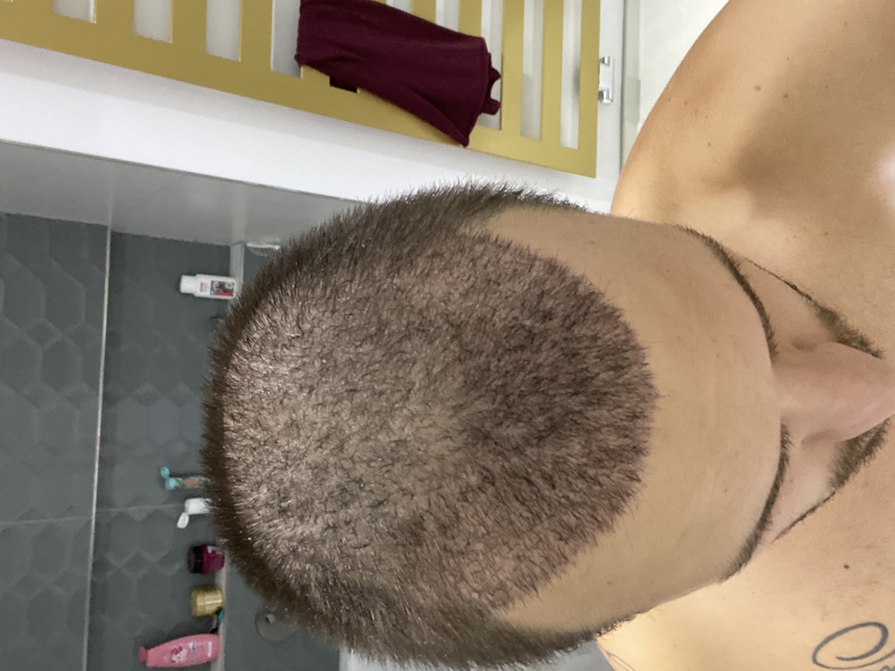 Jeder der eine HT macht, dem ist klar, dass dieser Moment kommt, jedoch muss ich sagen, dass ich nicht damit gerechnet habe, dass dieser Moment so lange andauert und nur noch so wenig Haare im 3. Monat übrigbleiben. Vor meiner HT habe ich mich viel informiert und auch einige Forenbeiträge gelesen, jedoch ist davon persönlich betroffen zu sein m.E. nach etwas anderes. Wenn ich Forenbeiträge mit meinem „Status“ vergleiche, dann hoffe ich einfach, dass der Haarwachstum bei mir verspätet einsetzt und definitiv noch kommt. Ich habe die Bilder angehängt (Tagesaktuell).