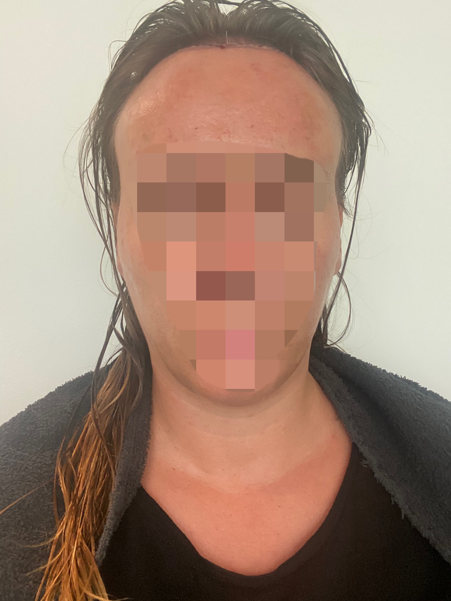 Die Rötung an der Stirn geht langsam zurück, es gibt keinerlei Probleme.