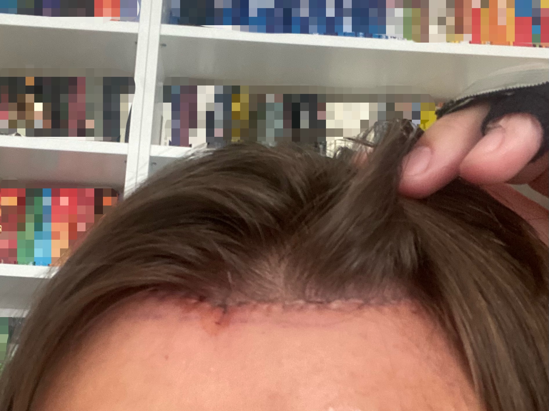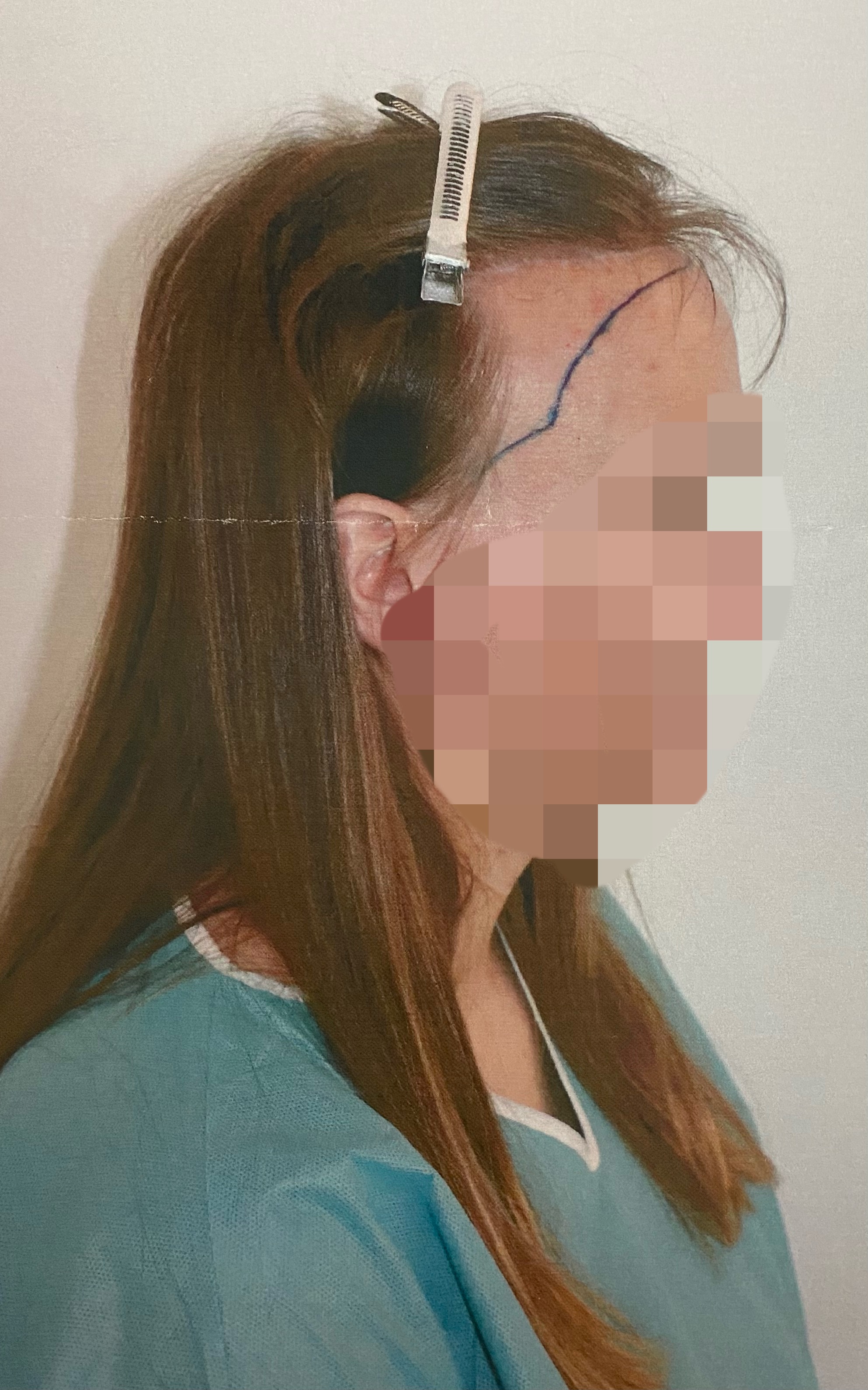 Im OP wurden meine Haare vorbereitet, mir wurde ein Zugang gelegt und dann konnte ich es mir auf der liege bequem machen. Durch das Beruhigungsmittel und die lokale Anästhesie (das spritzen tat nicht weh), habe ich die Operation nicht als unangenehm empfunden und war erstaunlicherweise sehr entspannt. Das war toll, denn immerhin wurde ein Stück meiner Stirn herausgeschnitten und genäht 🤣