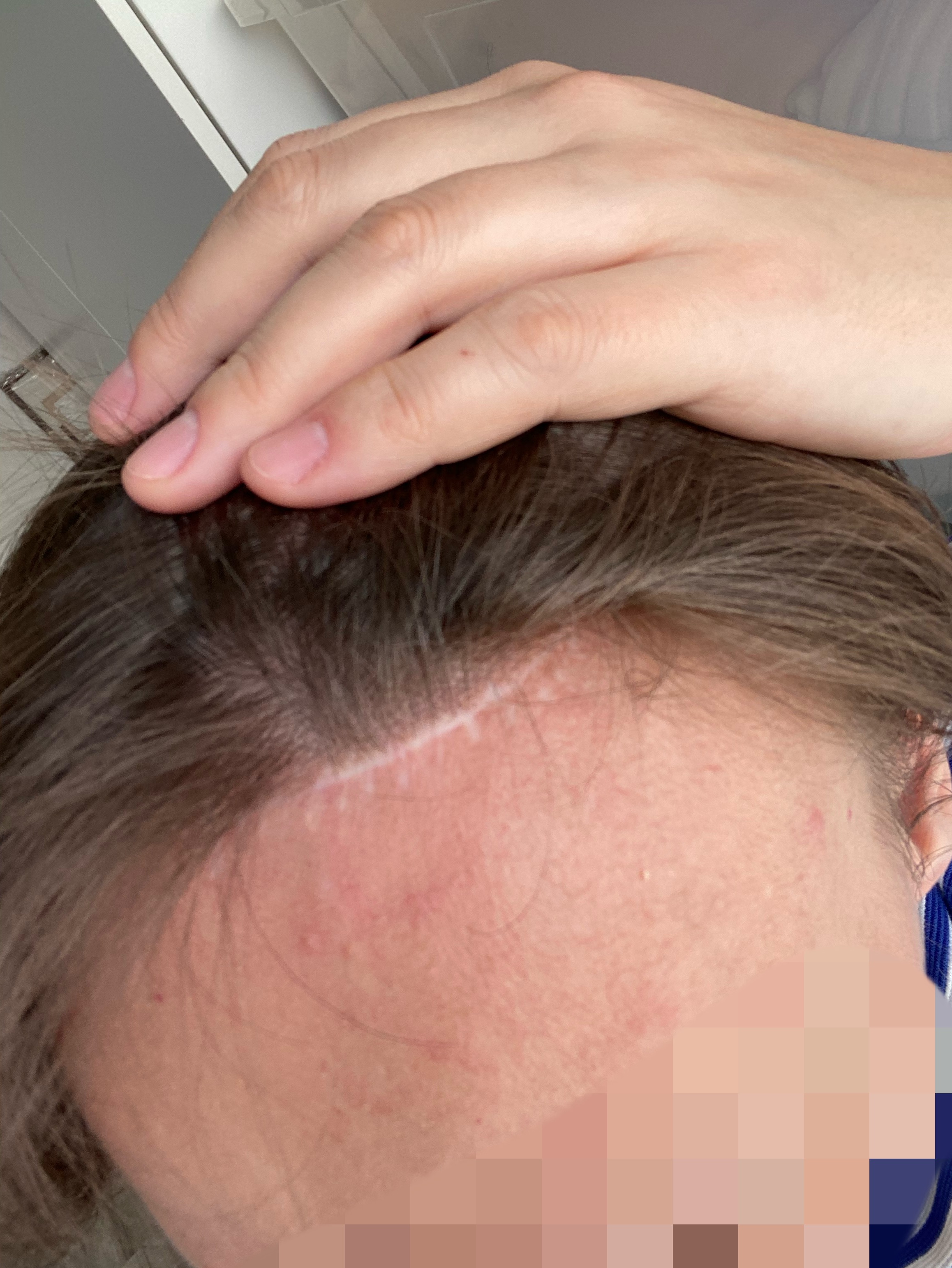 Ab heute darf ich meine Haare täglich waschen und zum ersten Mal die Kopfhaut massieren um den Wundschorf zu lösen.