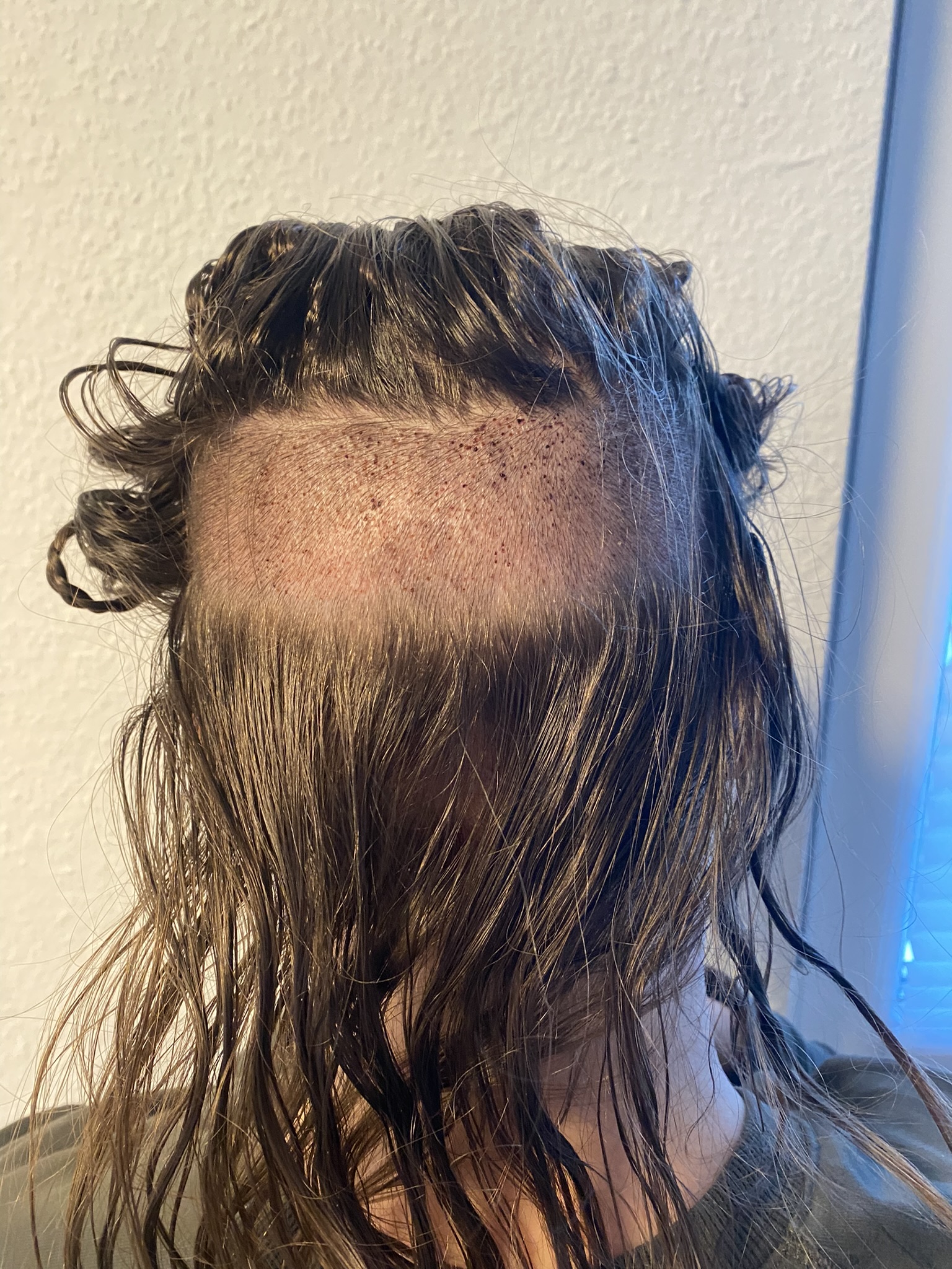 Am sechsten Tag konnte ich schon ein wenig Wachstum der rasierten Haare feststellen. Leider auch eine sehr empfindliche Kopfhaut, sodass ich bei Bedarf Schmerzmittel einnehme. Die Schmerzen sind nicht super schlimm, jedoch manchmal sehr unangenehm (insbesondere in der Nacht). Dass diese Schmerzen auftreten ist auch nicht ungewöhnlich und sicherlich wird es in ein paar Tagen vorbei sein.