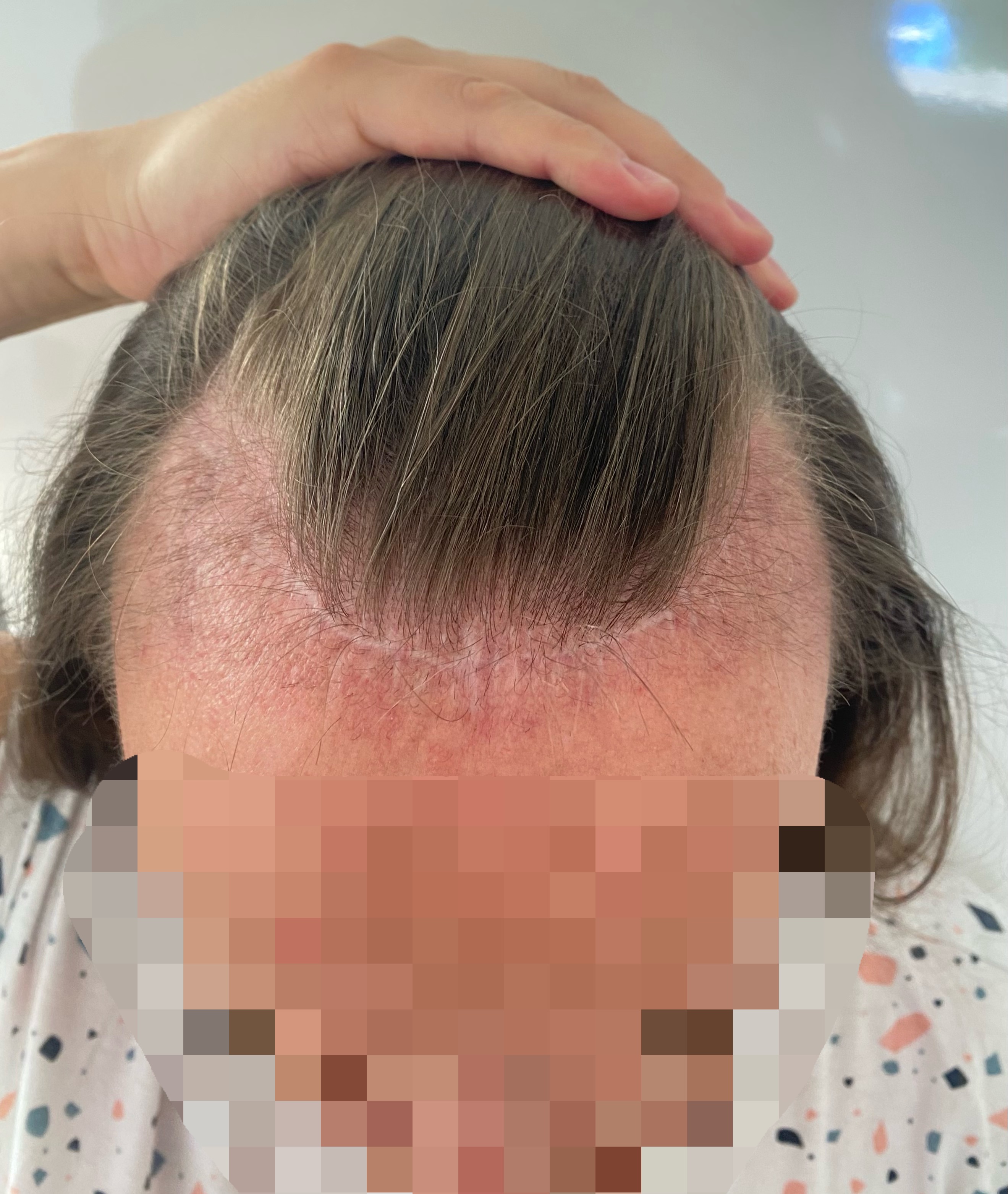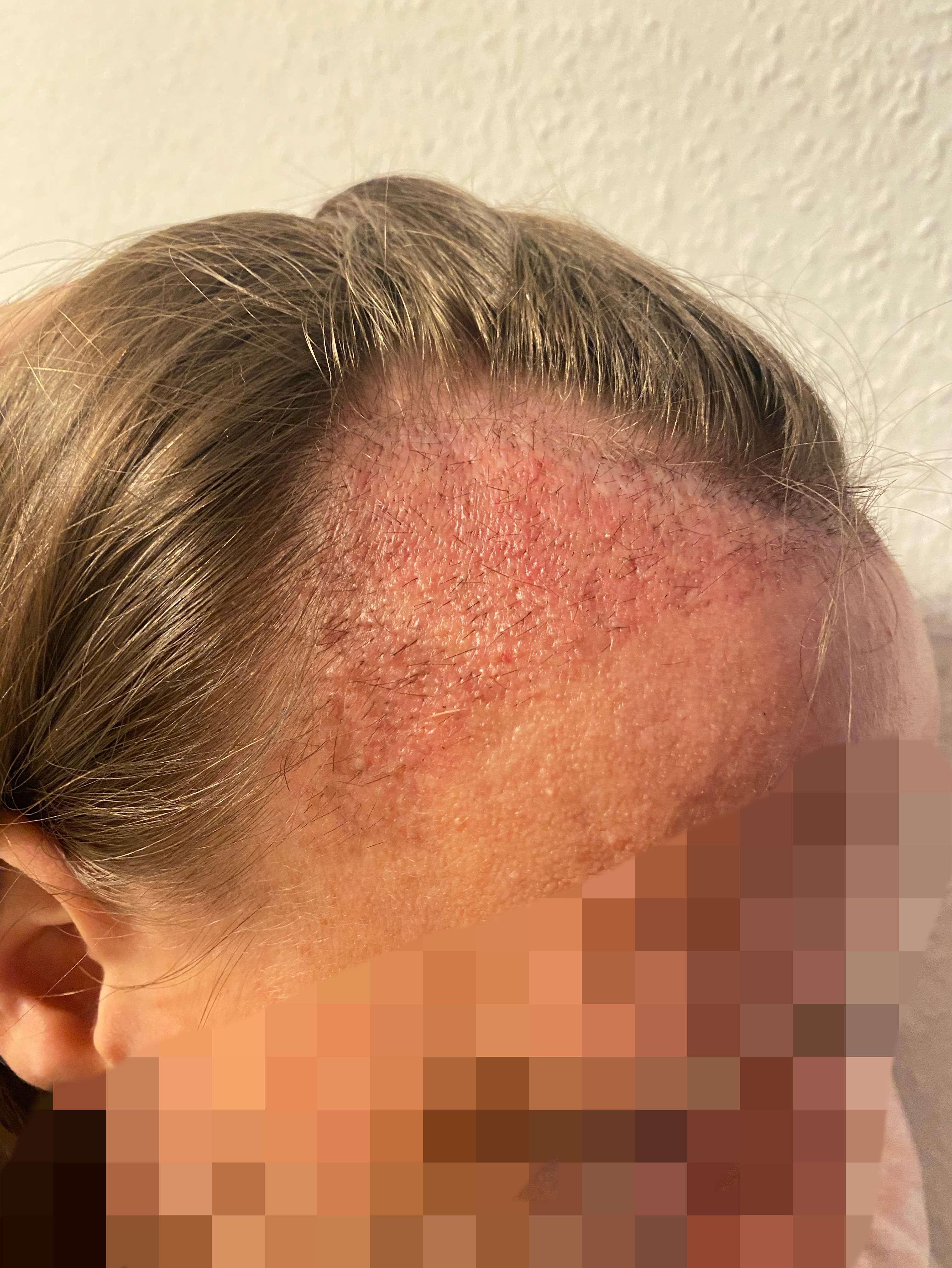 Die Rötung der Kopfhaut ist nun fast nicht mehr zu sehen.