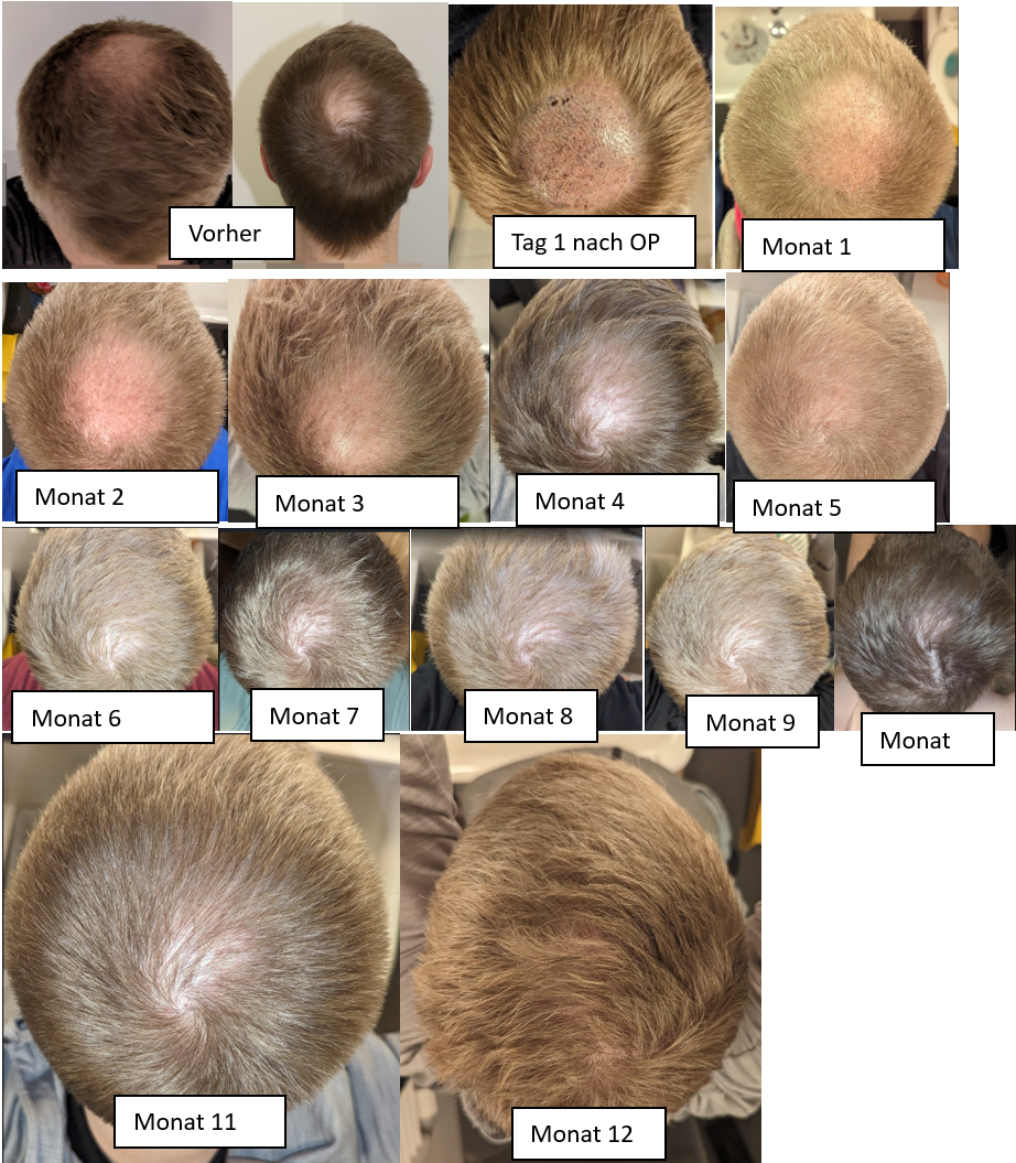 Ich fände es super, wenn du in ein paar Monaten nochmal ein Update schickst. Bei mir gab es in der Tonsur nochmal eine deutliche Steigerung zwischen Monat 8 und 13.