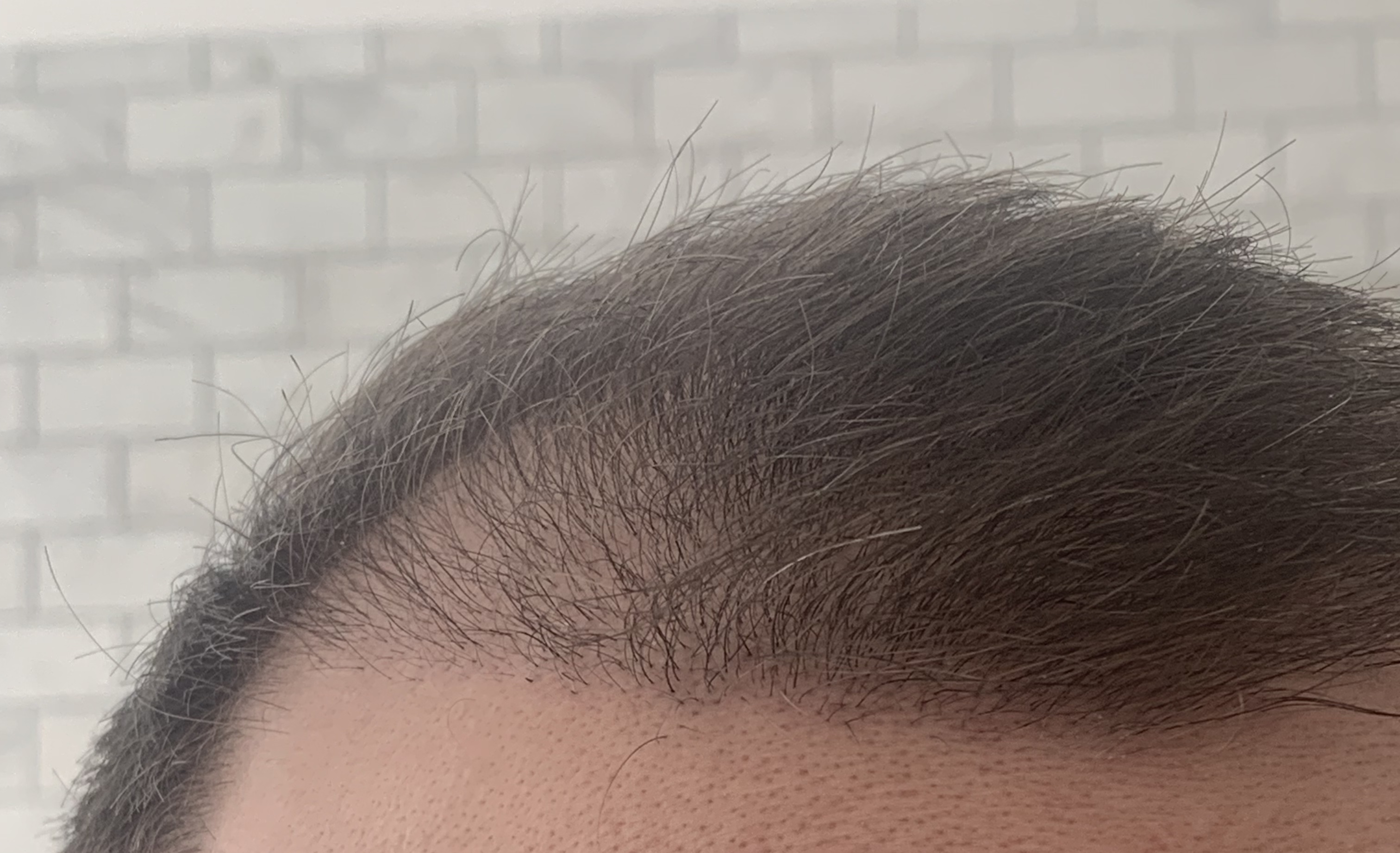 Leider geht der Ausfall wie vermutet weiter. Hierdurch gibt es derzeit eine relativ deutliche Diskrepanz zwischen behandelten Bereich und nicht behandelten Bereich. Trage daher einen Comb Over nach hinten. Ungestyled ist die Diskrepanz aber sehr auffällig, was man auf einem Foto auch sehr gut erkennt.