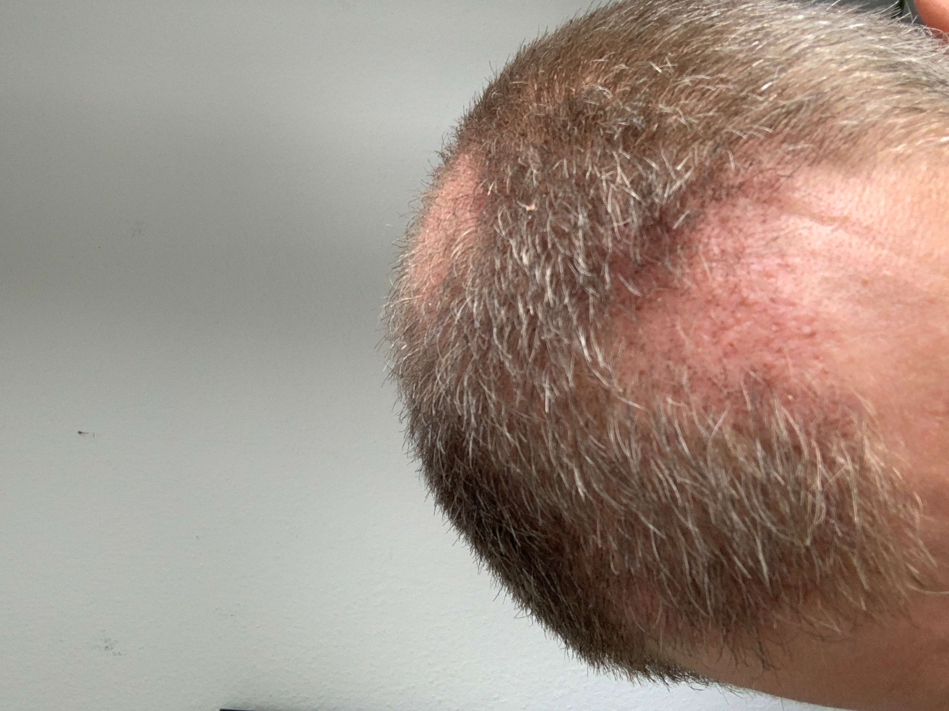 Ich denke, auf der rechten und linken Seite hätten etwas mehr Haare transplantiert werden können.