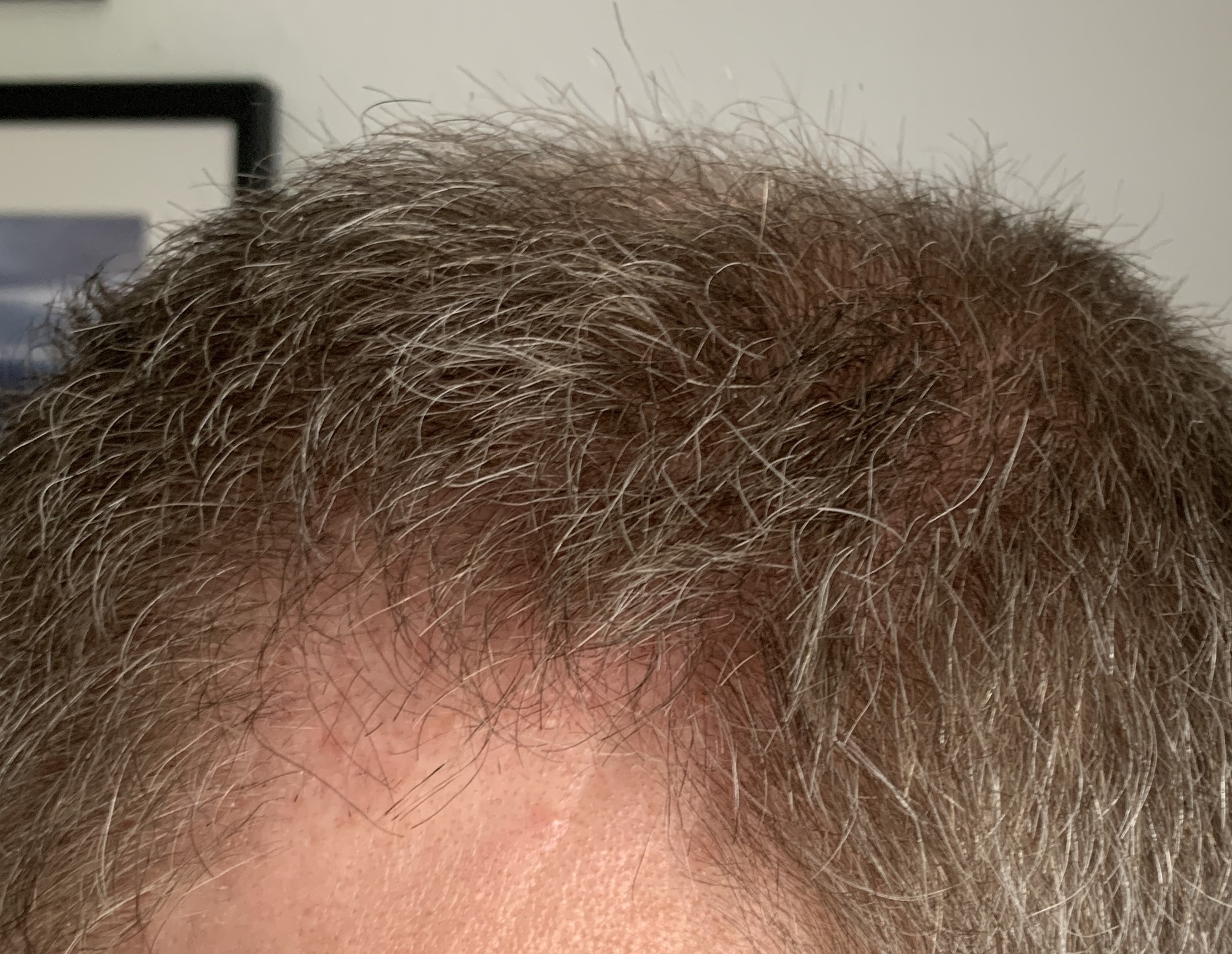 Die linke Seite wächst etwas besser bzw. ist auch schon vorher langsamer zurückgegangen. Die Tonsur ist bei mir noch wertfrei, da diese ja bekanntlich etwas länger braucht.