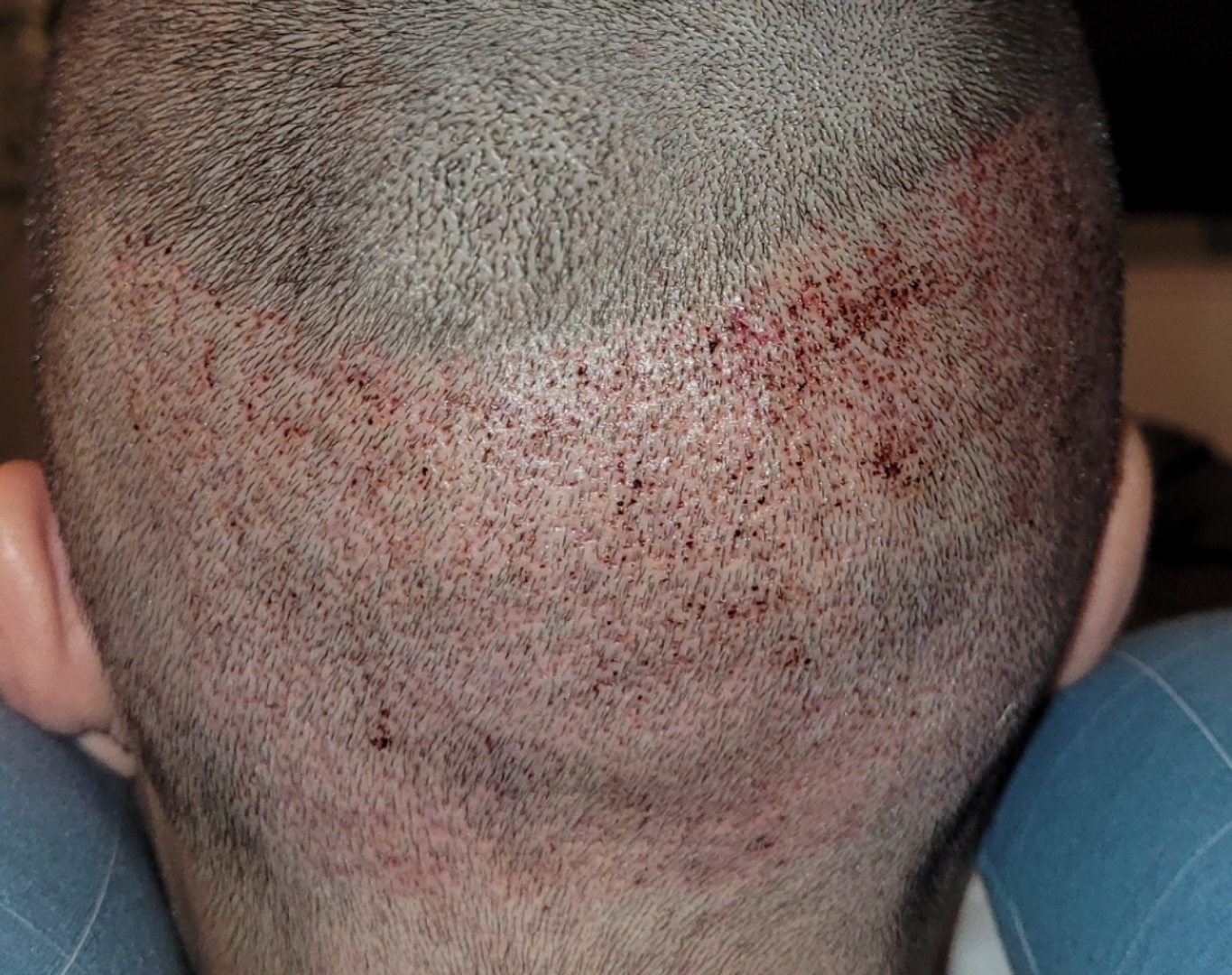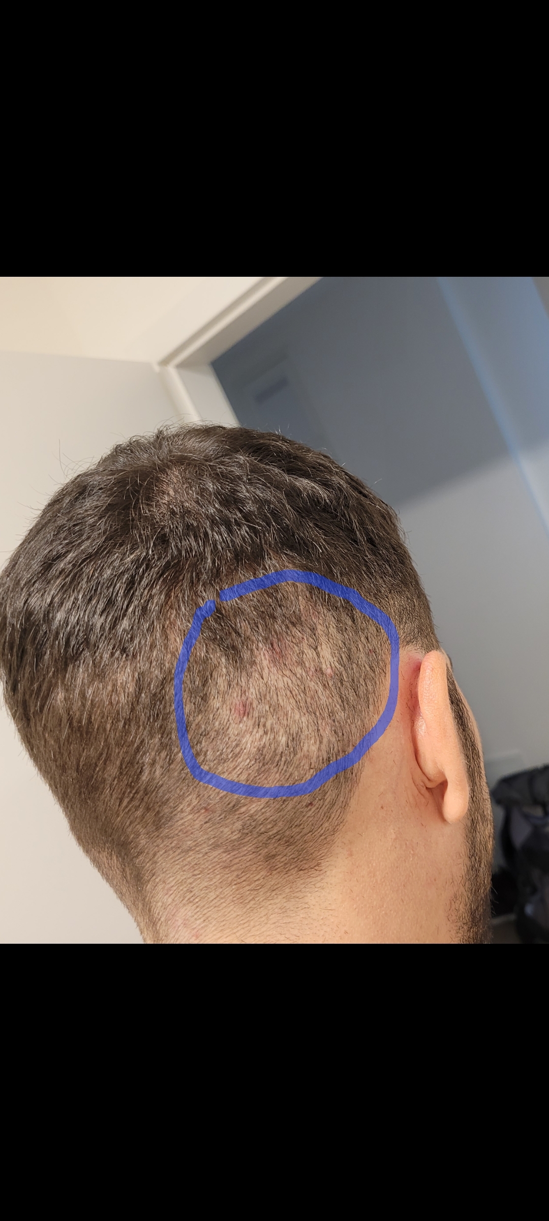 Jedoch werde ich bzgl. meines Entnahmebereich langsam etwas nervös. Bereits nach der ersten Begutachtung ist mir negativ aufgefallen, dass dieser ziemlich asymmetrisch und konzentriert abgearbeitet worden ist, vor allem bei der niedrigen Anzahl Grafts. Ich hab vor Ort auch bestätigt bekommen, dass ich einen super dichten Spenderbereich hätte. Was für mich nun noch problematischer ist, dass ich bei längeren Haaren mehrere Löcher habe.